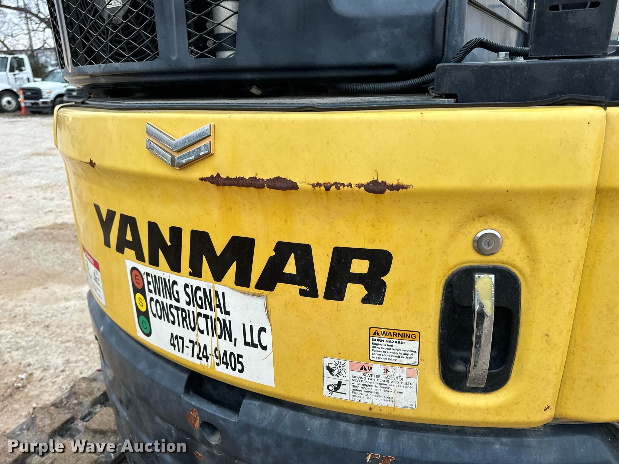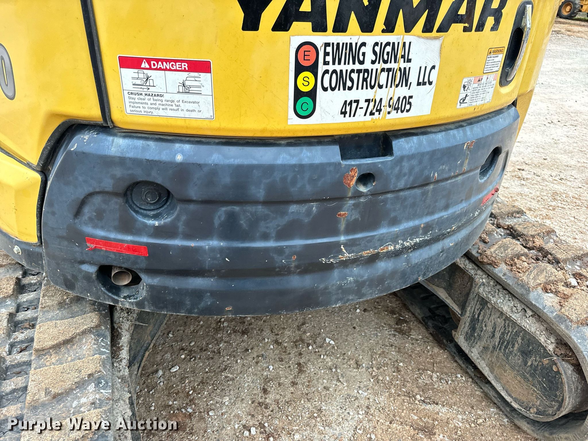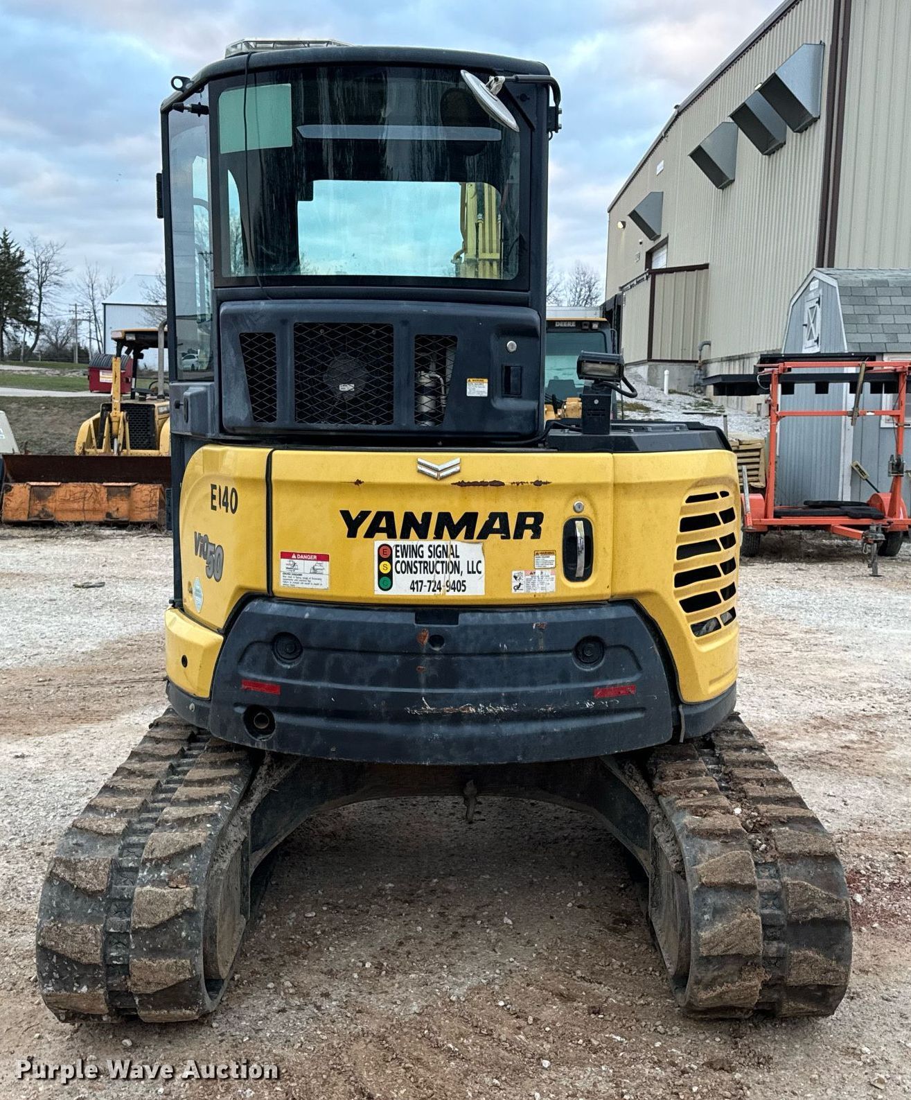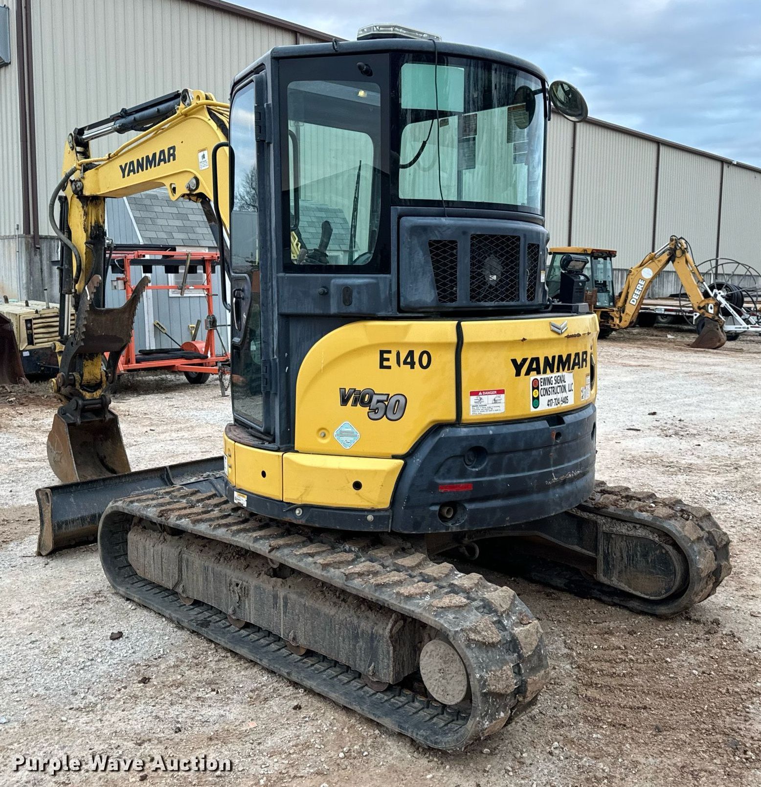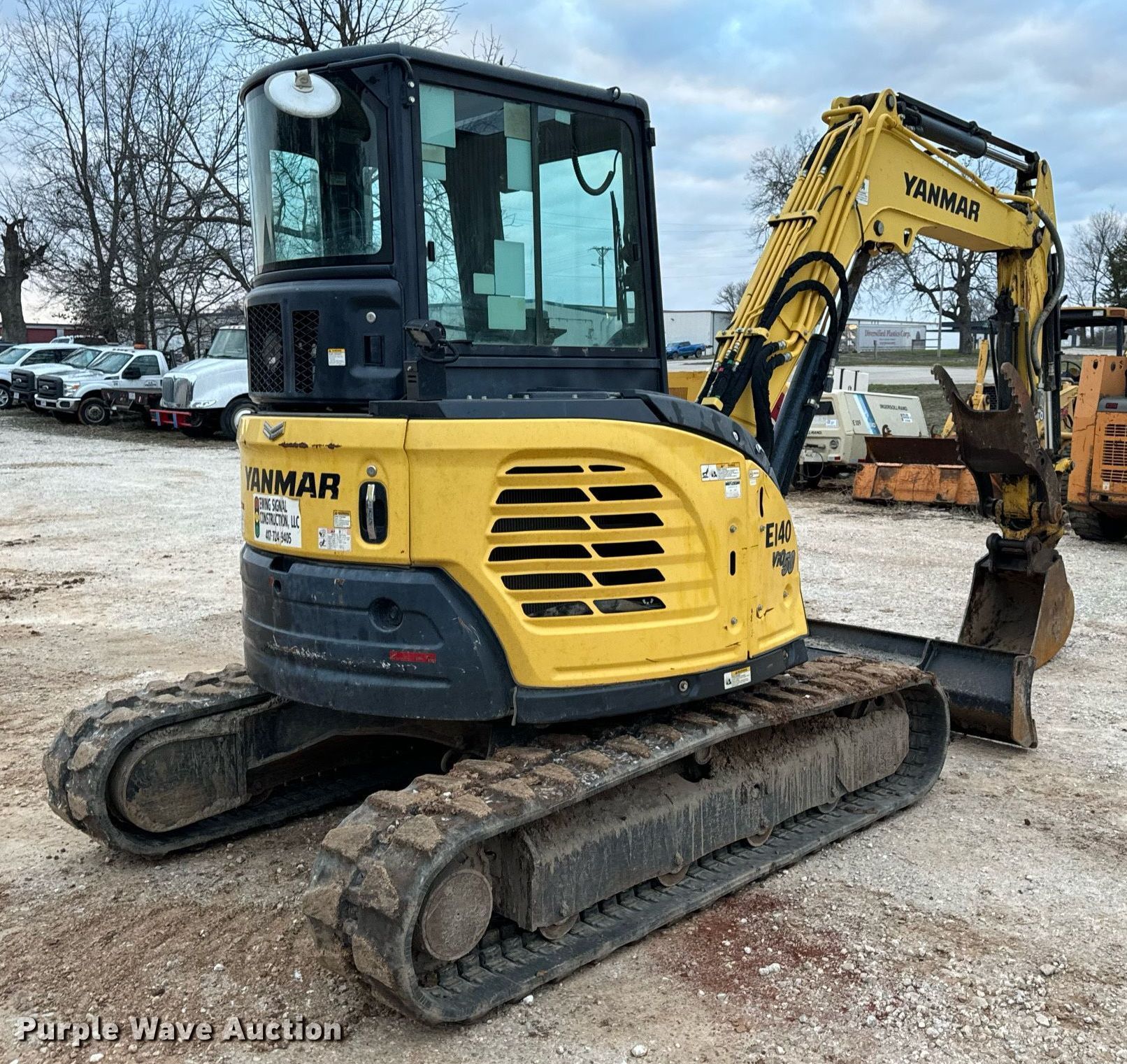 2018 Yanmar VIO50-6A mini excavator. Hours: 2,951 on meter, Serial: YMRVIO50PJAJ60602, Unit #: E140. Engine Yanmar 4TNV88C-PBV, Displacement: 2.190L, Cylinders: 3, Fuel type: Diesel. Transmission Hydrostatic, Two speed travel. Operators station Enclosed cab, AC, Heat. Features Auxiliary hydraulics, Backfill blade Width: 77.5", Boom Swing, Stick Stick length: 57", Quick coupler: Hydraulic Yanmar, Thumb: Hydraulic TAG, Bucket TAG, Width: 18", Teeth: 4. Tracks Width: 15.5", Rubber. Ewing Signal Construction LLC. - Open Inspection February 21 and 26. 1730 N Gregory. Nixa, MO 65714