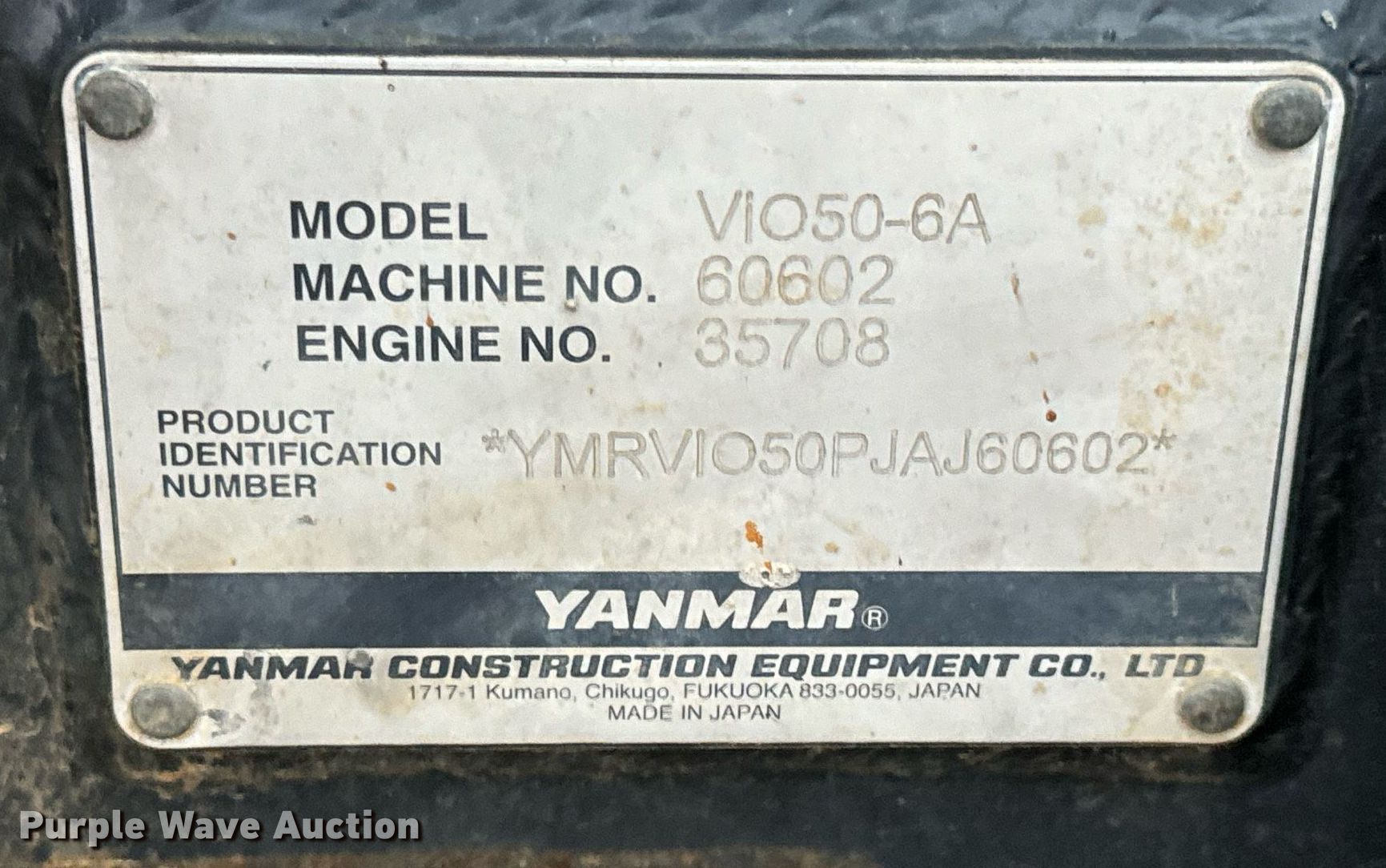 Purple Wave is selling a used Mini Excavator in Missouri. This item is a 2018 Yanmar VIO50-6A mini excavator with the following: Hours: 2,951 on meter, Serial: YMRVIO50PJAJ60602, Unit #: E140