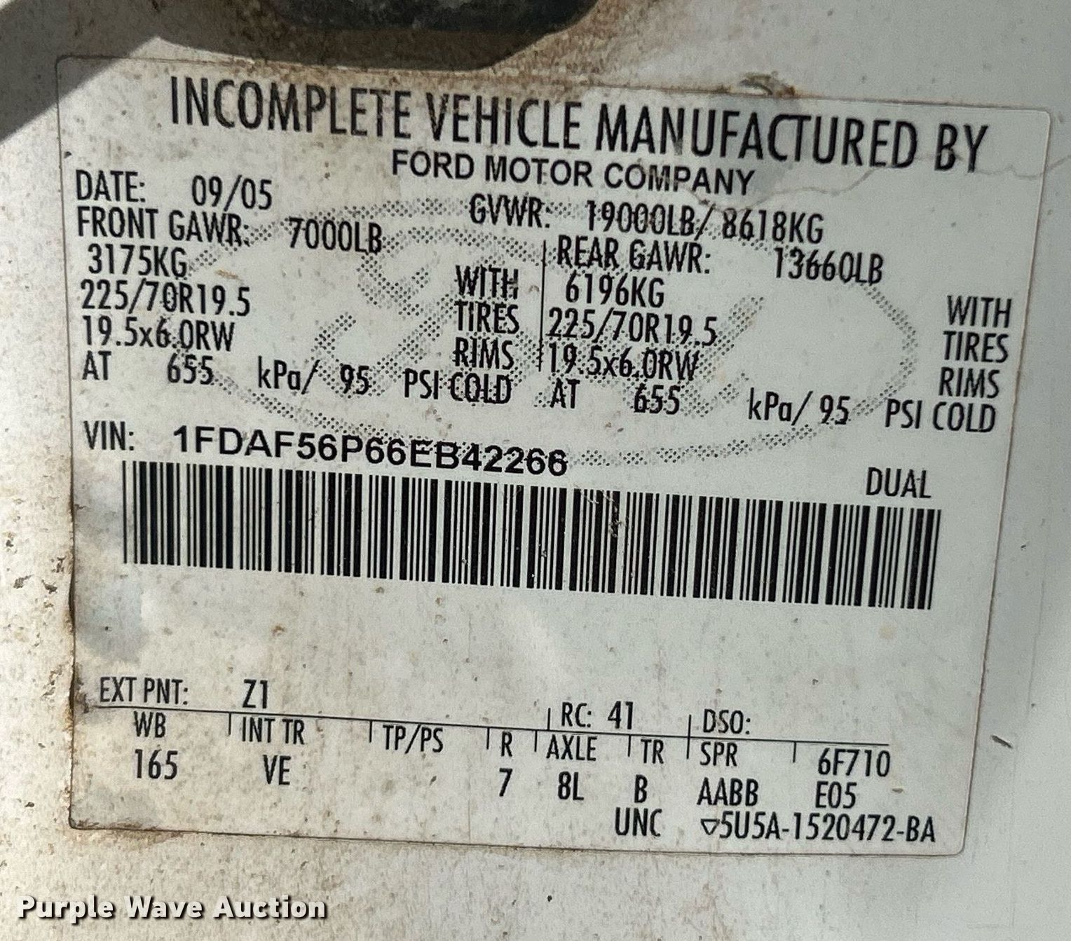• VIN: 1FDAF56P66EB42266