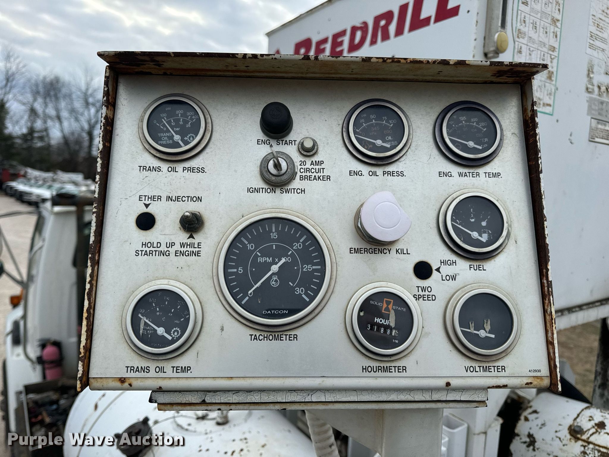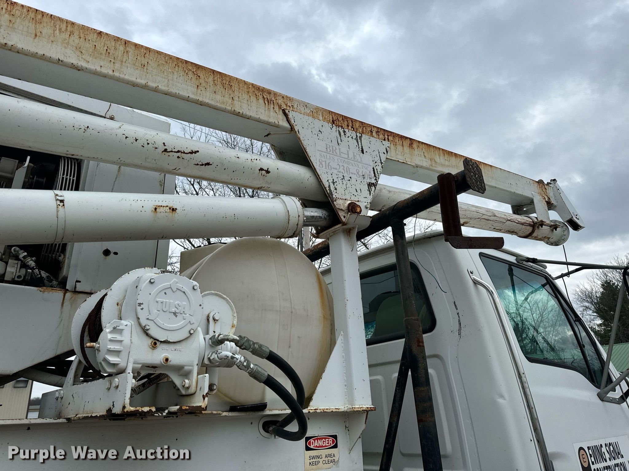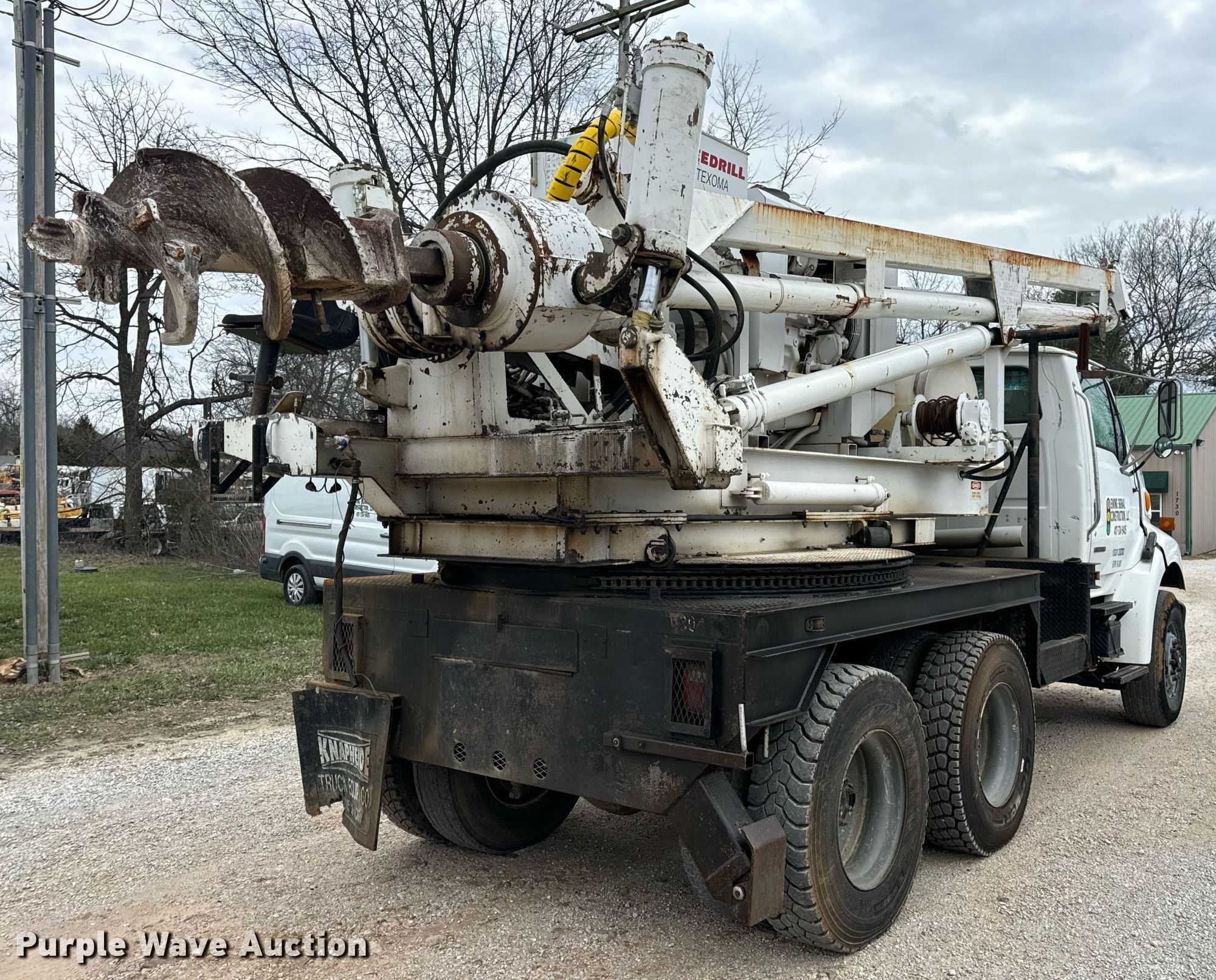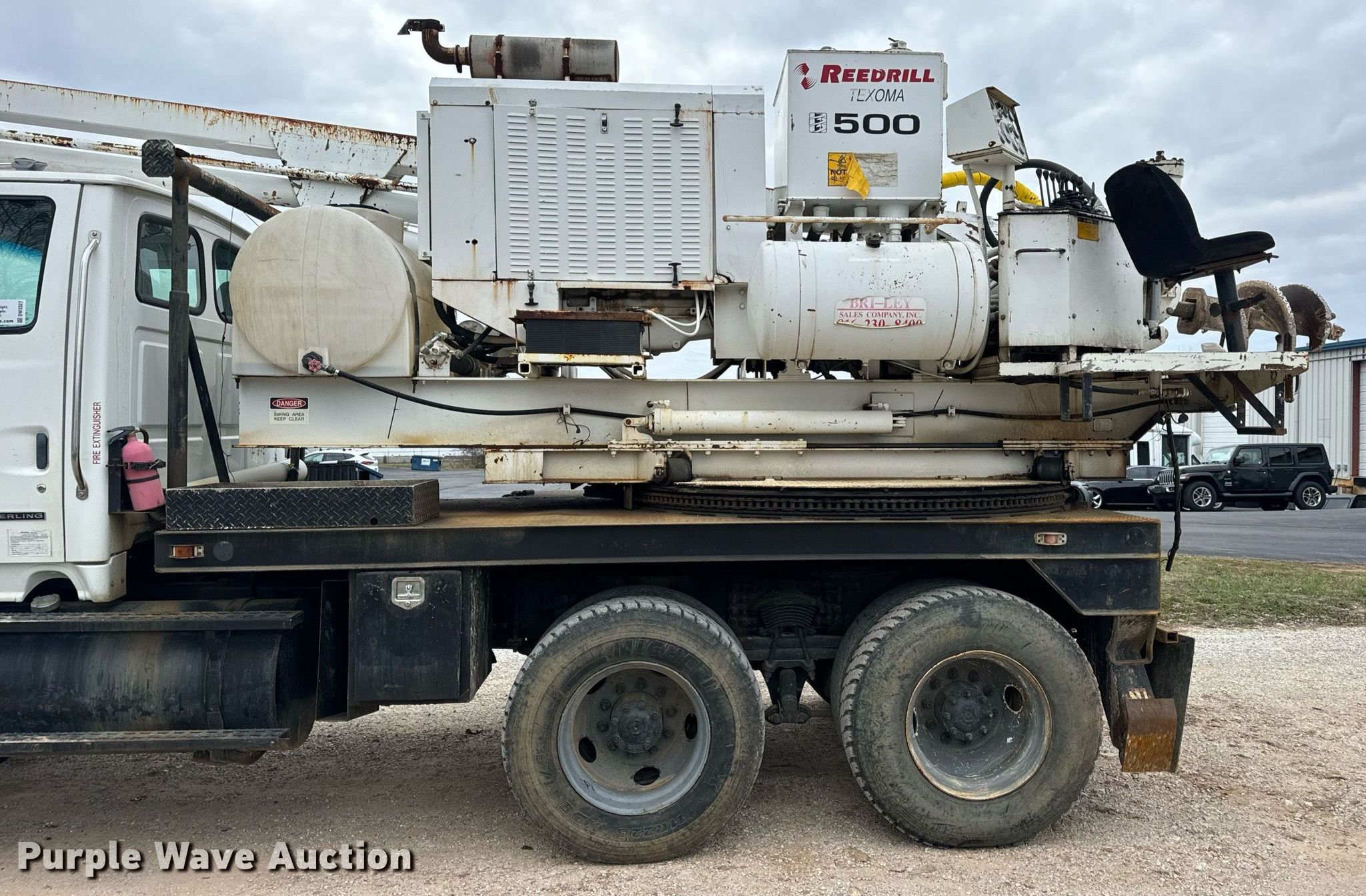 2002 Sterling L-Line pressure digger truck. Miles: 79,795 on odometer, Hours: 4,987 on meter, VIN: 2FZHAZAN12A94260, Unit #: E113. Engine Caterpillar C-10, Serial: 3CS24382, Displacement: 10.3L, Cylinders: 6, Fuel type: Diesel, HP: 350. Transmission Eaton Fuller Roadranger, Manual, Speed: 10. Chassis Axles: Tandem, Suspension: Spring over walking beam, Brakes: Air, PTO, GVWR: 56,000 lbs. Interior AC, Heat, Cruise control. Features Bed 13' L x 96" W, Engine John Deere 6068DF150, Serial: PE6068D156882, Displacement: 6.8L, Cylinders: 6, Fuel: Diesel, Hours: 3,188, Boom Reedrill 500, Serial: 1W26Z76, Boom length: 15', Boom type: Telescopic, Boom controls Platform/ basket, Pressure digger, Auger. Tires Front: 315/80R22.5, Rear: 11R22.5. Notes Dash warning indicator: Engine warning, Non-operational winch. Arkansas title. Title distribution may be delayed up to 30 days from verification of funds. Ewing Signal Construction LLC. - Open Inspection February 21 and 26. 1730 N Gregory. Nixa, MO 65714