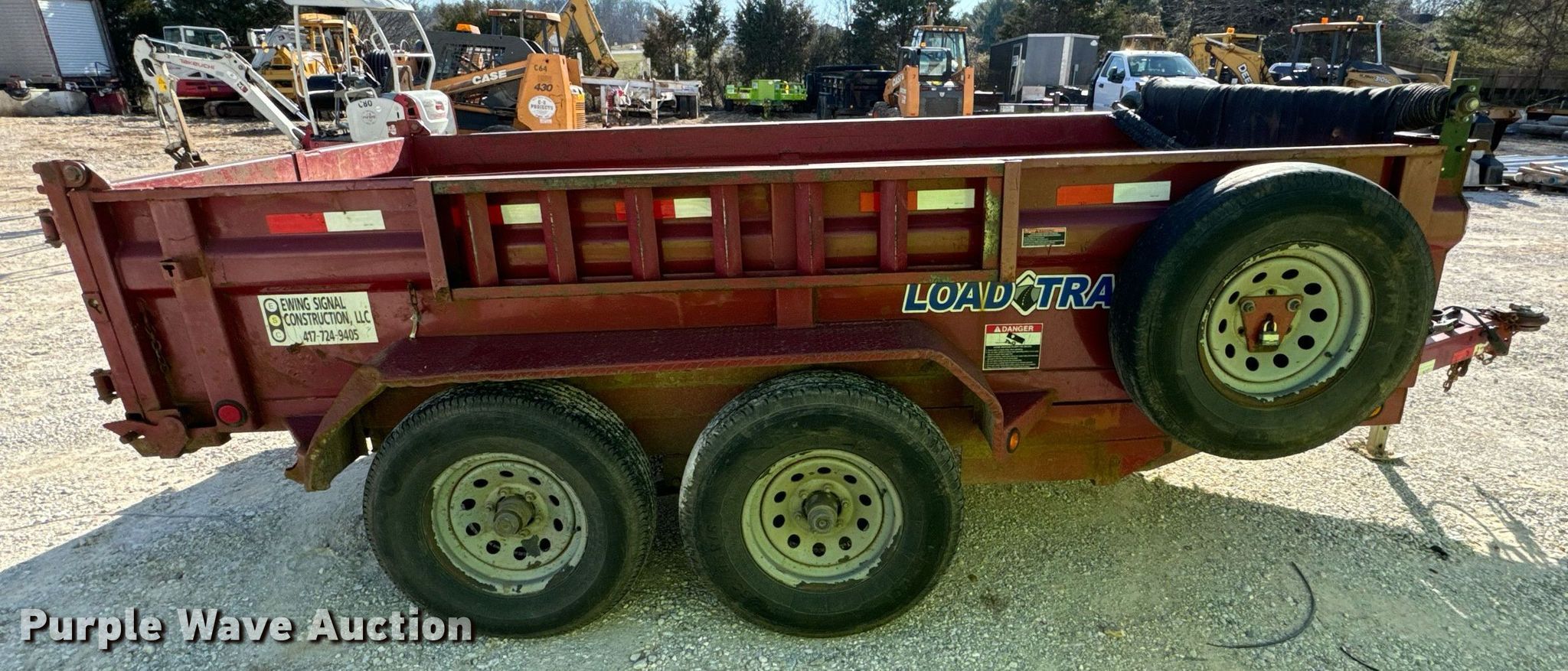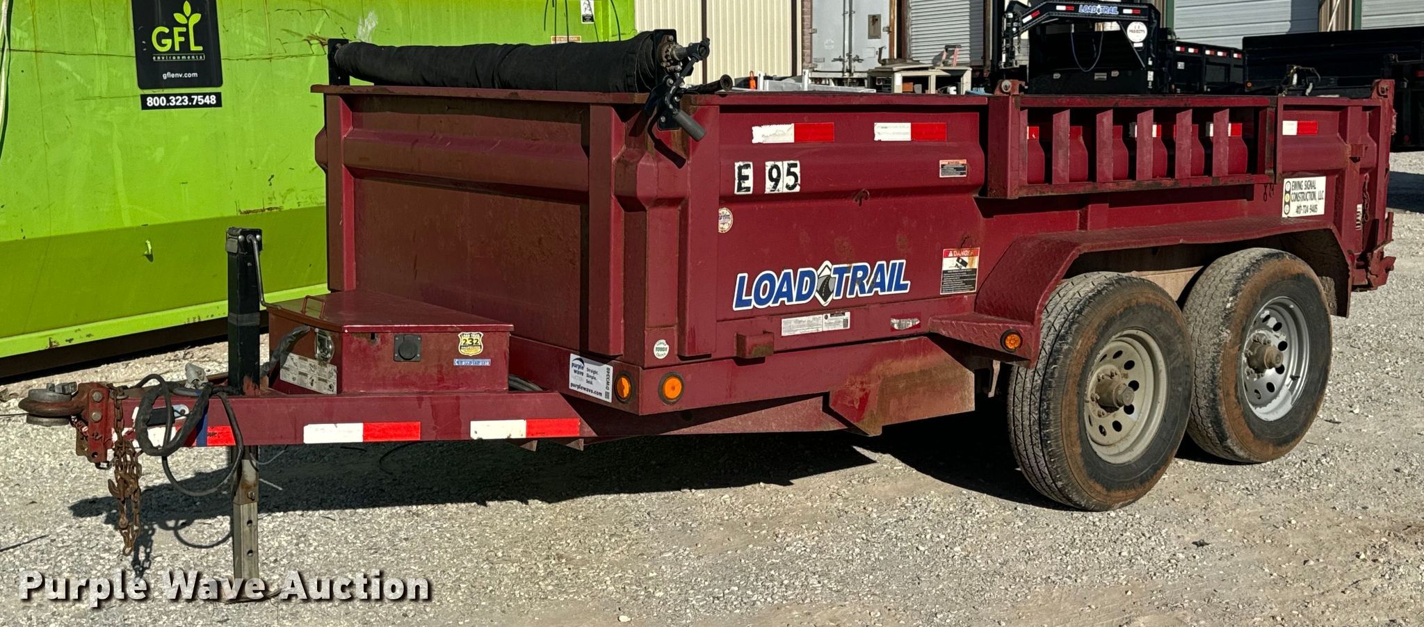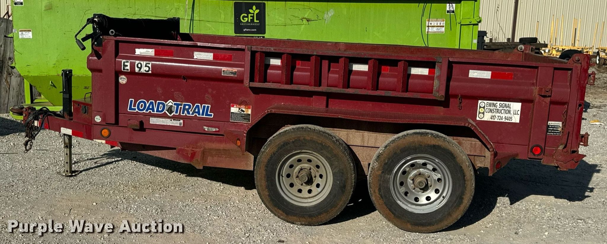 2014 Load Trail dump trailer. VIN: 4ZEDT1224E1062978, Unit #: E95. Dimensions Overall: 16' 6" L x 93" W, Body: 12' L x 72" W, Side height: 23". Features Body type: Steel, Ram: Single, End gate: Manual, Trailer controls, Roll tarp. Chassis Hitch: Pintle, Landing gear: Single, Suspension: Spring, Brakes: Electric, Axles: Tandem, GVWR: 9,990 lbs, GAWR: 5,200 lbs. Tires Steel wheels, Size: ST235/80R16. Notes Trailer controller wiring issues. Missouri title. Title distribution may be delayed up to 30 days from verification of funds. Ewing Signal Construction LLC. - Open Inspection February 21 and 26. 1730 N Gregory. Nixa, MO 65714
