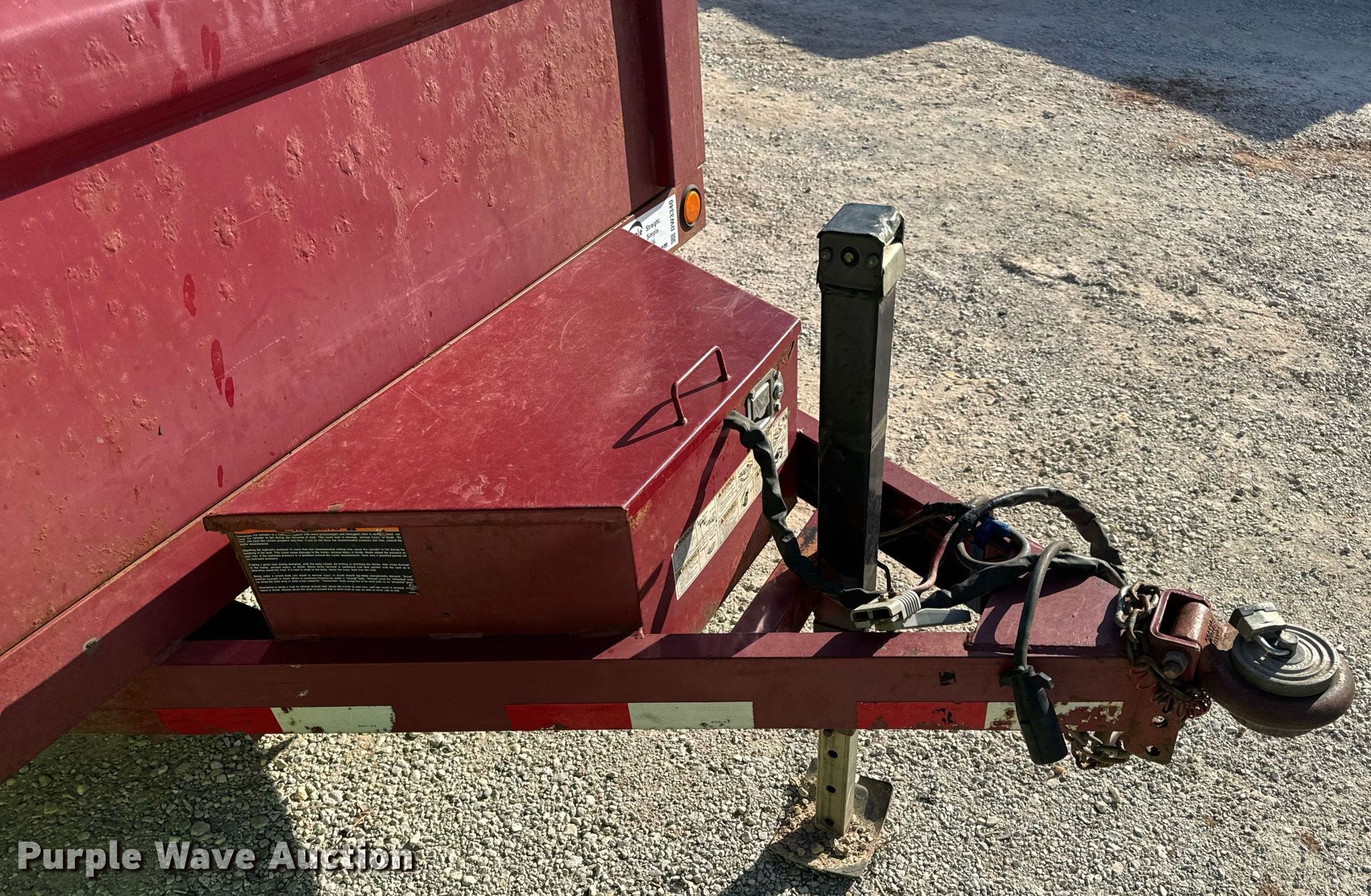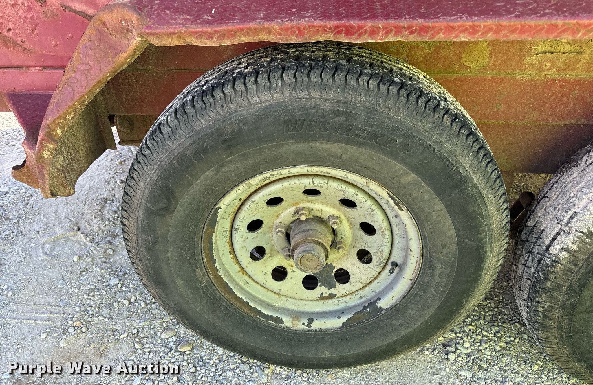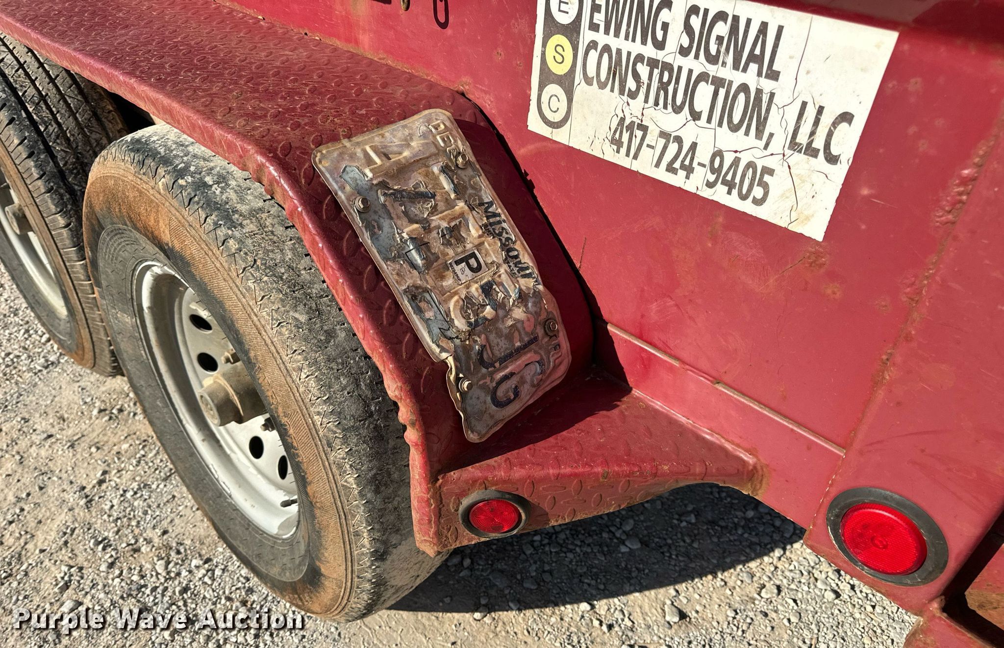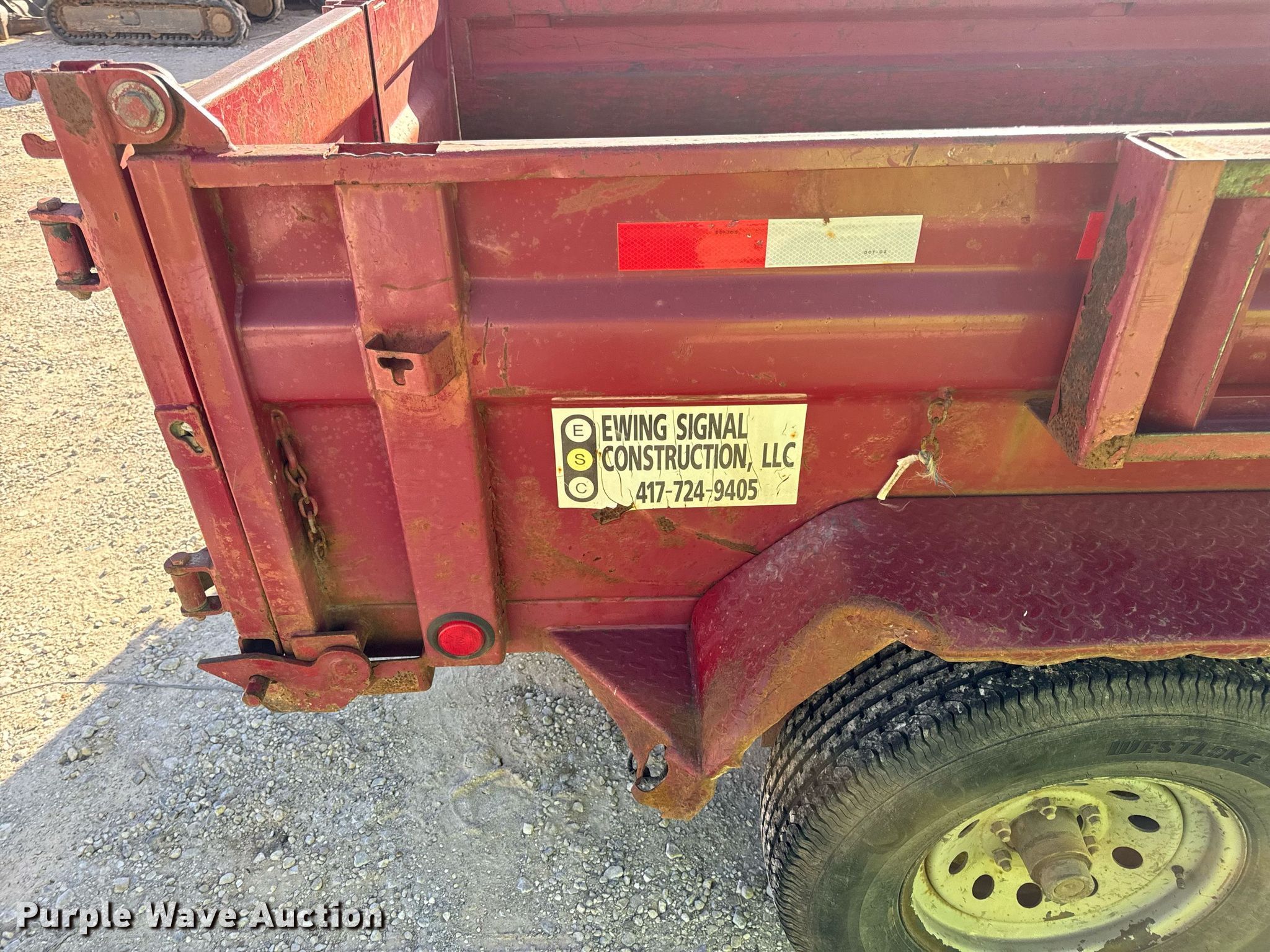 2014 Load Trail dump trailer. VIN: 4ZEDT1224E1062978, Unit #: E95. Dimensions Overall: 16' 6" L x 93" W, Body: 12' L x 72" W, Side height: 23". Features Body type: Steel, Ram: Single, End gate: Manual, Trailer controls, Roll tarp. Chassis Hitch: Pintle, Landing gear: Single, Suspension: Spring, Brakes: Electric, Axles: Tandem, GVWR: 9,990 lbs, GAWR: 5,200 lbs. Tires Steel wheels, Size: ST235/80R16. Notes Trailer controller wiring issues. Missouri title. Title distribution may be delayed up to 30 days from verification of funds. Ewing Signal Construction LLC. - Open Inspection February 21 and 26. 1730 N Gregory. Nixa, MO 65714