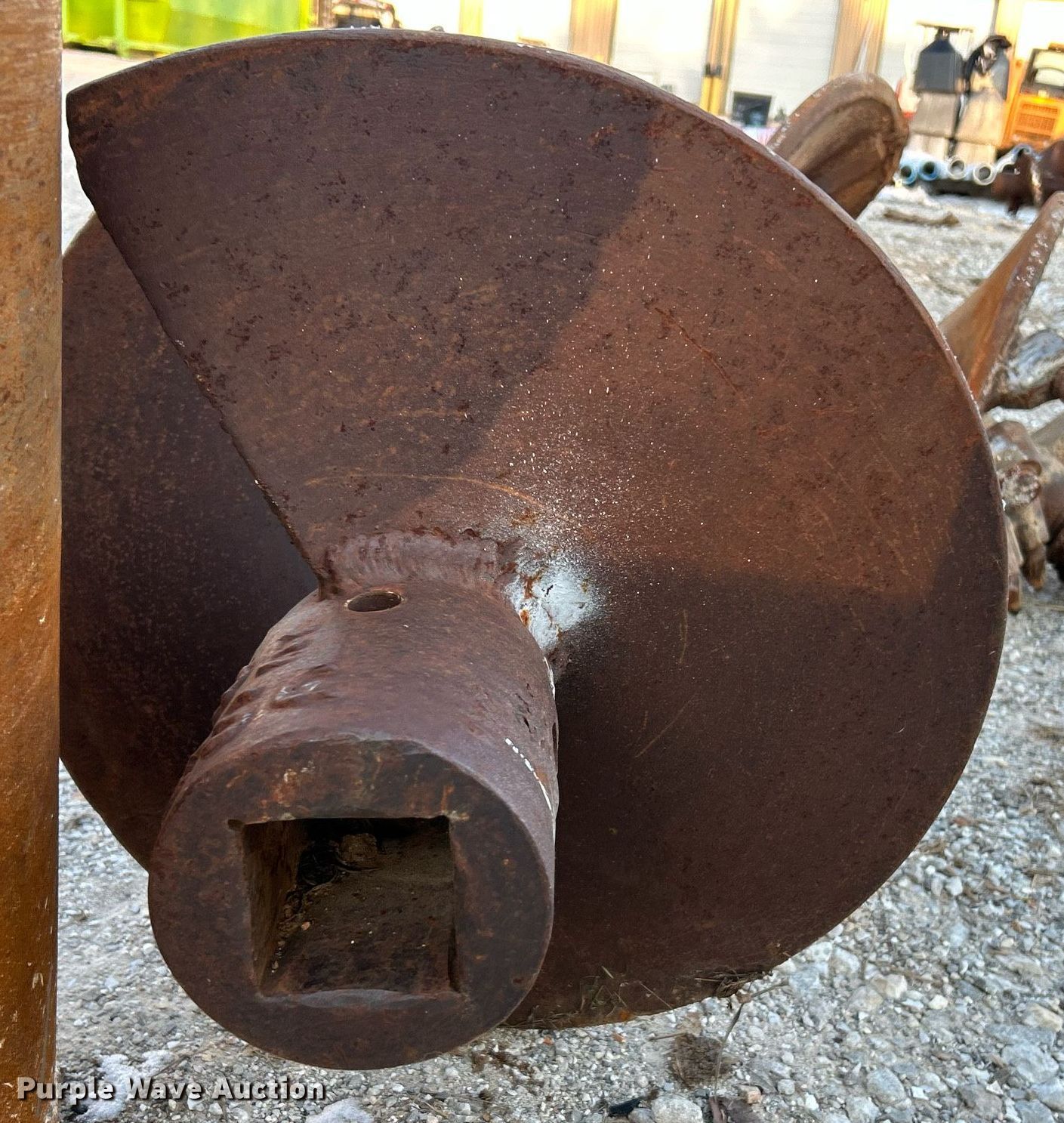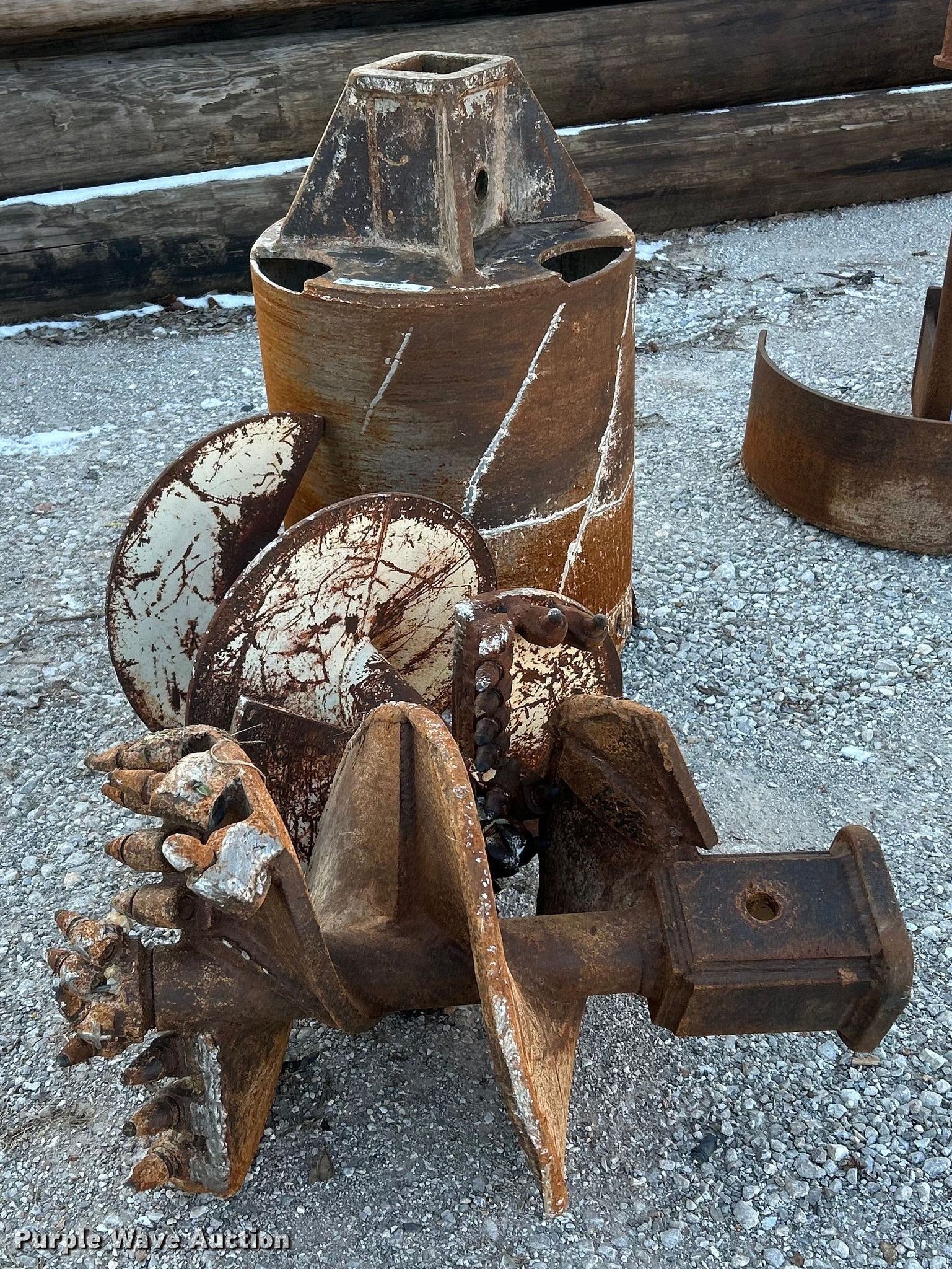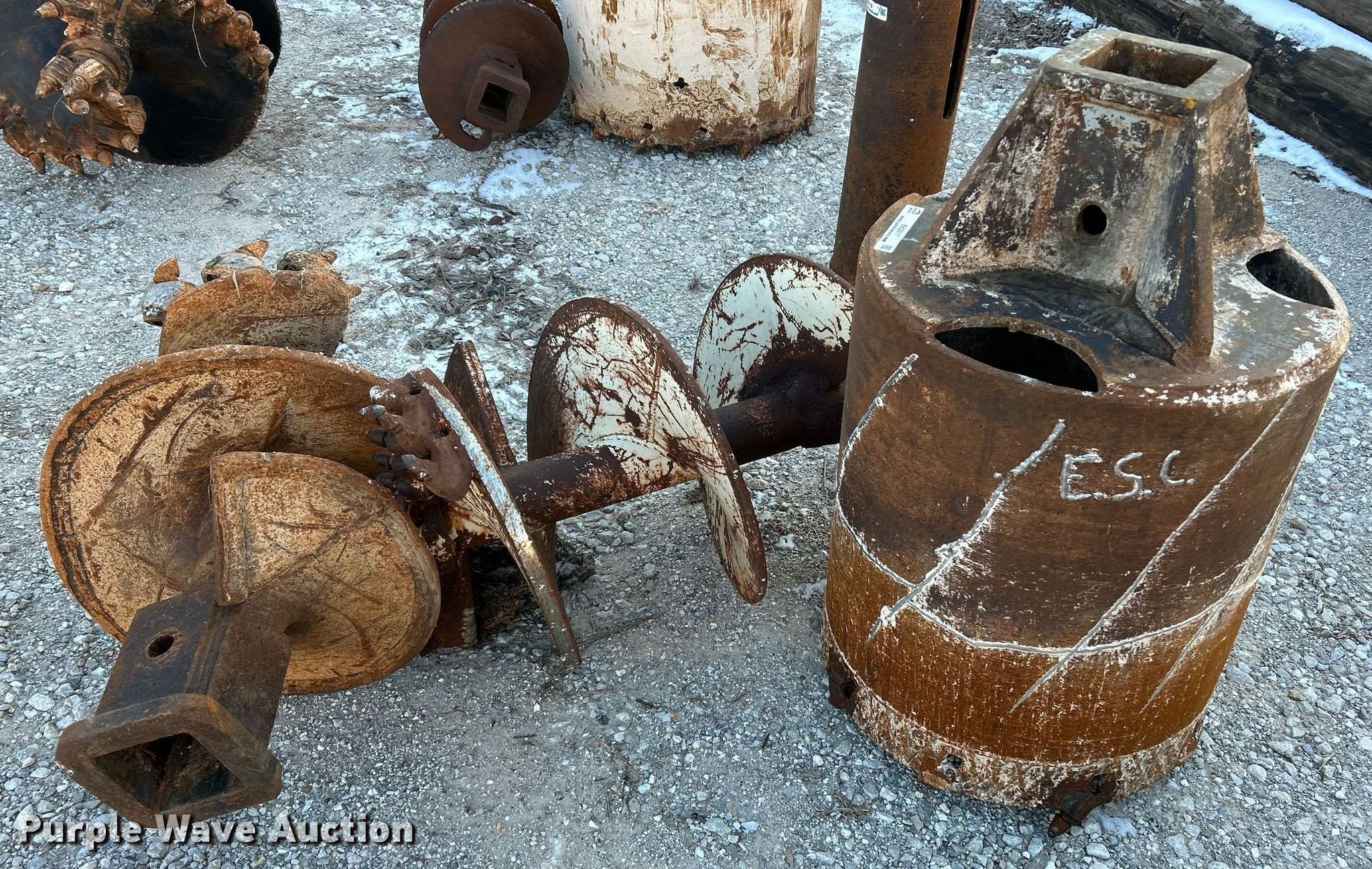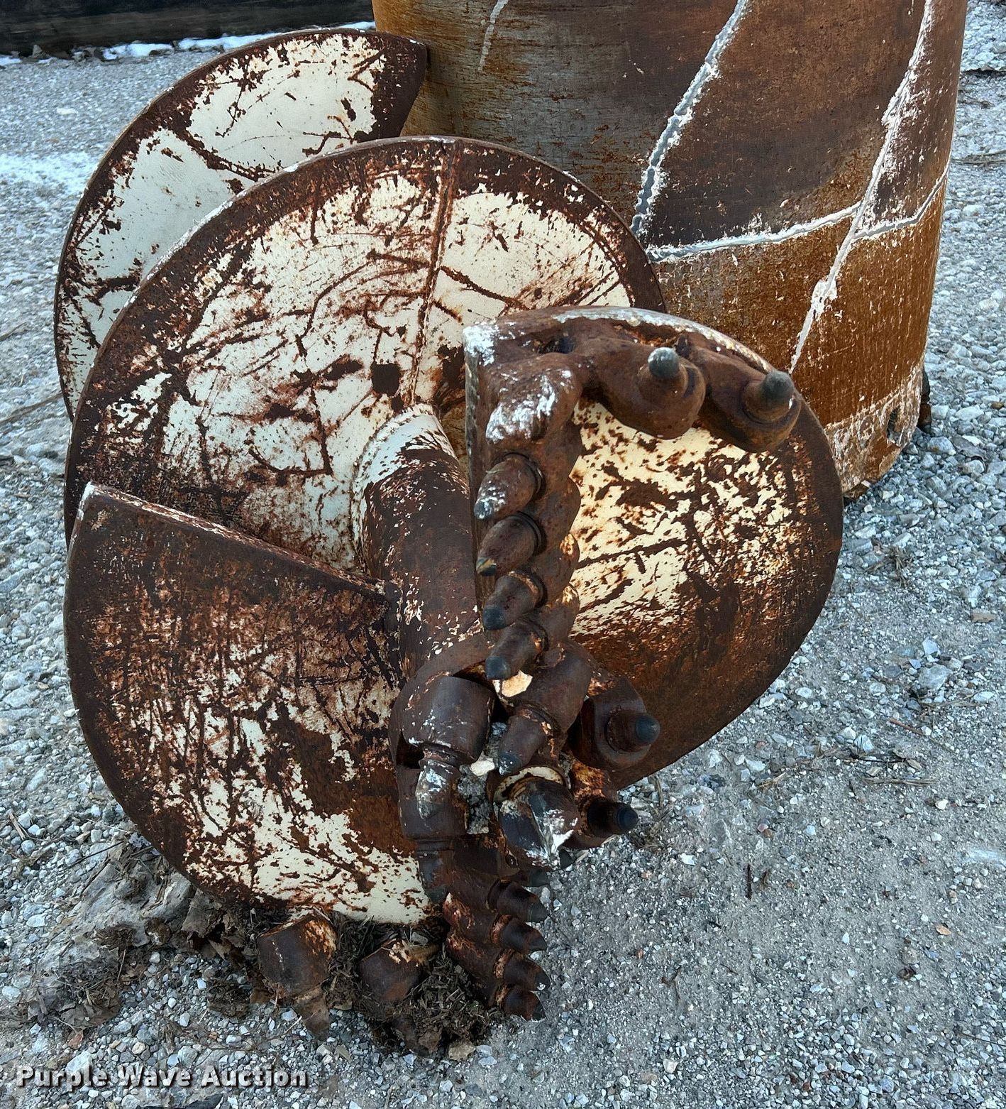 Purple Wave is selling a used Auger or Drill in Missouri. This item is a (3) drilling bits with the following: (2) auger bits, Diameter: 22�, Estimated dig depth: 2', Core bit, Diameter: 24�, Estimated dig depth: 27�