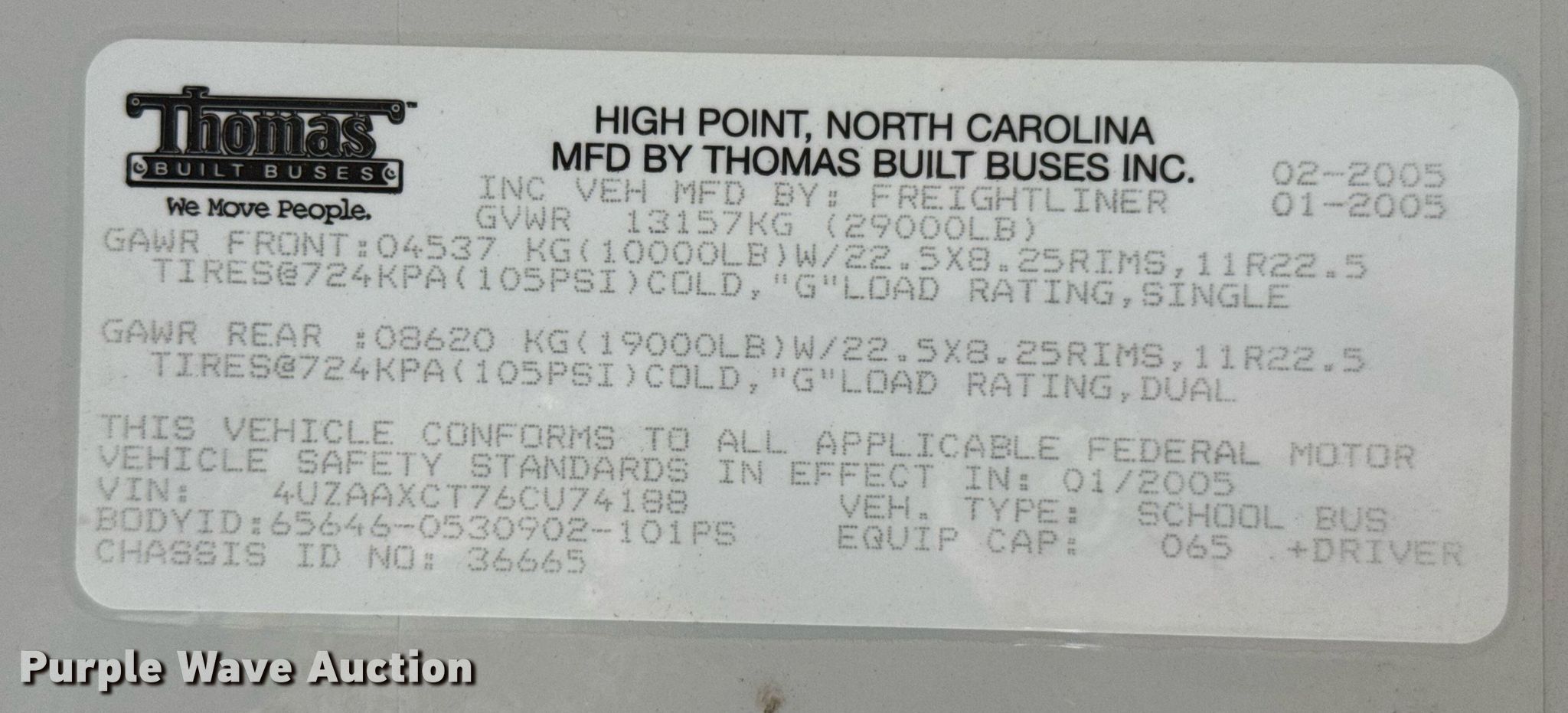 Purple Wave is selling a used Bus in Kansas. This item is a 2006 Thomas Built FS65 school bus with the following: Miles: 194,322 on odometer, VIN: 4UZAAXCT76CU74188