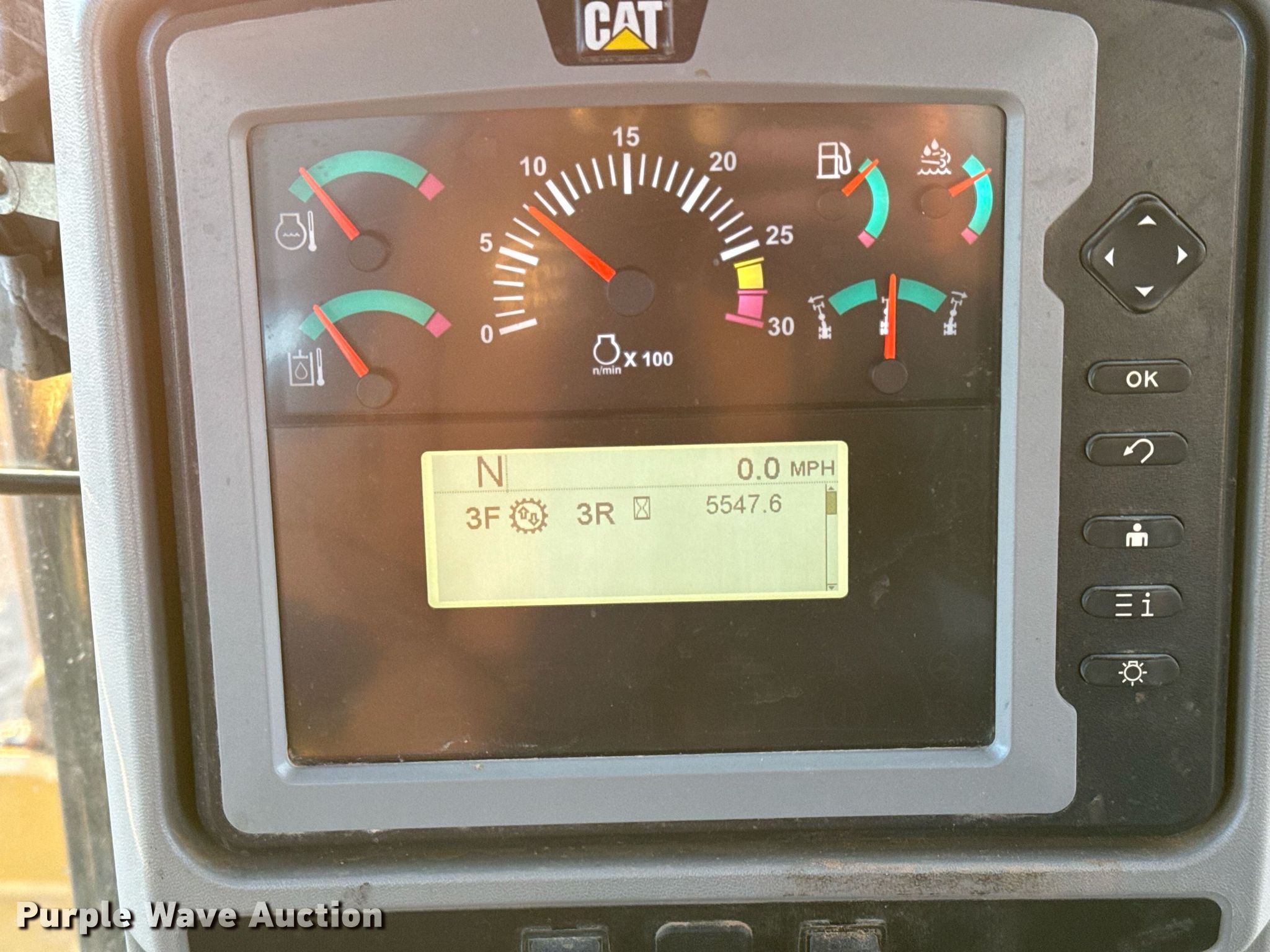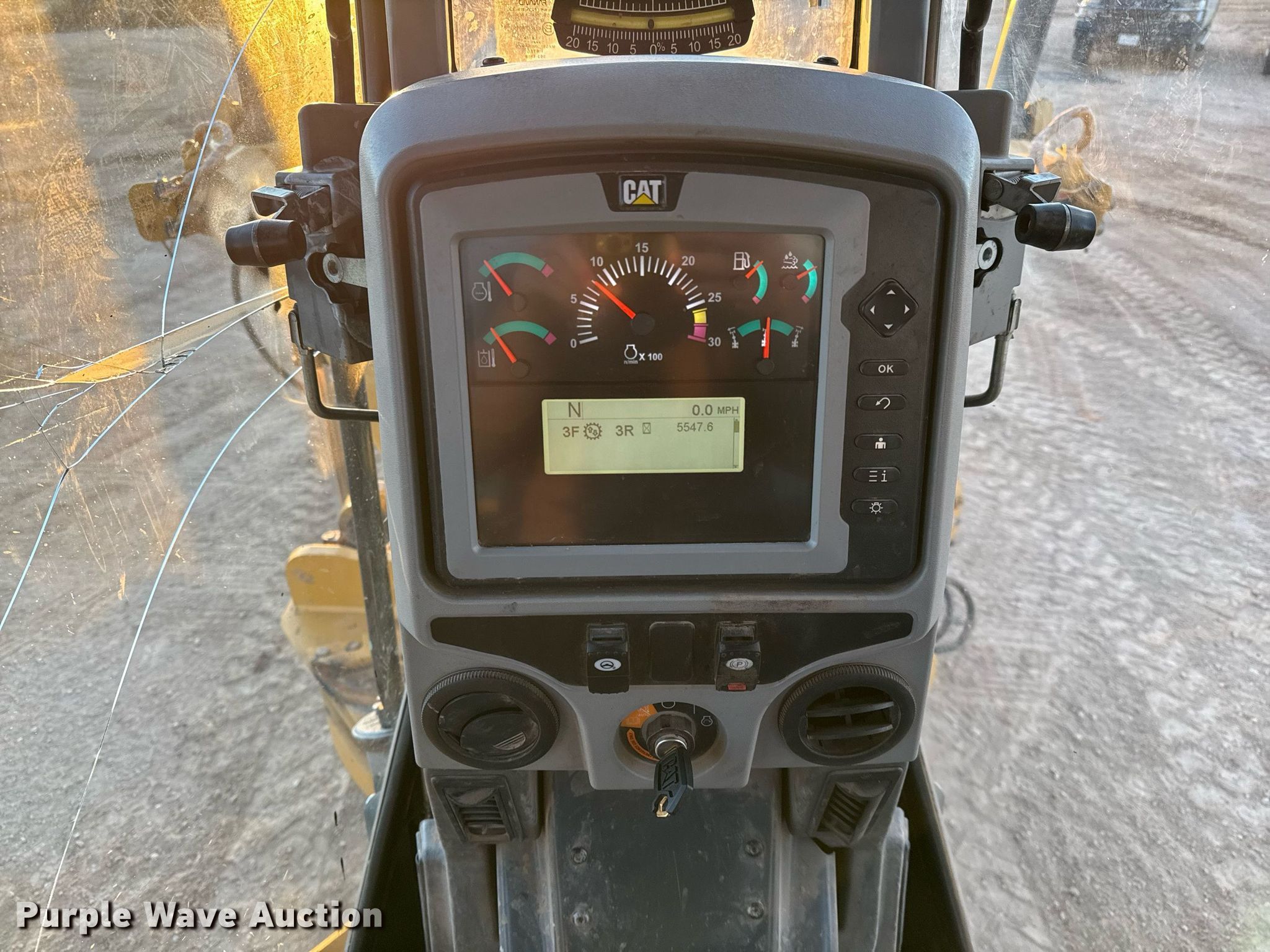 2019 Caterpillar 140M3 motor grader. Hours: 5,548 on meter, Serial: CAT0140MJN9D01575. Engine Caterpillar C9.3, Serial: SS601745, Displacement: 9.3L, Cylinders: 6, Fuel type: Diesel. Transmission Powershift, 8F - 6R. Chassis Differential lock. Operators station Enclosed cab, AC, Heat, Backup camera, Steering: Joystick. Features Moldboard: Tip control, Side shift, Moldboard total width: 14', Front-mounted push block, Rear ripper Ripper shanks: 3, Scarifier teeth: 9. Tires Size: 14.00R24. Notes Glass cracked. Big Spring, TX 79720
