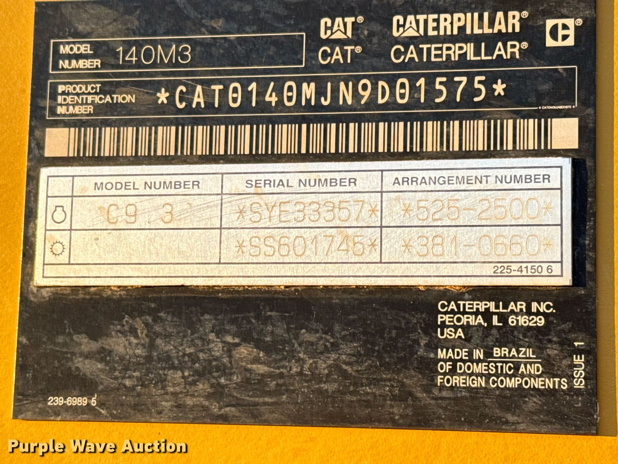 Purple Wave is selling a used Motor Grader in Texas. This item is a 2019 Caterpillar 140M3 motor grader with the following: Hours: 5,548 on meter, Serial: CAT0140MJN9D01575