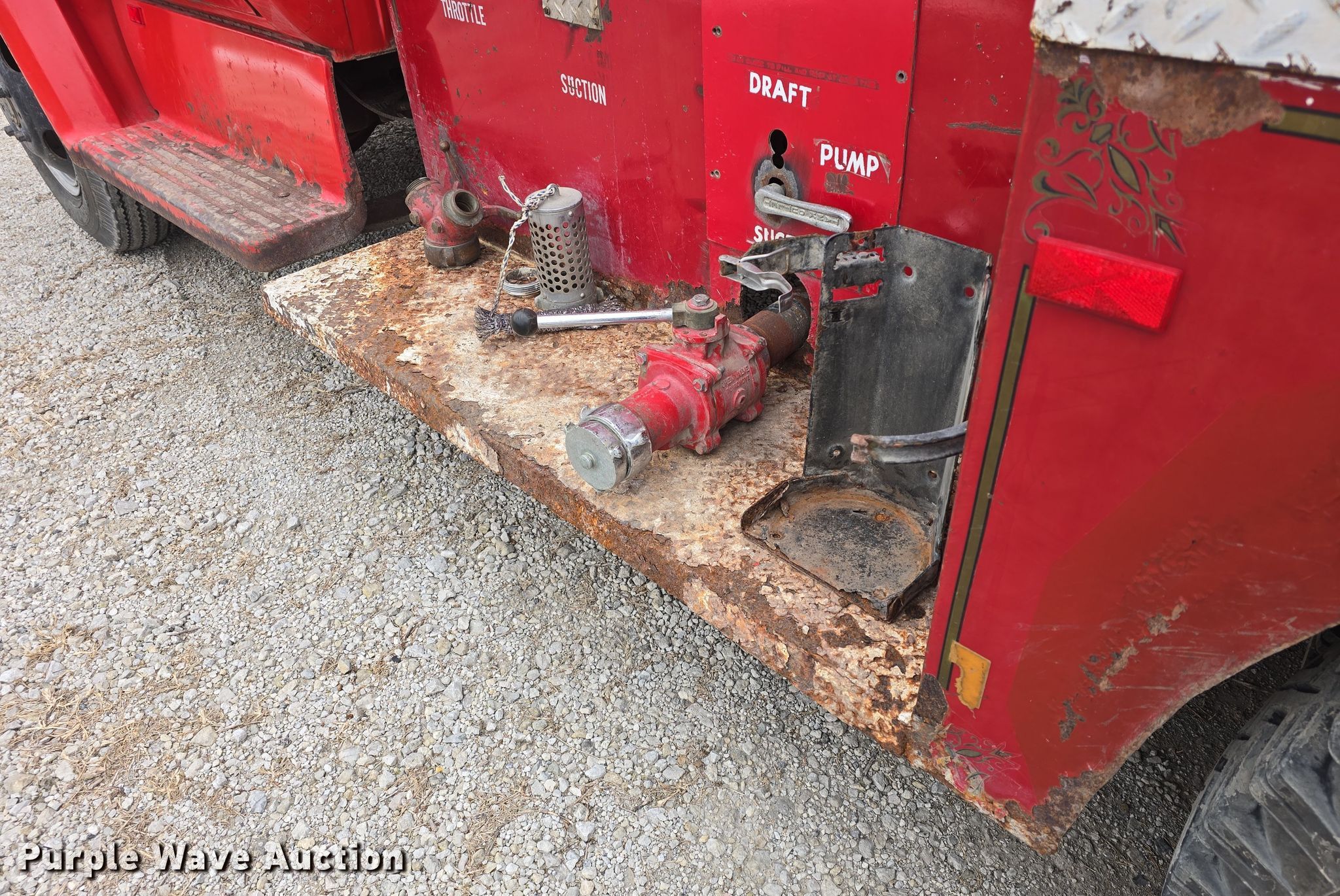 1974 GMC 6000 Custom pumper fire truck. Miles: 9,406 on odometer, VIN: TCE614V585096, Unit #: E3. Engine Cylinders: 8, Fuel type: Gas. Transmission Manual, Speed: 4, Plus 2. Chassis Axles: Single, Suspension: Spring, Brakes: Hydraulic, GVWR: 19,000 lbs, Wheelbase: 146". Interior Heat. Features Fire truck body Tank Capacity: 1,000 gallons, Pump, Ground ladder, PA/ siren controls, (2) hard suction pipes Size: 10' x 5", (2) Hannah reels, Hose Size: Approx 100', Water hose included, 24' extension ladder. Tires Size: 8.25-20. Notes Engine issues, idles rough Carburetor issues. Transfer of ownership documentation will be an Kansas antique bill of sale TR-312. This form is the only ownership documentation that will be provided and is sufficient for an Kansas buyer to apply for a Kansas title. Bidders are responsible for verifying if this is sufficient to obtain title in their jurisdiction prior to bidding.. Atchison County Fire Dist #1. Atchison, KS 66002