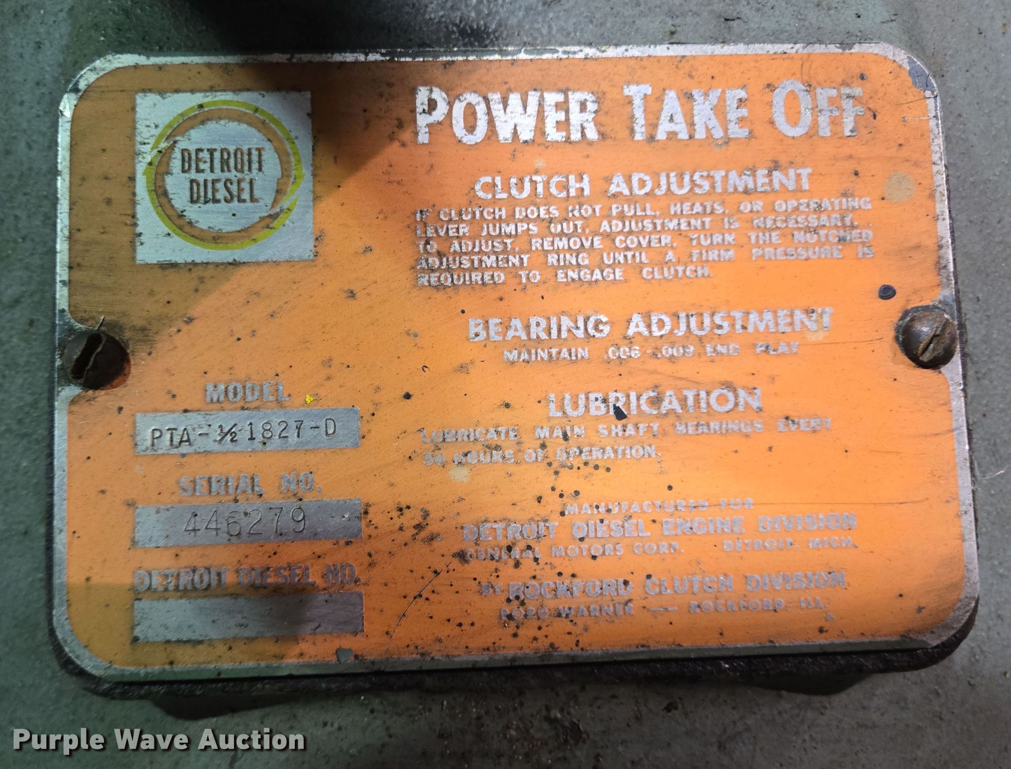Detroit Diesel 16V71 engine. Hours: 2,350 on meter, Serial: 16VA4682, Cylinders: 16, Fuel type: Diesel. Features PTO Detroit Diesel PTA-.5 1827-D, Engine stand. Notes Unknown operating condition. Jefferson County Drainage District 7. Port Arthur, TX 77640
