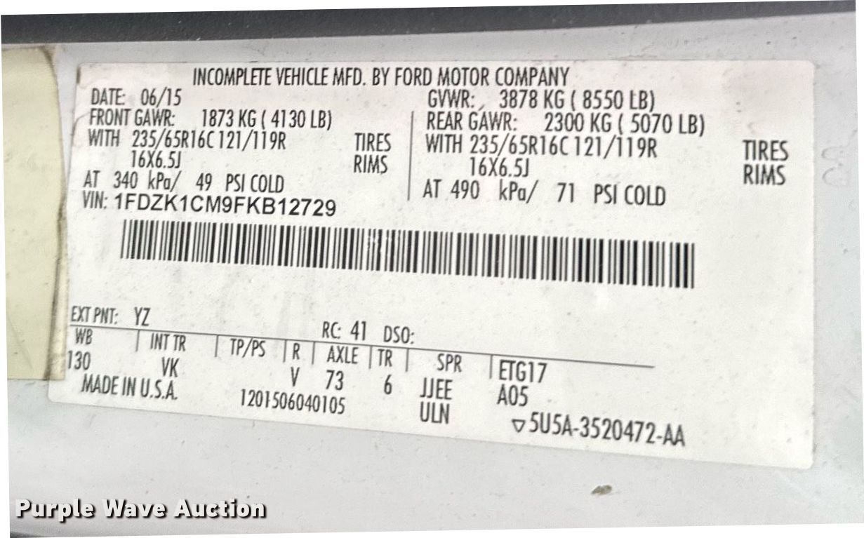 Purple Wave is selling a used 1/2 Ton Pickup or Van in Tennessee. This item is a 2015 Ford Transit 150 van with the following: Miles: 283,442 on odometer, VIN: 1FDZK1CM9FKB12729