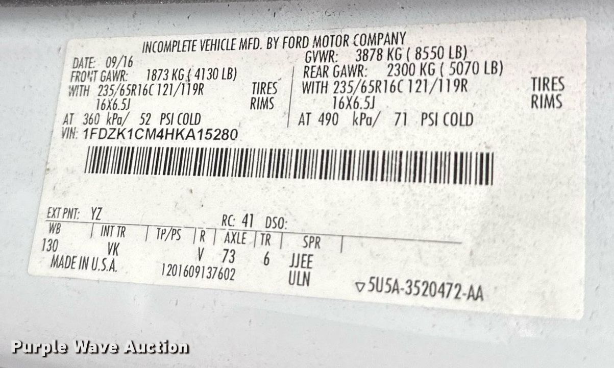- VIN: 1FDZK1CM4HKA15280