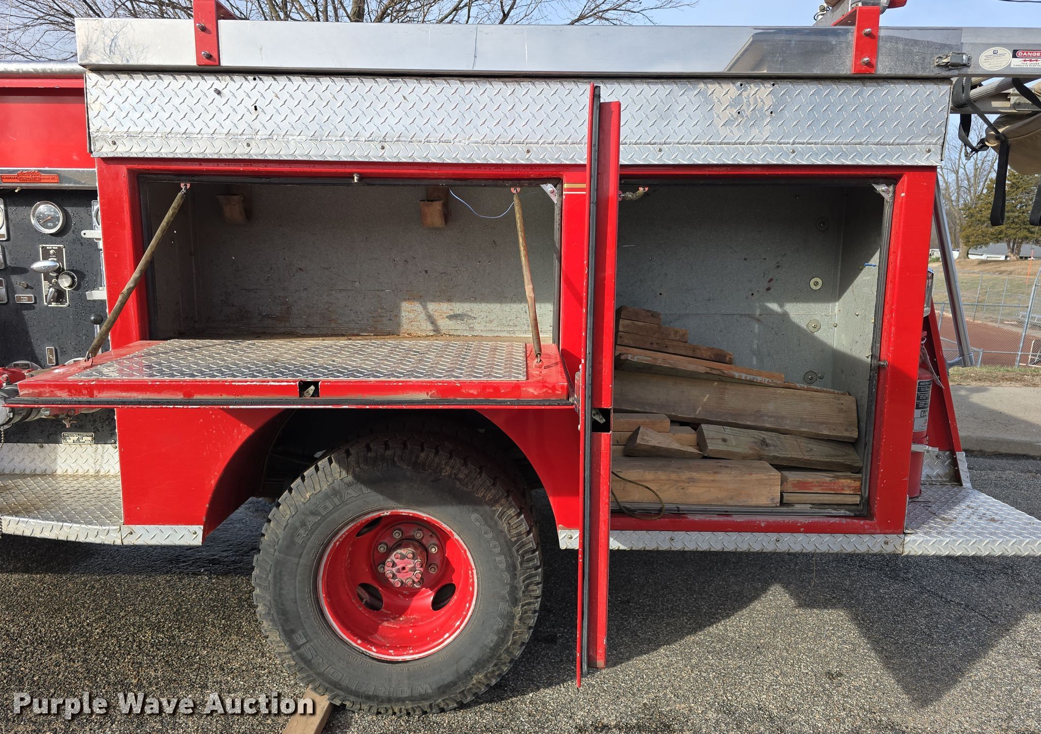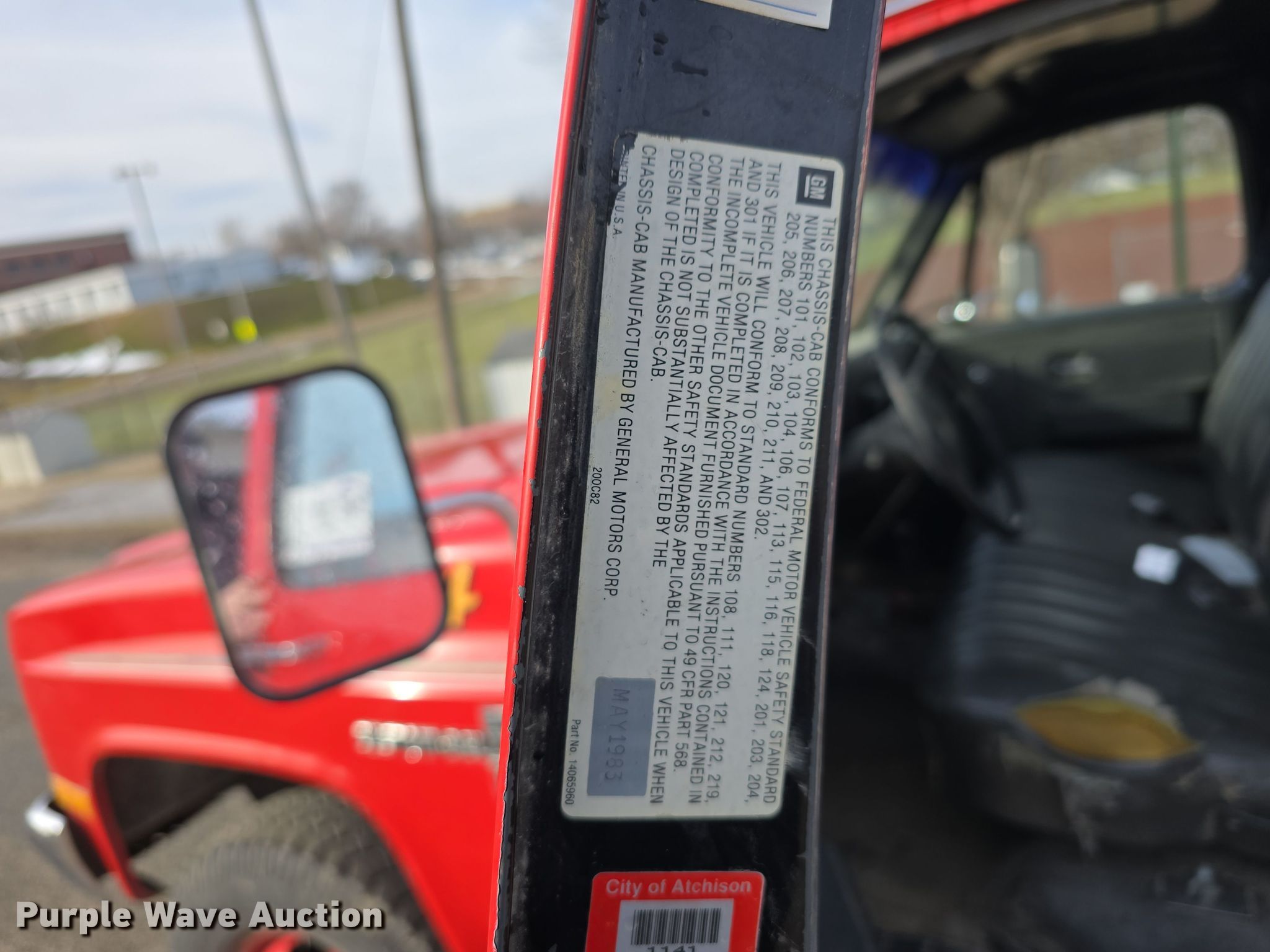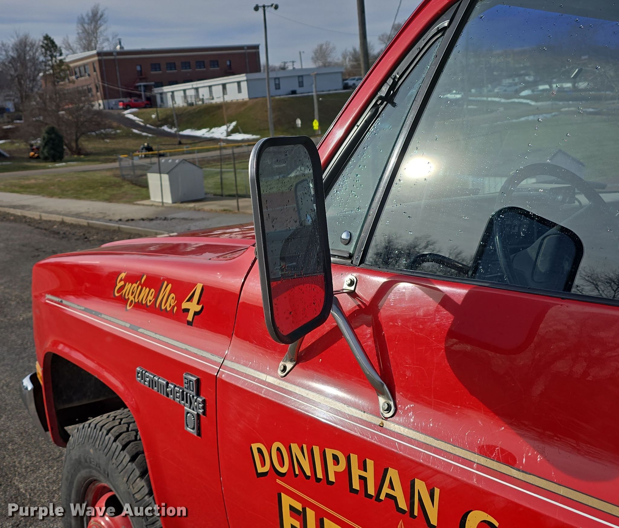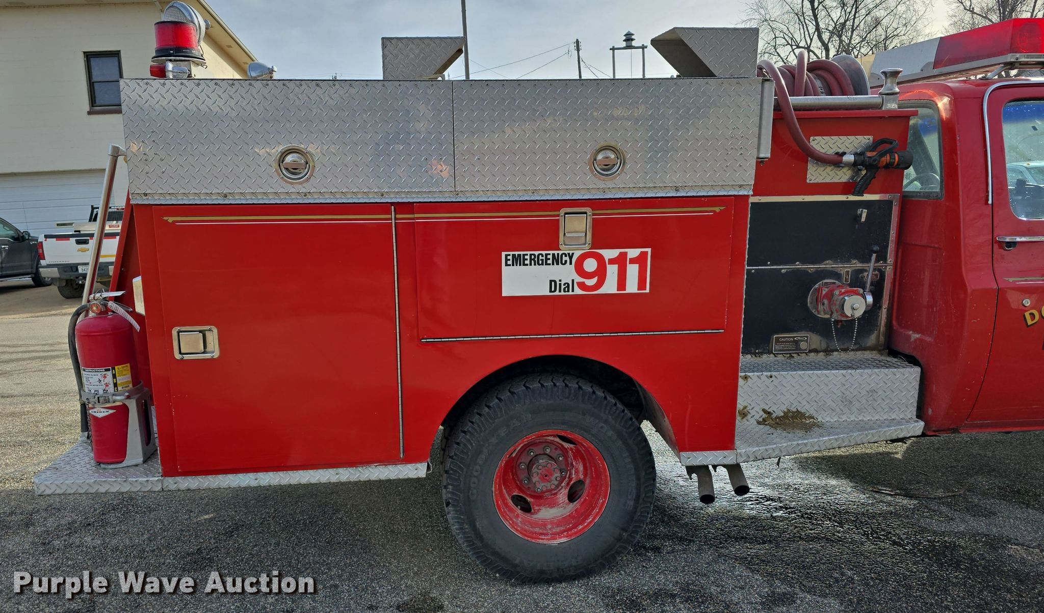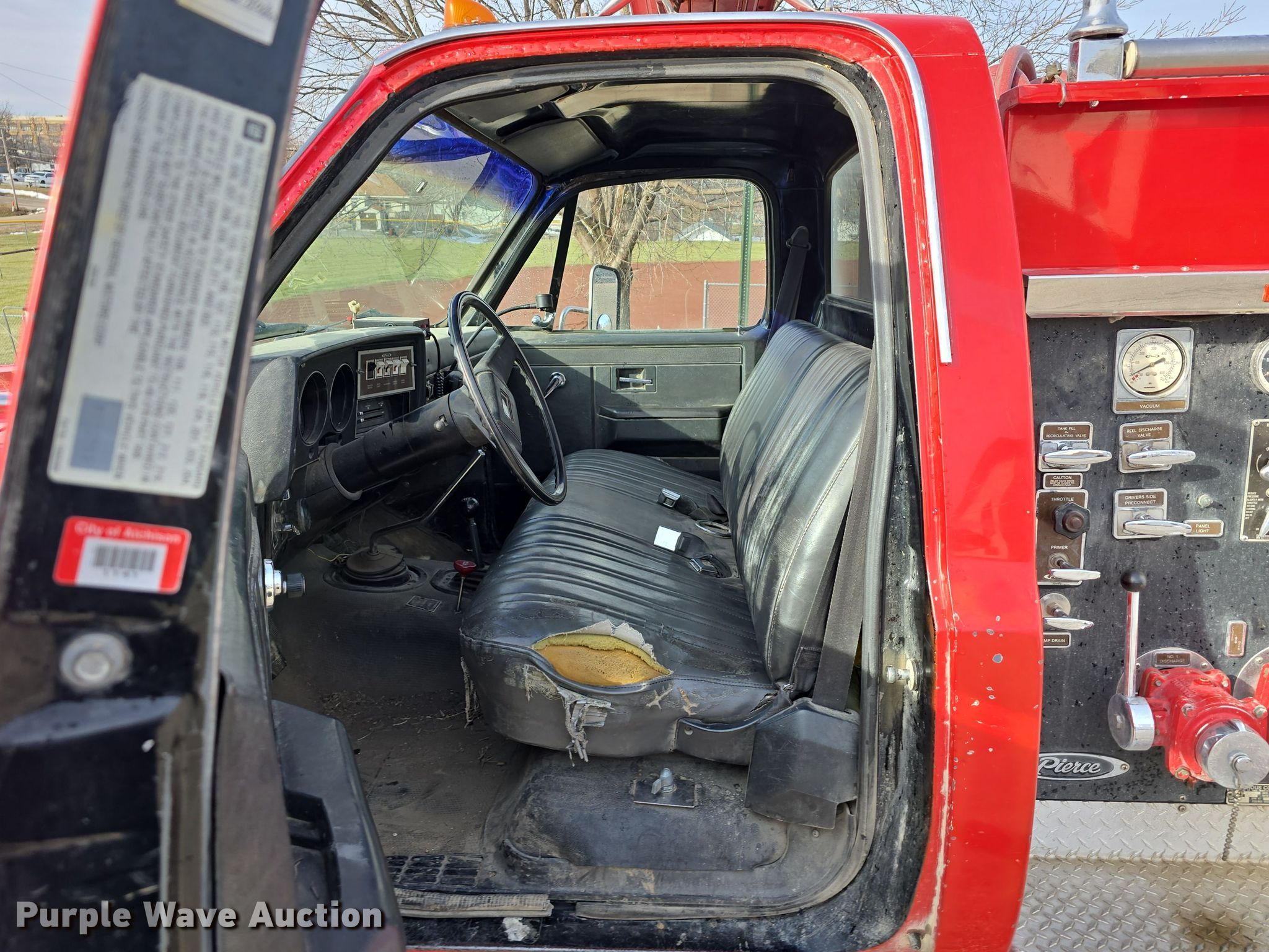 Purple Wave is selling a used Fire Truck or Emergency Vehicle in Kansas. This item is a 1983 Chevrolet Custom Deluxe 30 pumper fire truck with the following: Miles: 65,067 on odometer, Miles or hours may vary, unit still in use, VIN: 1GBJK34W4DV122923