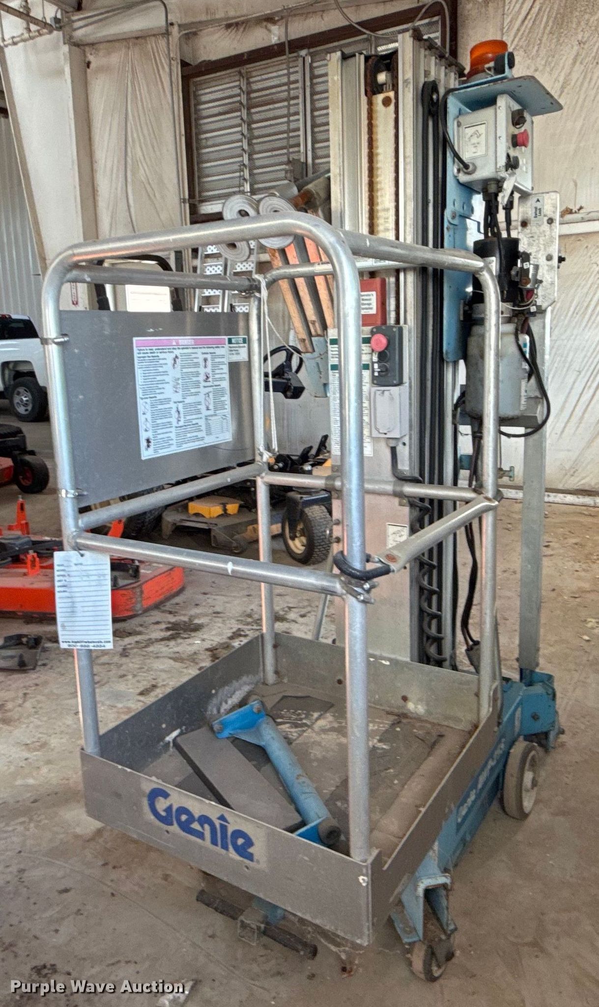 Purple Wave is selling a used Scissor or Vertical Lift in Oklahoma. This item is a 2005 Genie AWP-25S vertical lift with the following: Hours: Unknown, Serial: AWP0535473