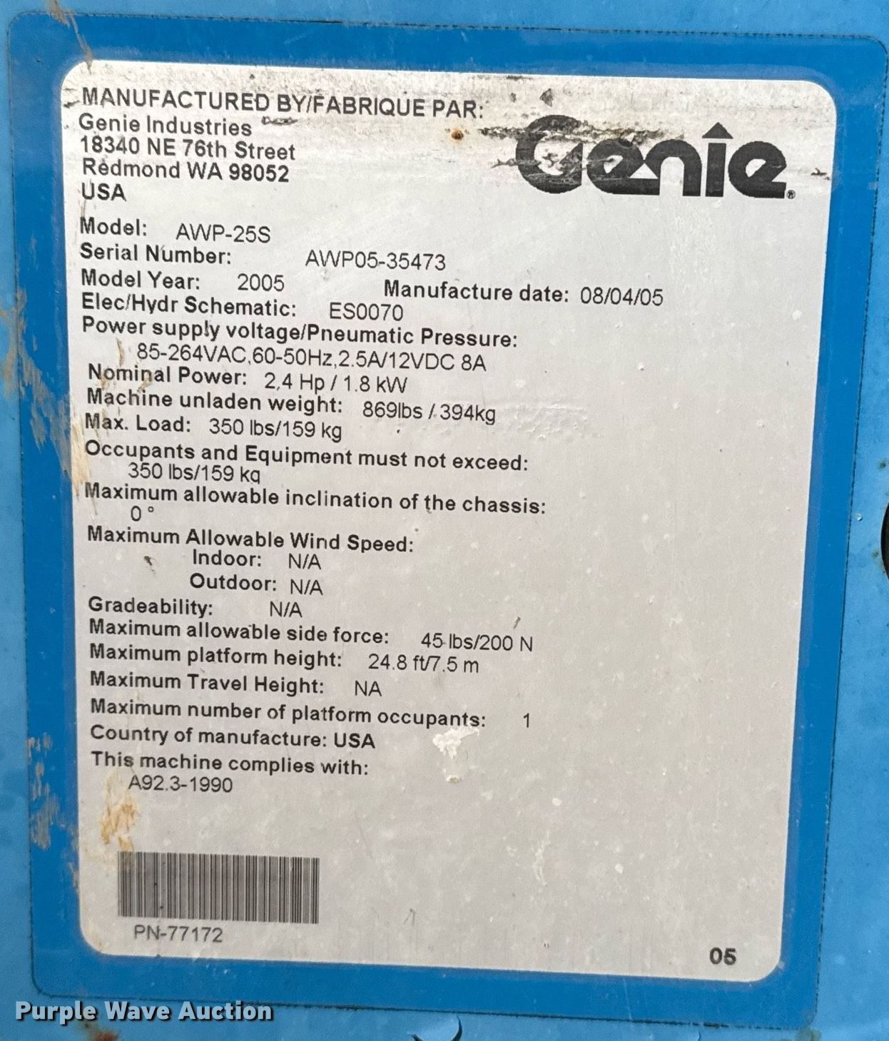2005 Genie AWP-25S vertical lift | SOLD! March 04 Government Auction