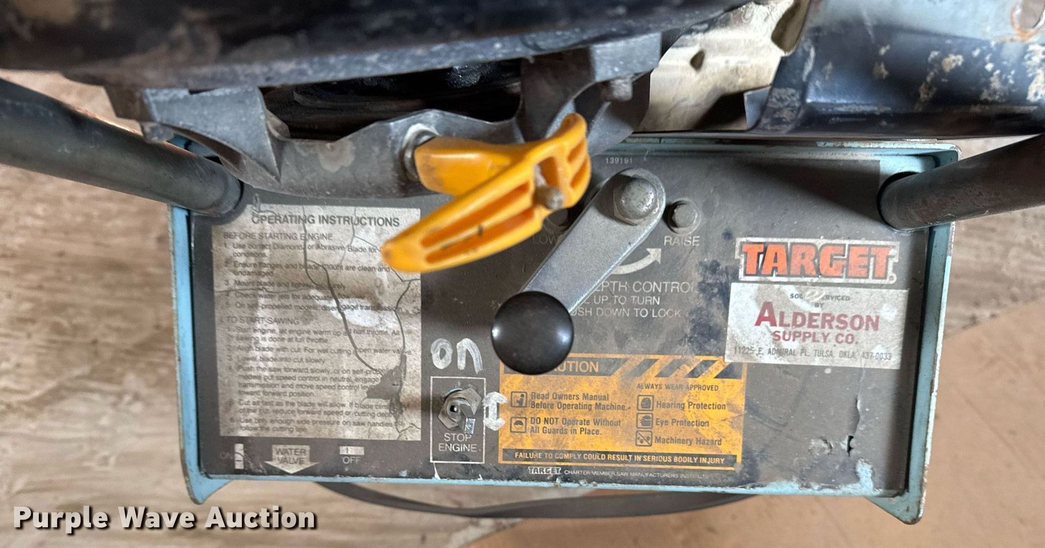 Purple Wave is selling a used Concrete Equip. or Acces. in Oklahoma. This item is a Target PAC III concrete saw with the following: Cylinders: 1, Fuel type: Gas
