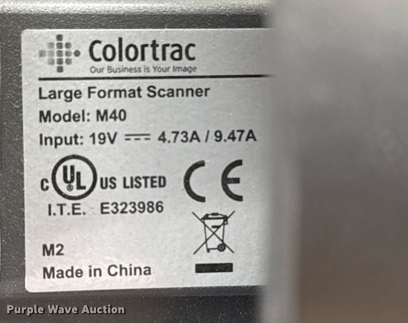 Purple Wave is selling a used Office Supplies and Equip. in Oklahoma. This item is a Colortrac M40 format scanner with the following: Volts: 19