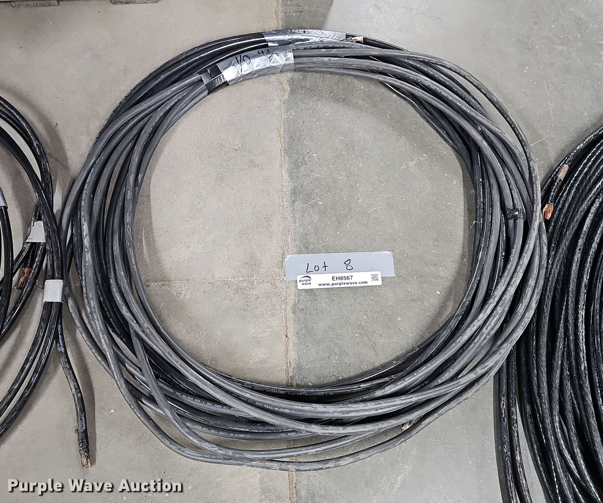 Purple Wave is selling a used Building Materials in Nebraska. This item is a (2) rolls of 1/0 electrical wire with the following: Unit #: 8, 43' L, 45' L