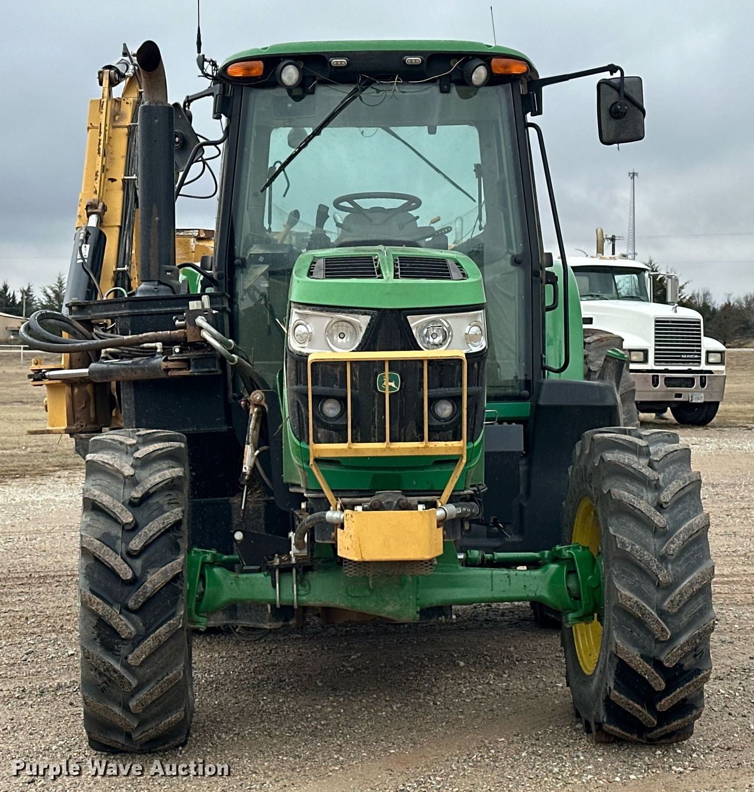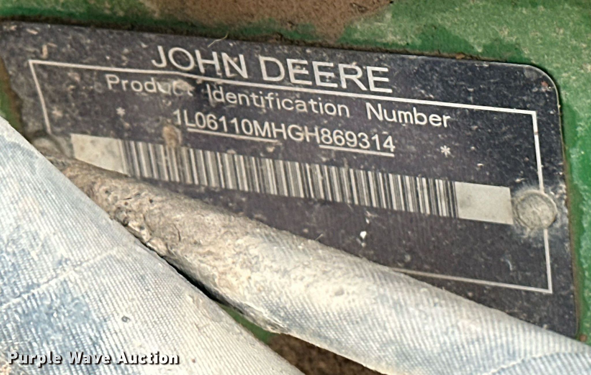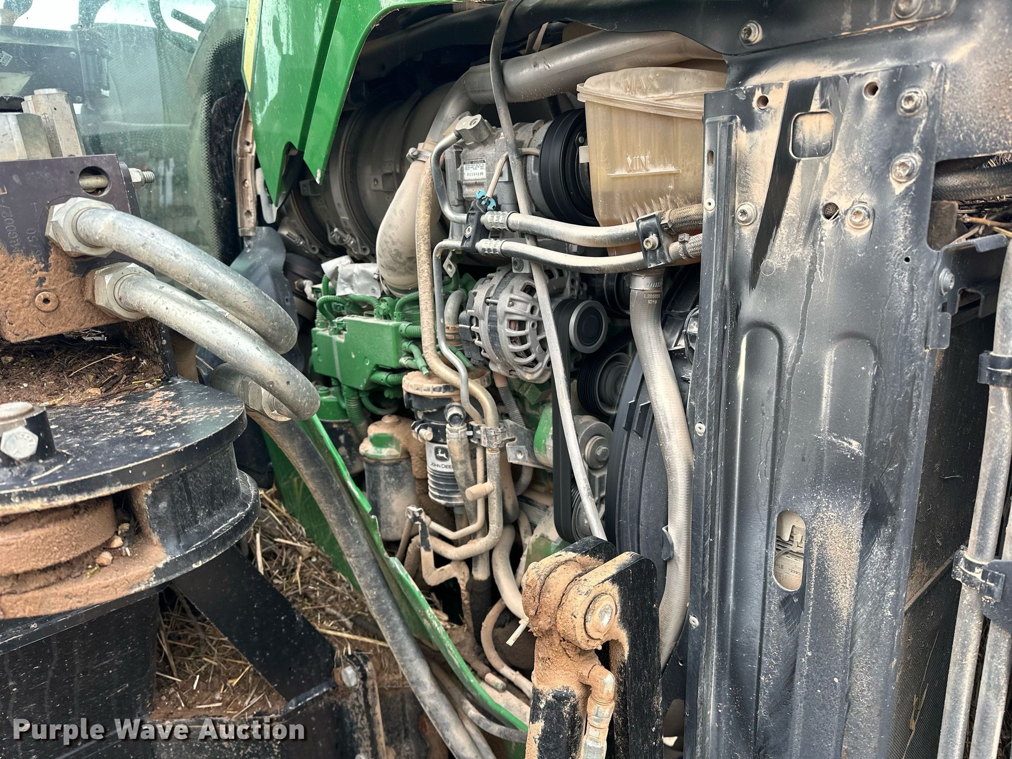 2017 John Deere 6110M MFWD tractor. Hours: 5,119 on meter, Serial: 1L06110MHGH869314. Engine John Deere 4045HL503, Serial: CD4045U025384, Cylinders: 4, Fuel type: Diesel. Transmission Powershift, 16F - 16R, Left-hand reverser, Differential lock. Operators station AC, Heat. Features PTO: 540, Three point, Seven pin outlet, Hydraulic remote sets Rear: 2, Power beyond (hydraulics), Side boom rotary mower Tiger Bengal, Width: 50". Tires Front: 340/85R24, Rear: 420/85R34, Wheel weights: 1. Pottawatomie County, OK. Maud, OK 74854
