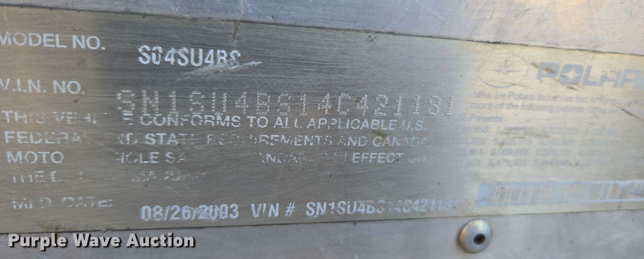 Purple Wave is selling a used ATV in South Dakota. This item is a 2004 Polaris Wide Trak LX snowmobile with the following: Miles: 1,282 on odometer, VIN: SN1SU4BS14C421181, Unit #: 1