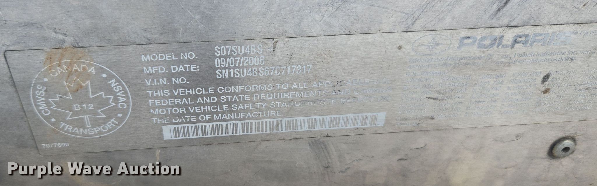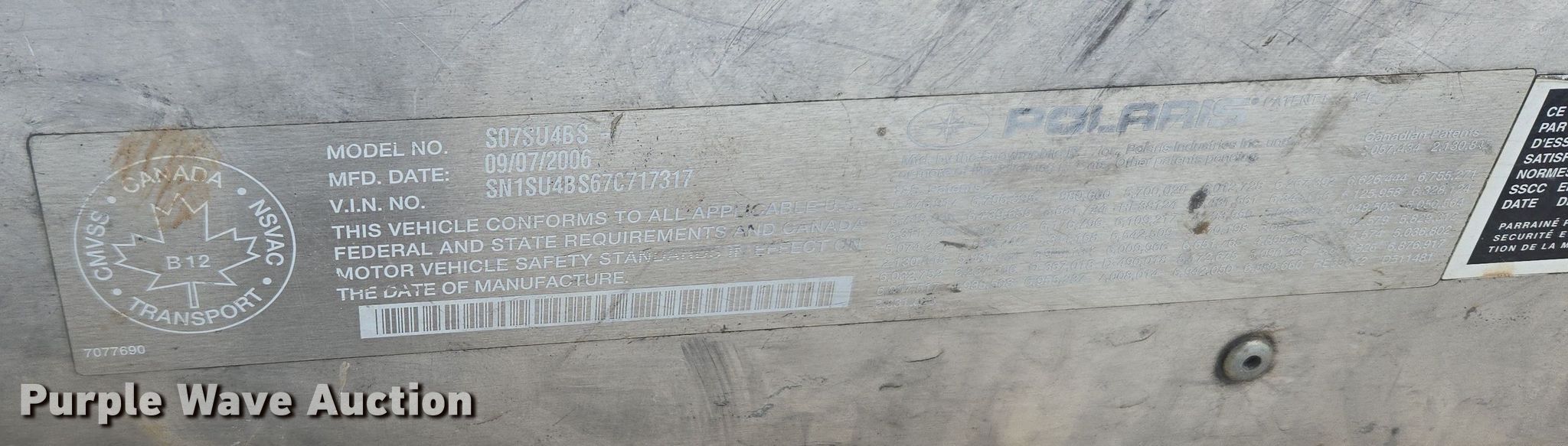 Purple Wave is selling a used ATV in South Dakota. This item is a 2007 Polaris Wide Trak snowmobile with the following: Miles: 1,069 on odometer, Hours: 577 on meter, VIN: SN1SU4BS67C717317, Unit #: 3