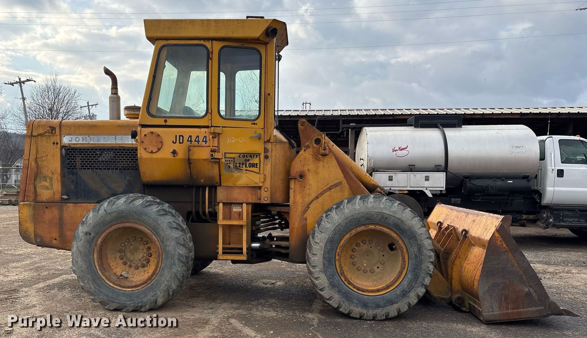 Purple Wave is selling a used Wheel Loader in Oklahoma. This item is a 1980 John Deere JD444 wheel loader with the following: Hours: 5,643 on meter, Serial: 339782T, Unit #: 312-002