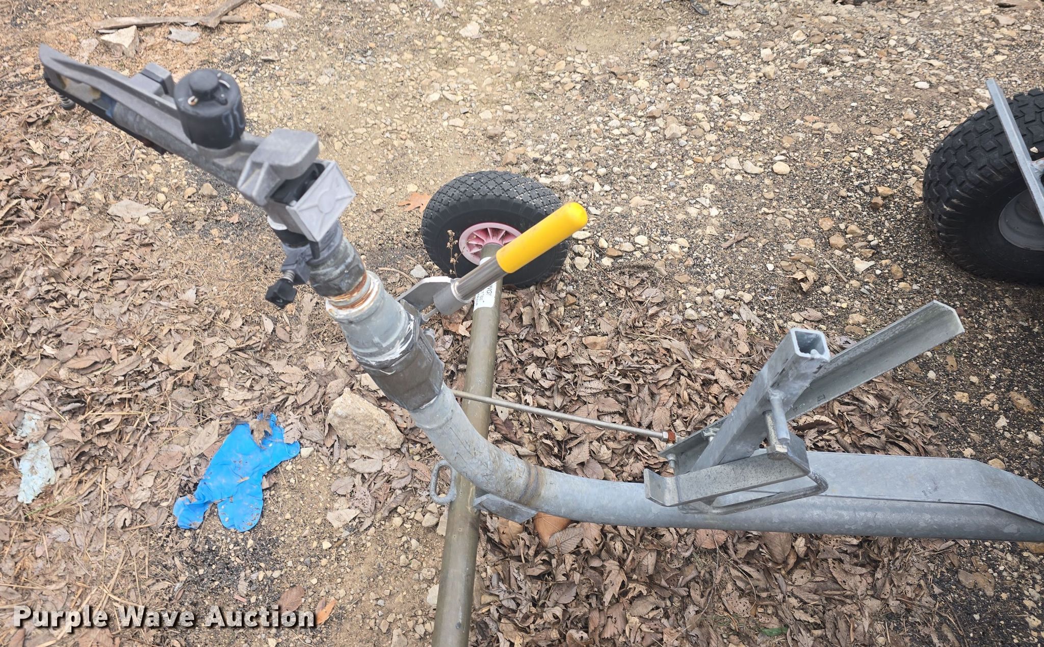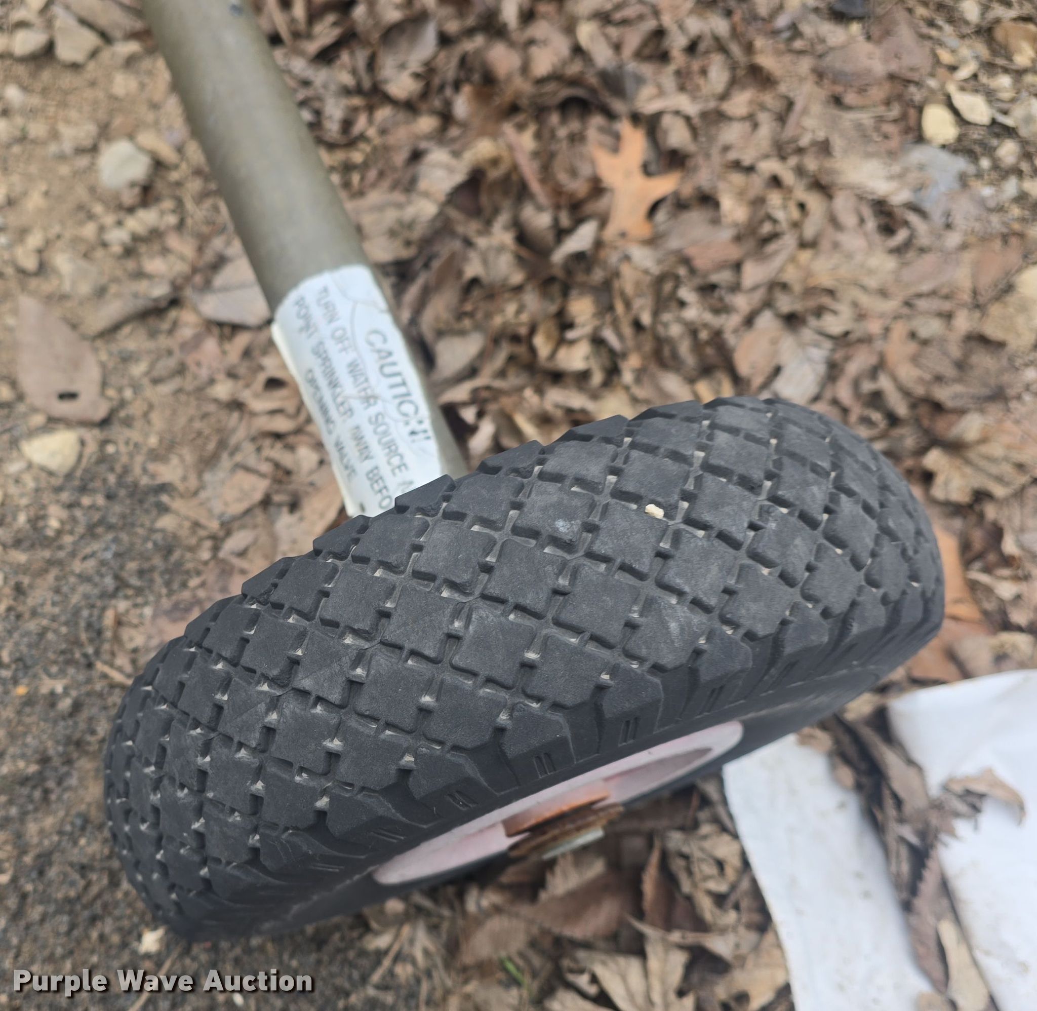 KID Micro Rain MR43 hose reel. Serial: 02082498. Features Hose Length: Approx. 380', Rear sprinkler head. Tires Front: 13x5.00-5, Rear: 15x6.00-6. Notes Possible hose damage, Possible undercarriage damage, Flat tires. USD 379 Clay Center. Clay Center, KS 67432