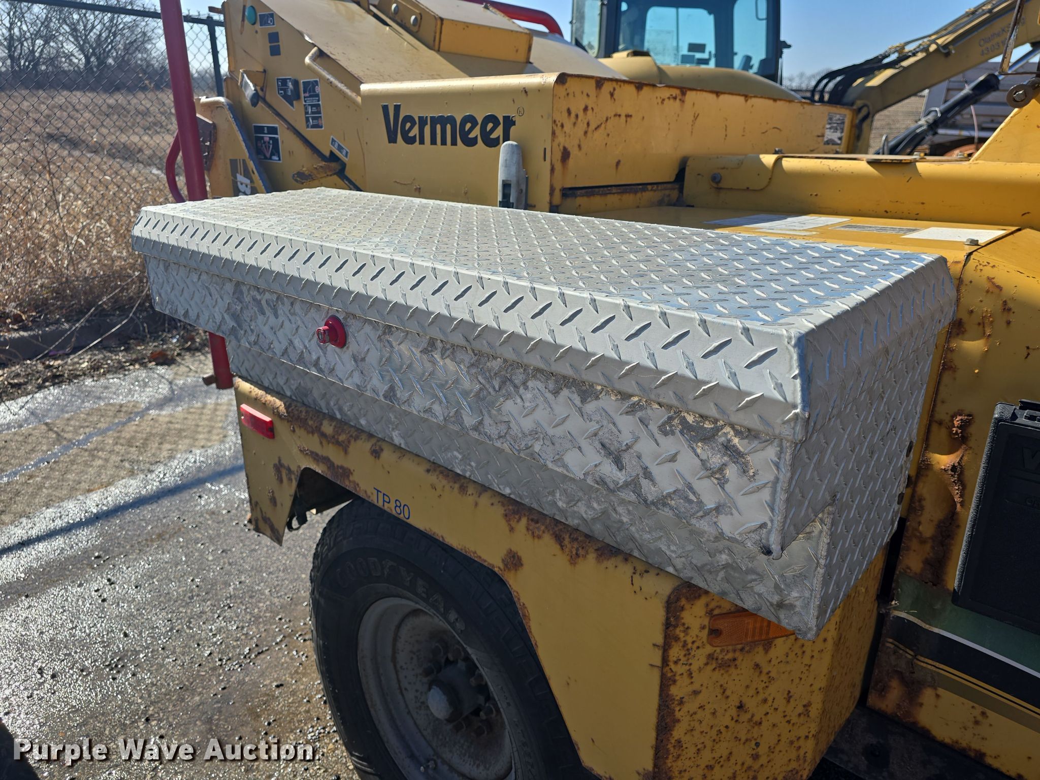 2008 Vermeer BC1500 wood chipper. VIN: 1VR2161V781001428. Engine John Deere 4045HF285CDEFG, Displacement: 4.5L, Fuel type: Diesel. Features Capacity: 6", Throat opening: 34" x 20". Tires Size: 285/75R16. Trailer Hitch: Pintle, 10' L x 84" W, Suspension: Spring, Axles: Single, GVWR: 7,500 lbs, GAWR: 7,500 lbs. Notes Dead battery. This is worksite support equipment and will not come with a title. Transfer of ownership documentation will be a bill of sale. City of Olathe. Olathe, KS 66061
