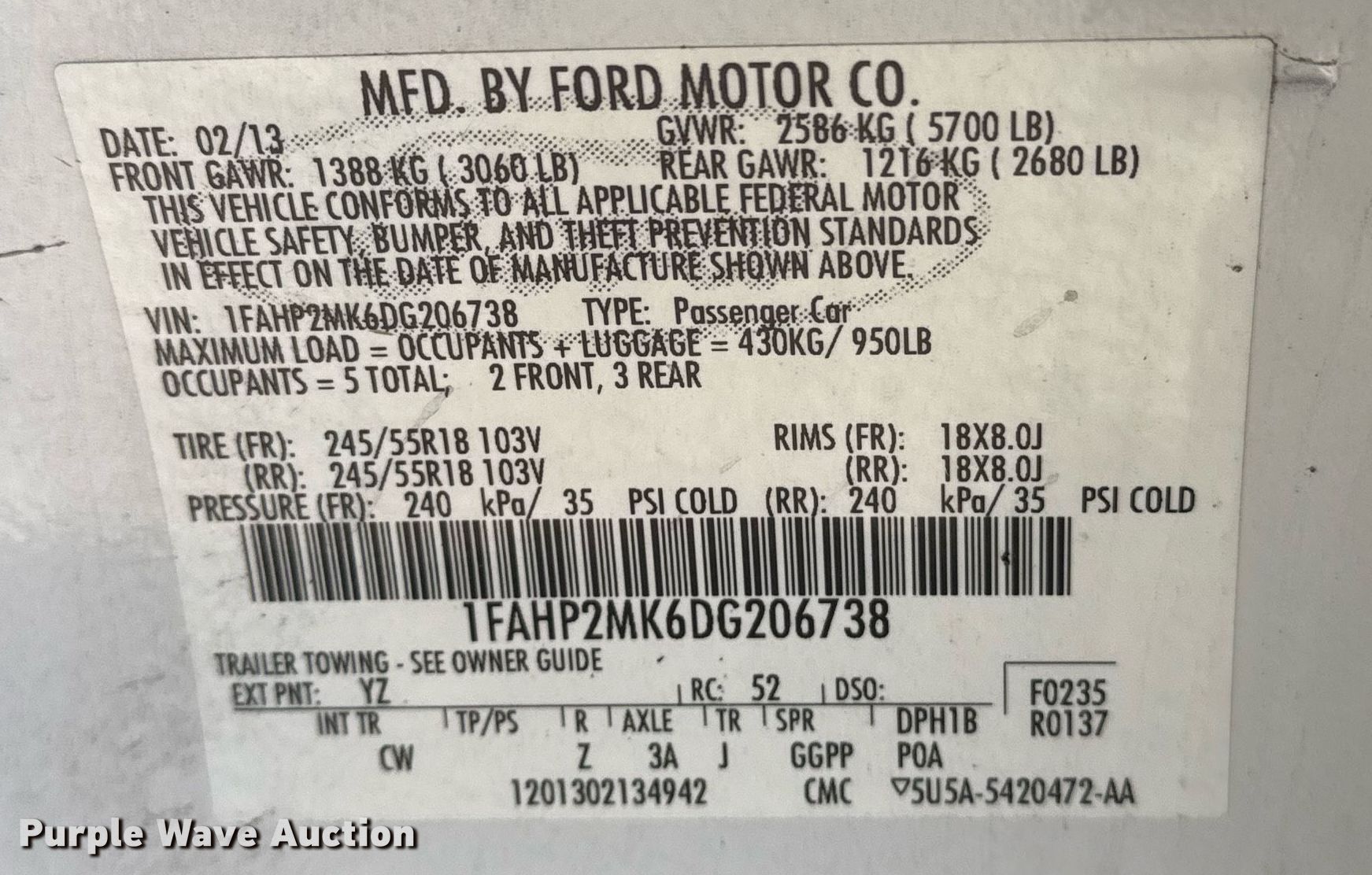 - VIN: 1FAHP2MK6DG206738