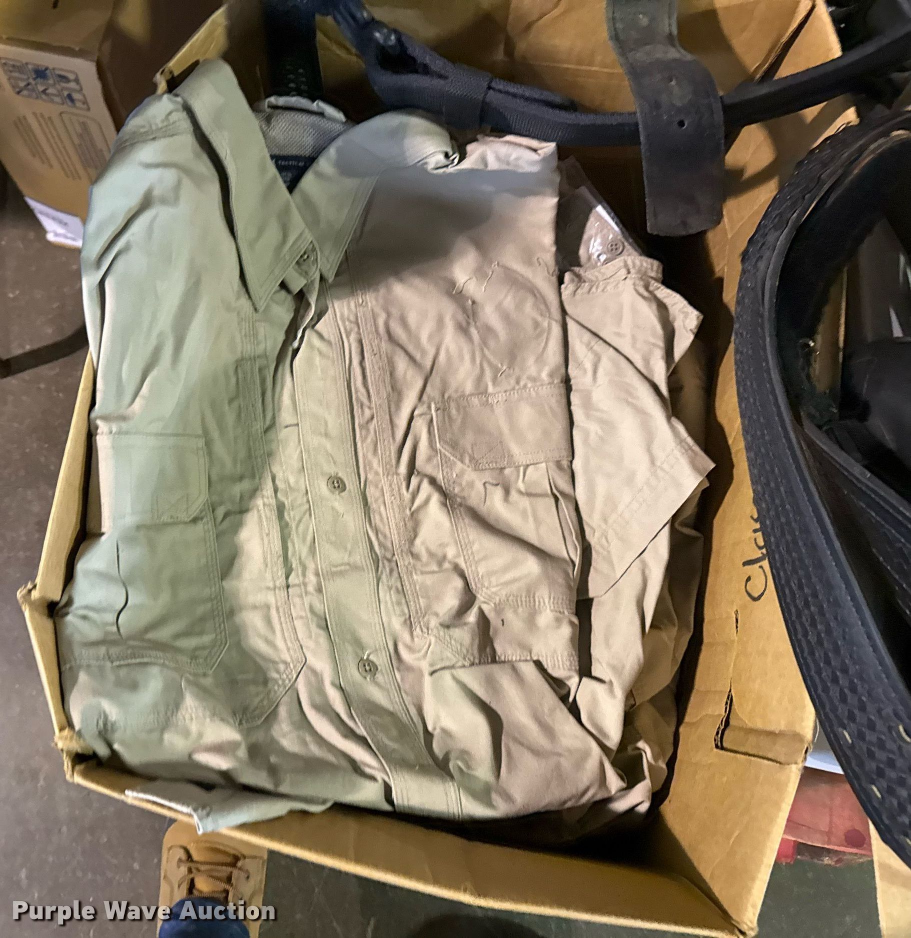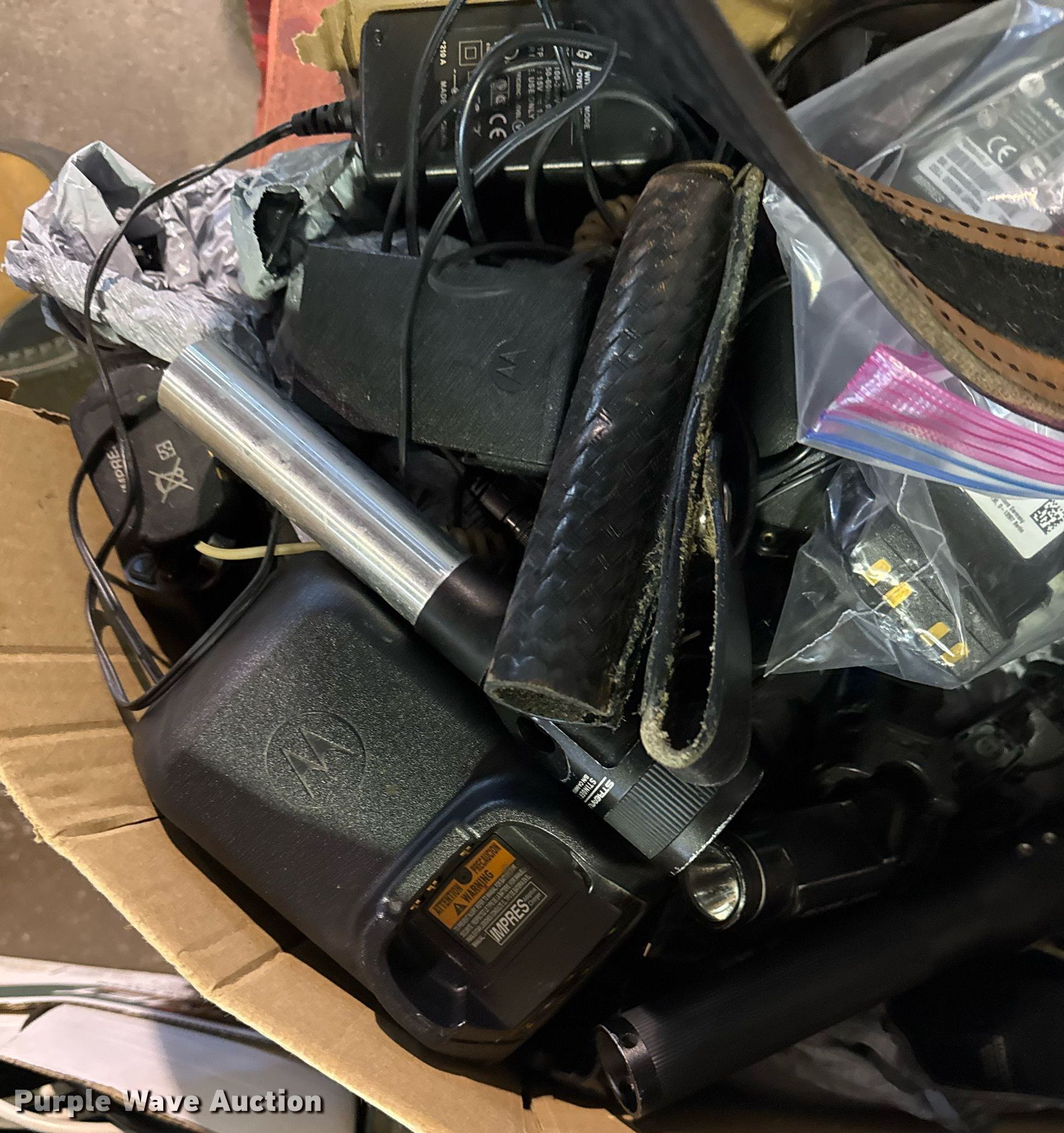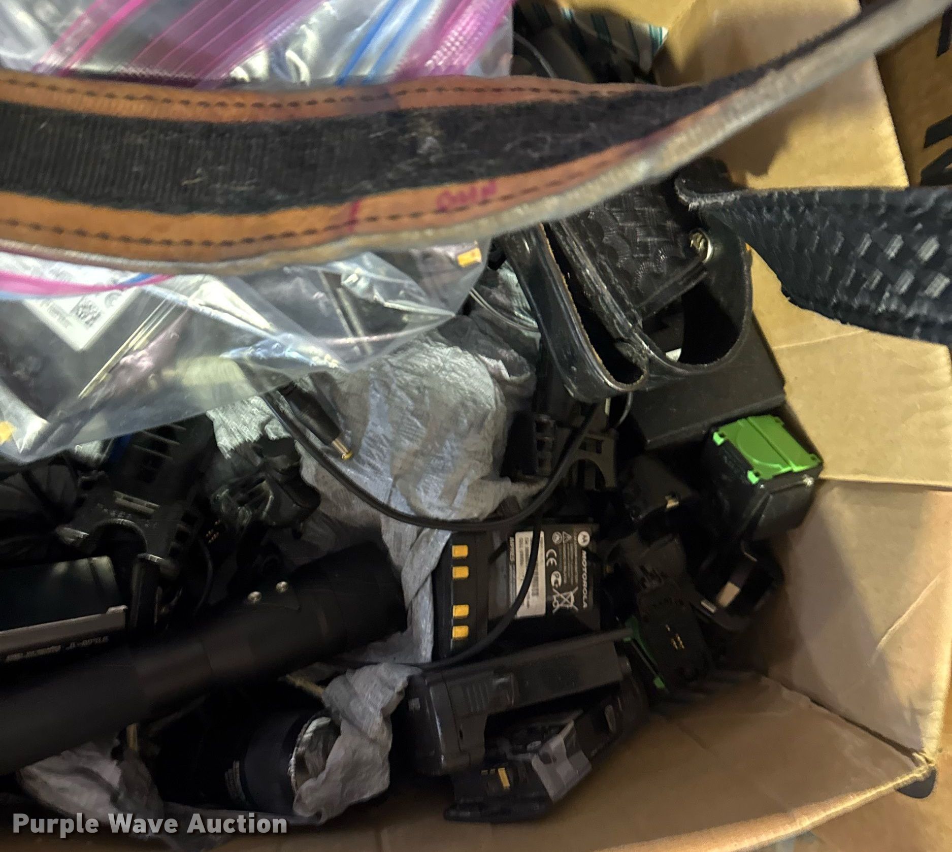 Purple Wave is selling a used Sporting Goods in Oklahoma. This item is a Sporting goods with the following: Unit #: 2038, (14) 5.11 shirts, Motorola batteries and chargers, Streamlight LED flashlights, Belts and more