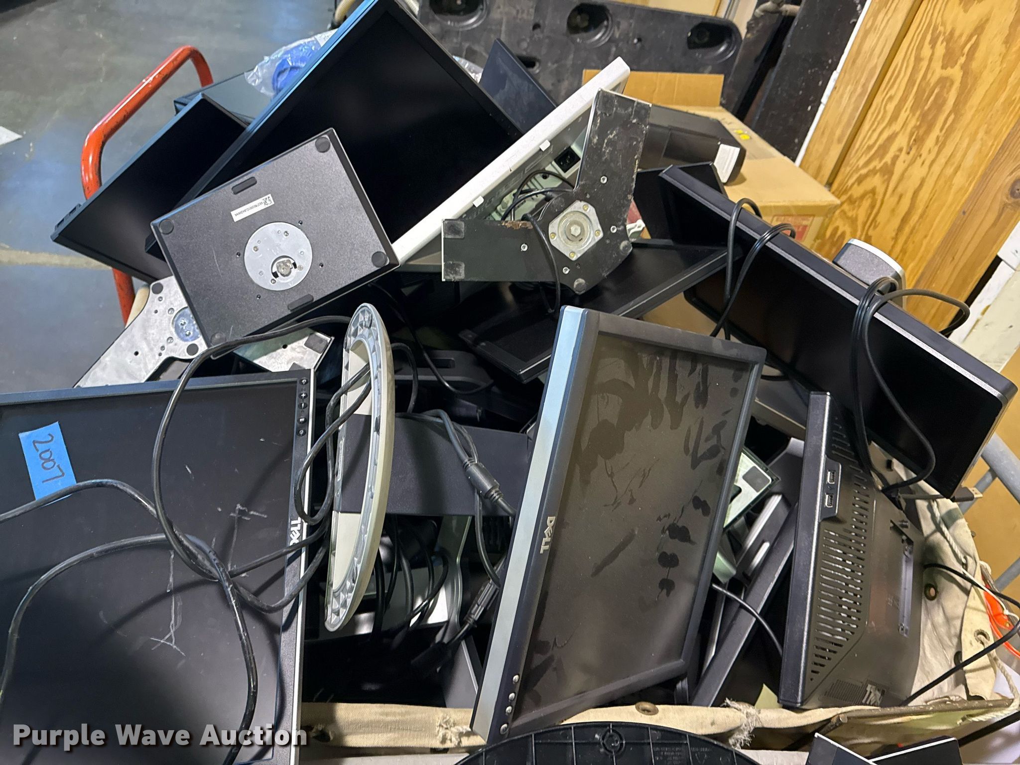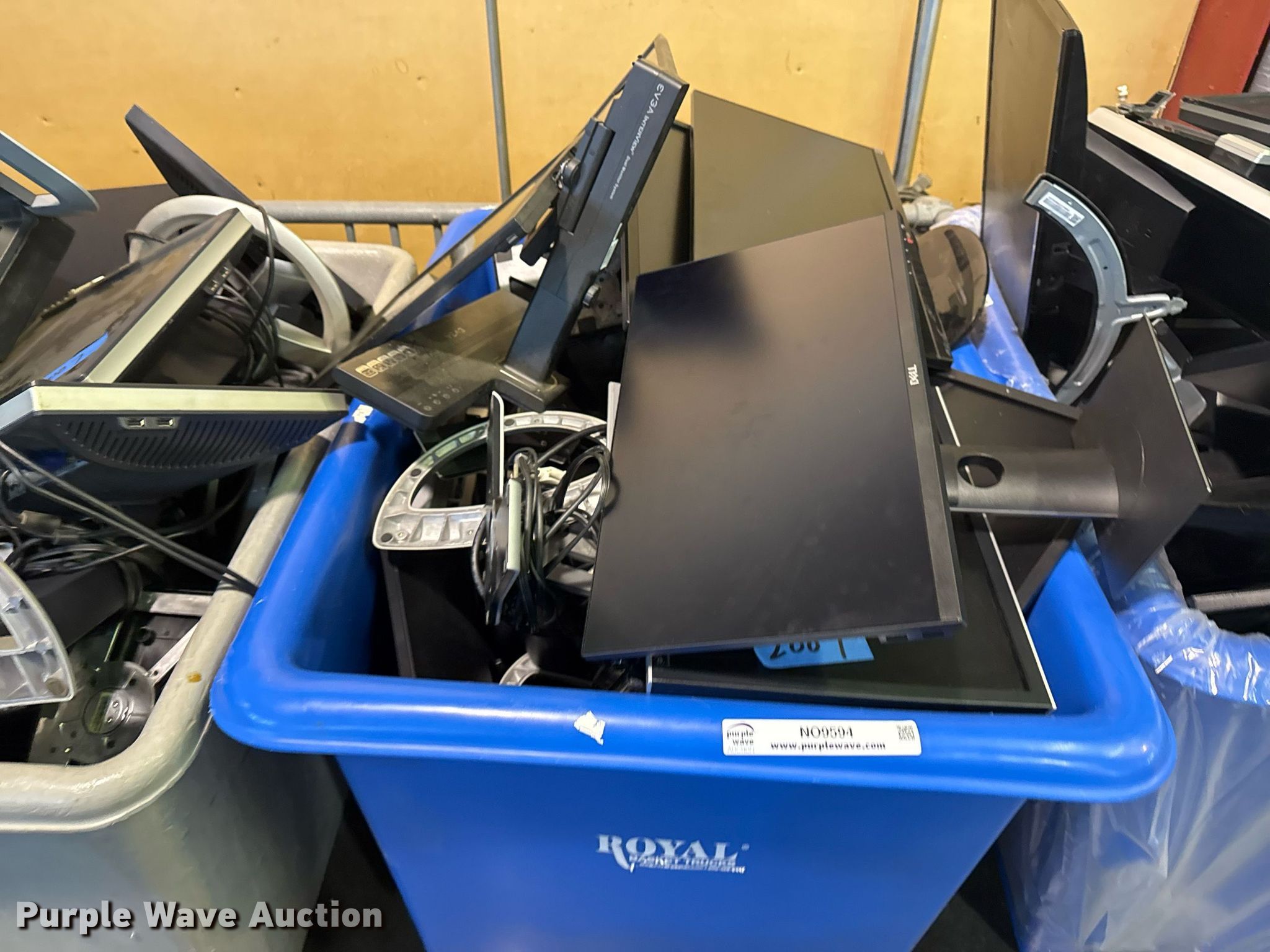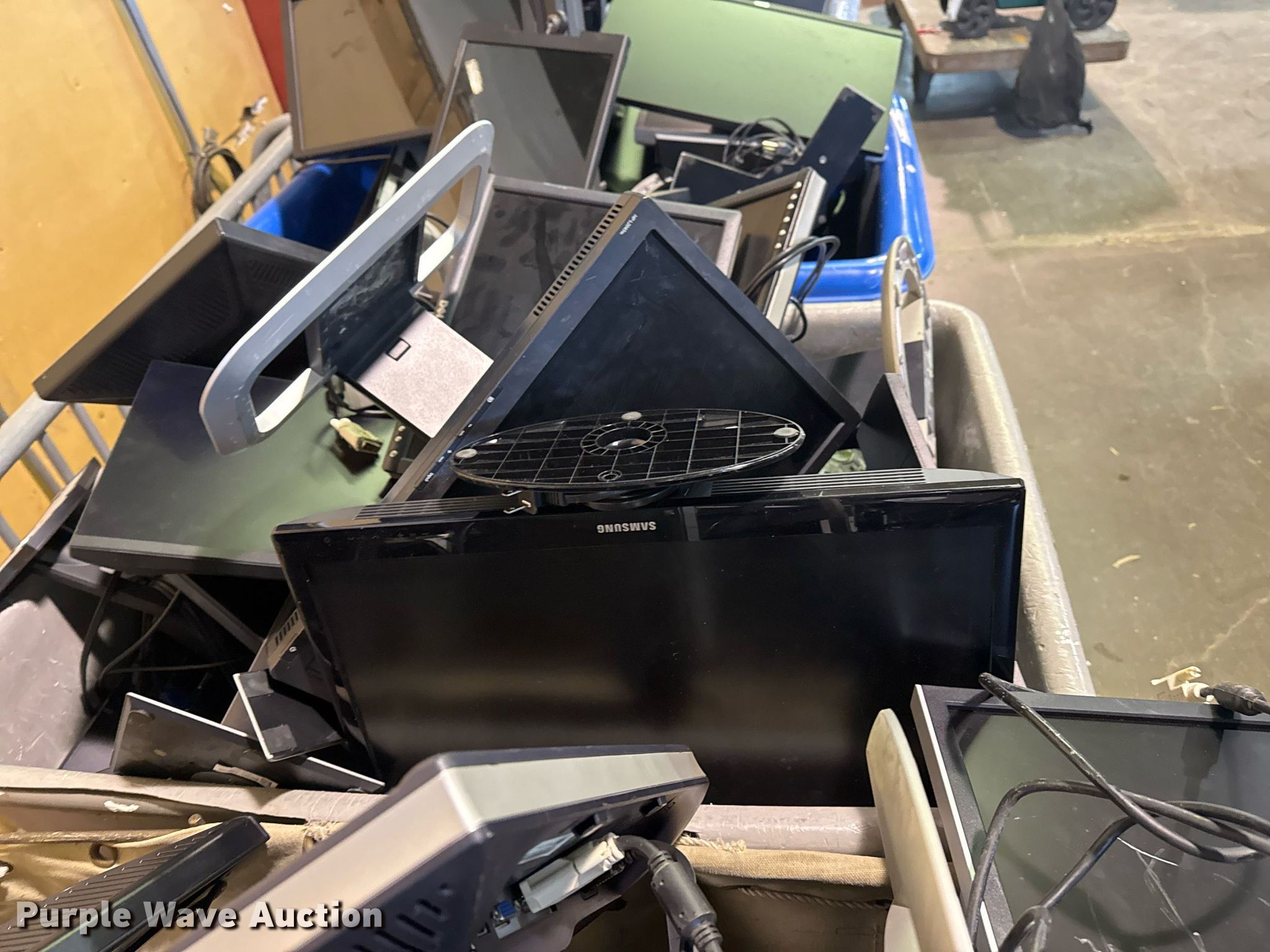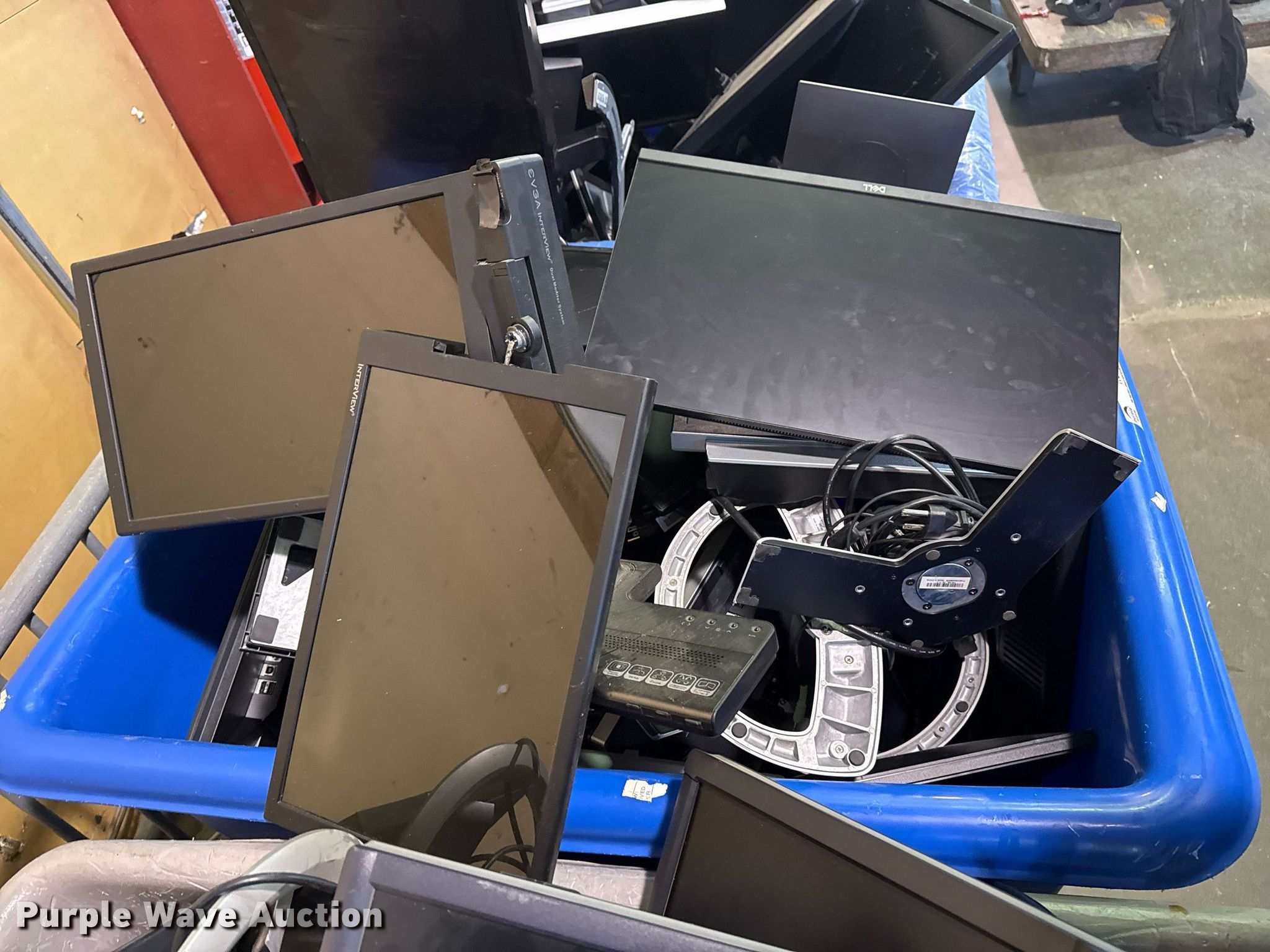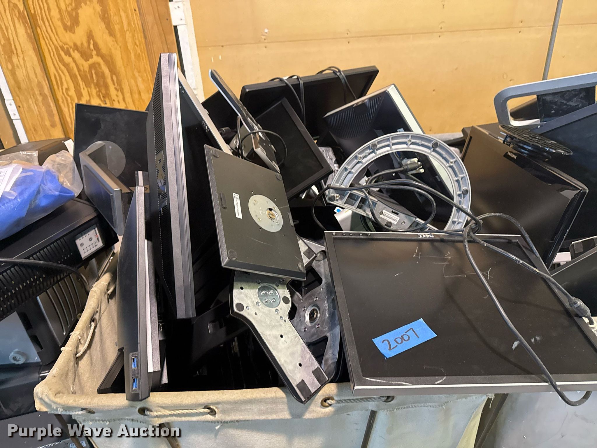 Purple Wave is selling a used Electronics in Oklahoma. This item is a Electronics with the following: Unit #: 2015, Monitors, Stands, Cables missing, Totes not included
