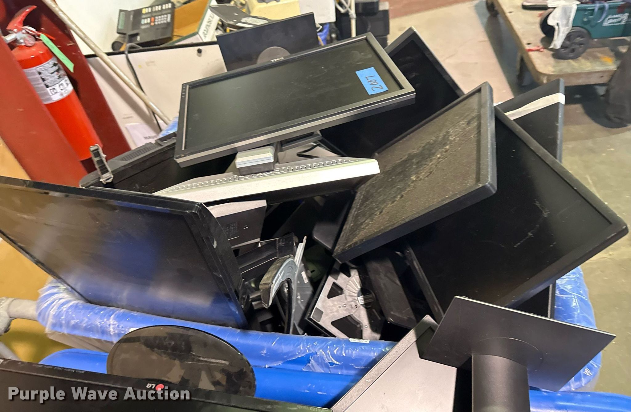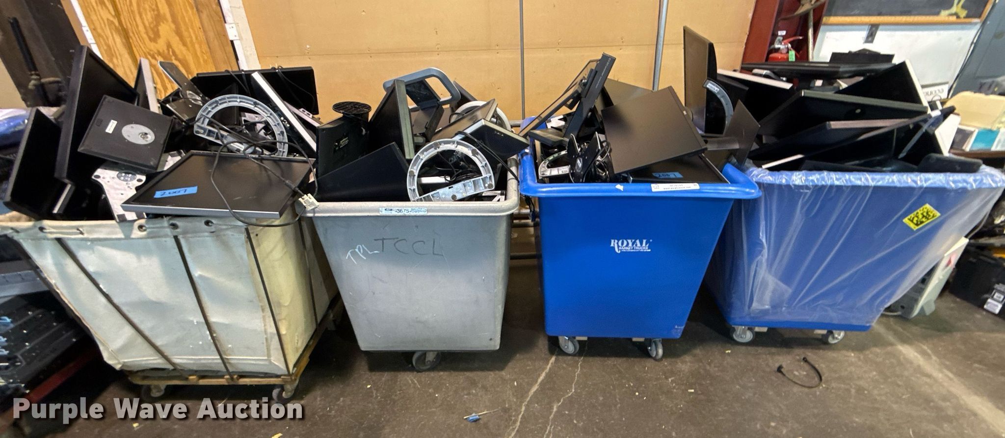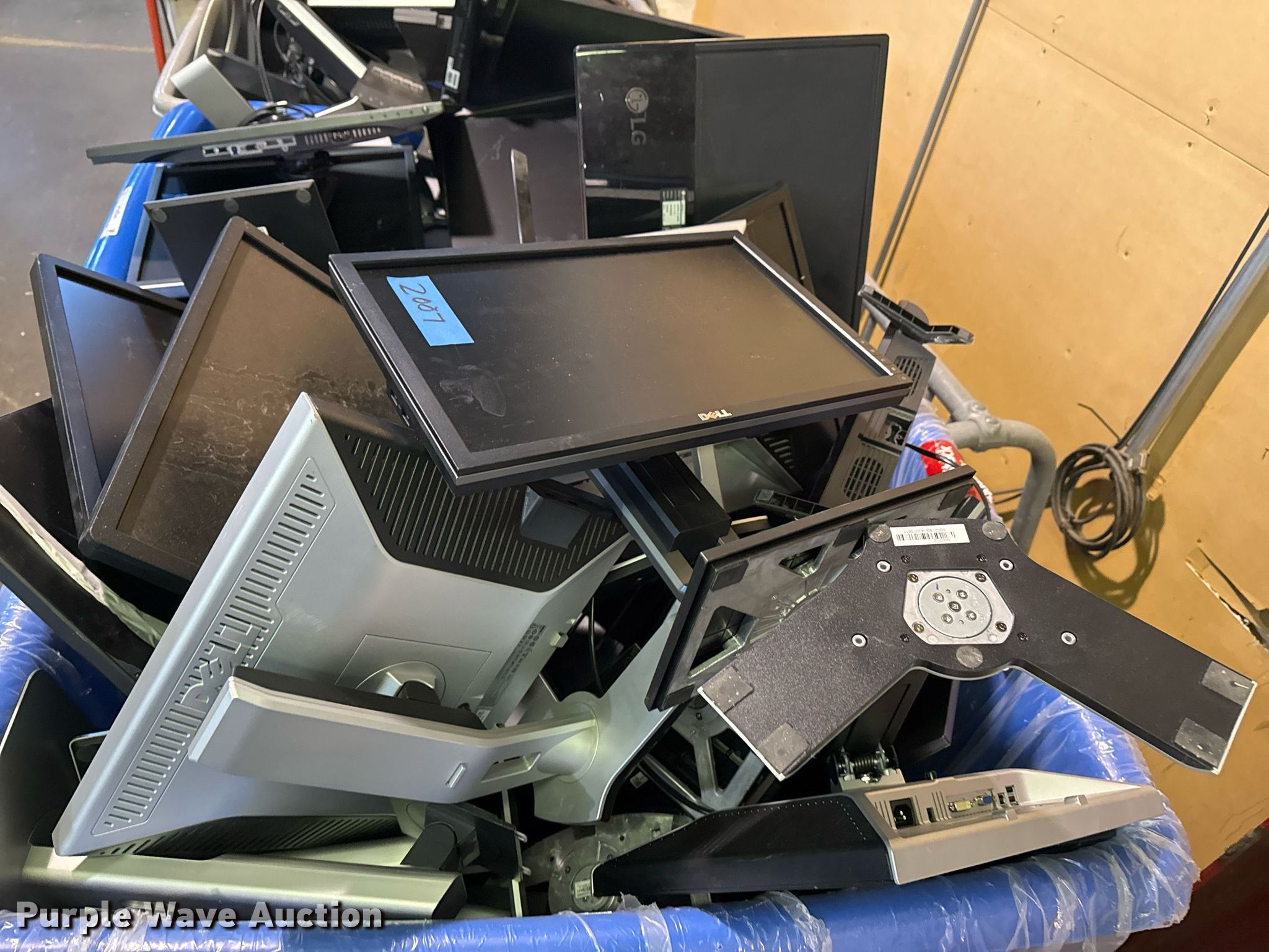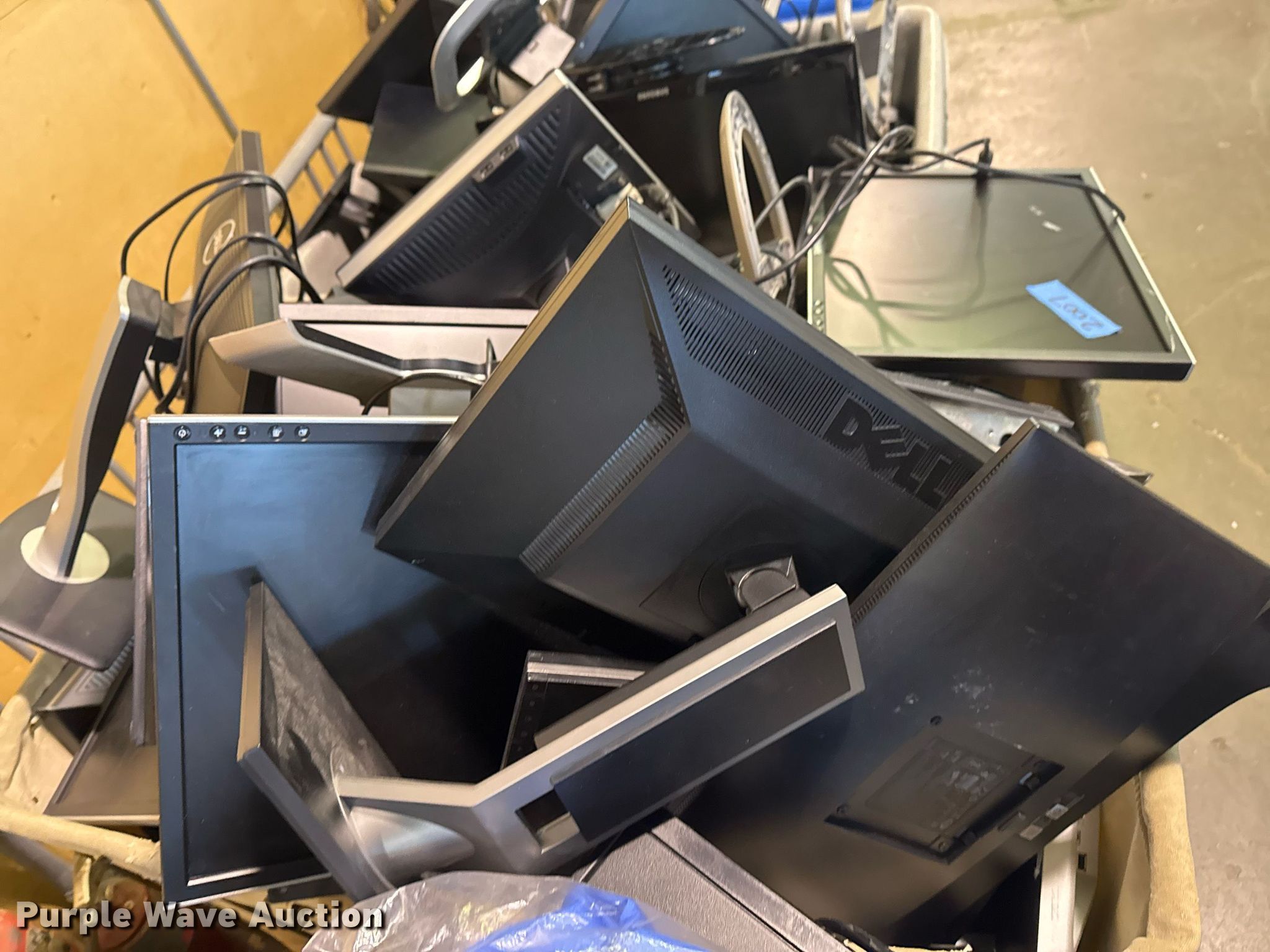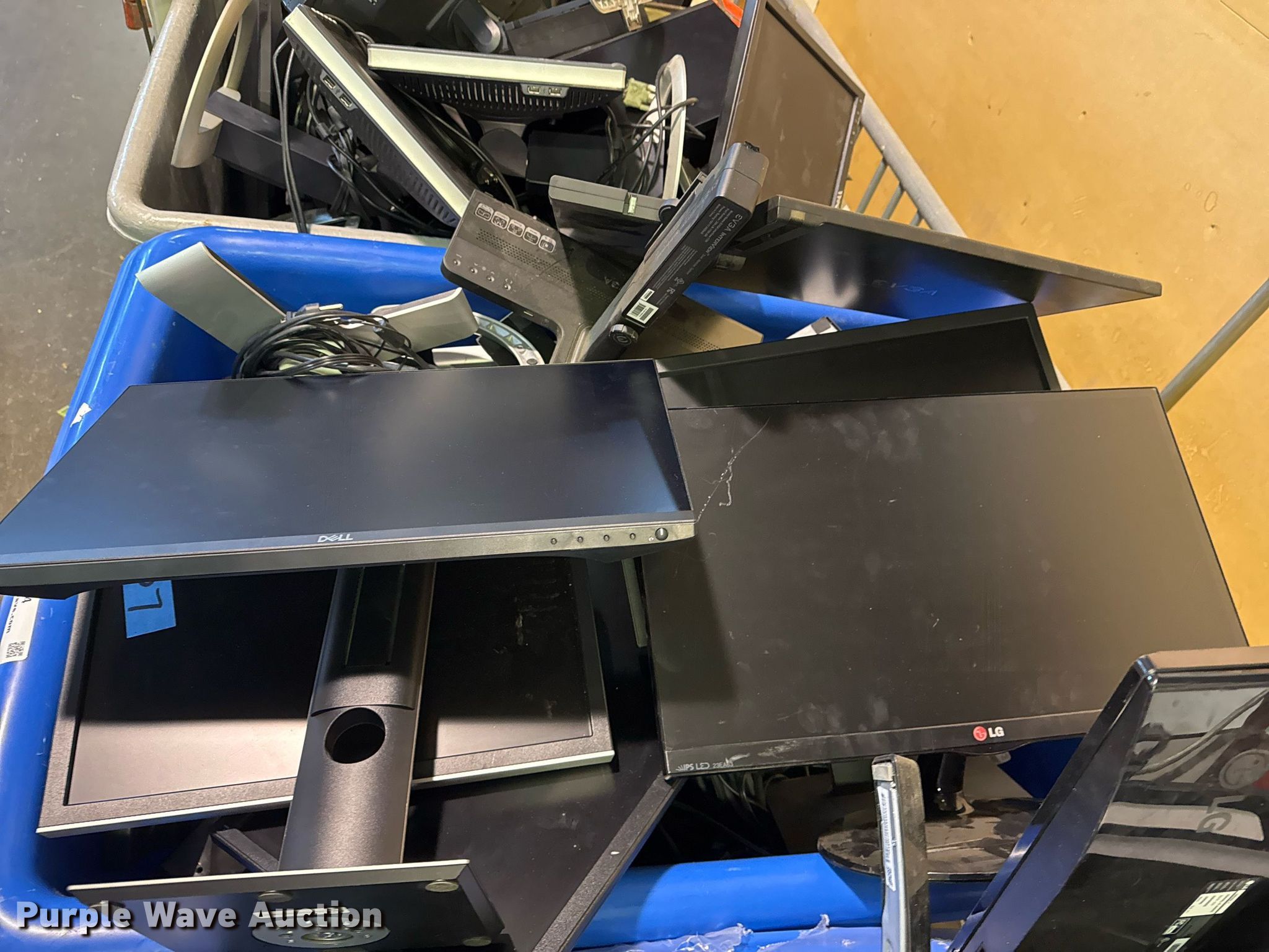Purple Wave is selling a used Electronics in Oklahoma. This item is a Electronics with the following: Unit #: 2015, Monitors, Stands, Cables missing, Totes not included