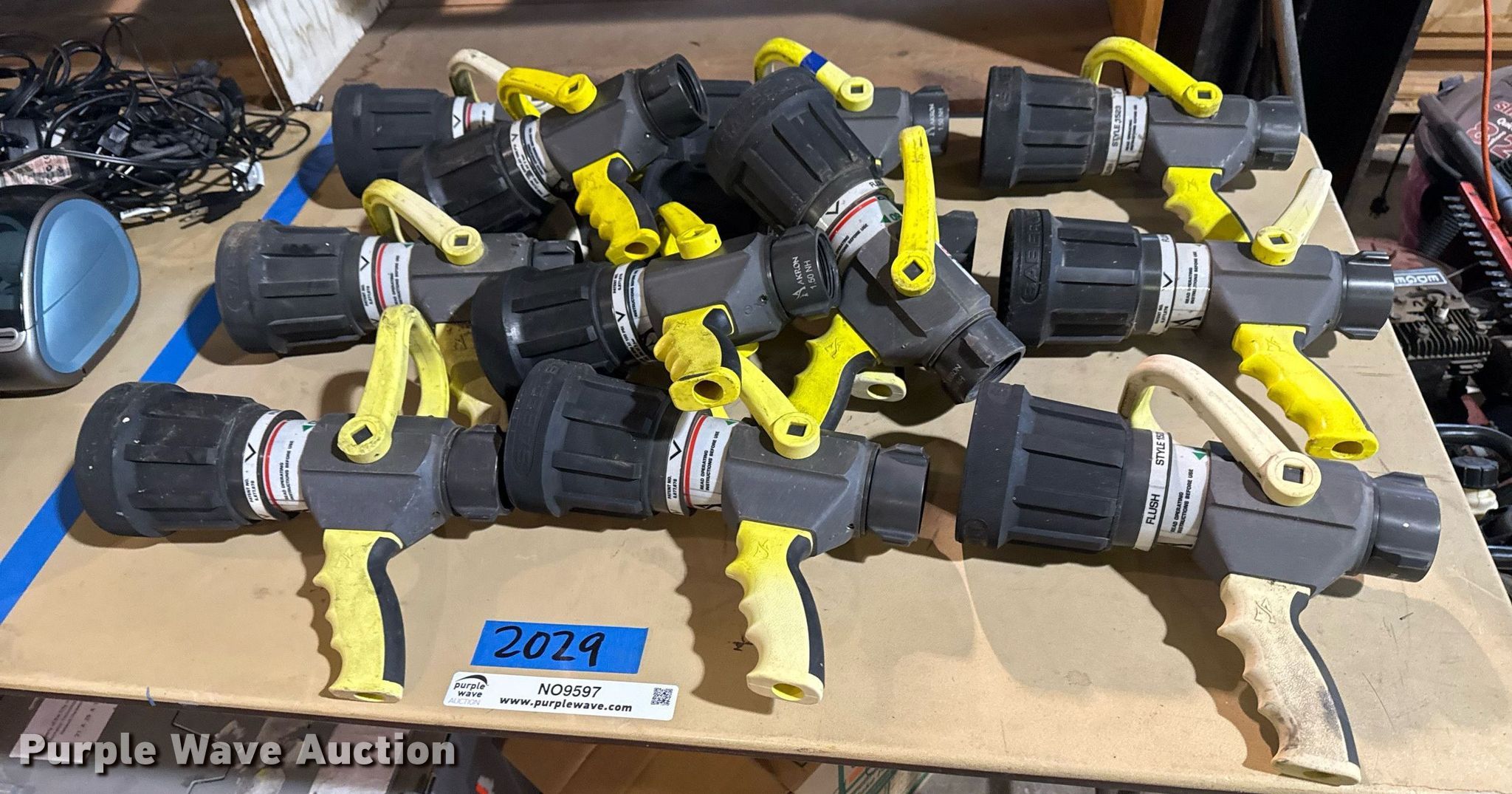Purple Wave is selling a used Lawn and Garden in Oklahoma. This item is a (12) Akron Brass 1.5" Saberjet nozzles with the following: Unit #: 2029
