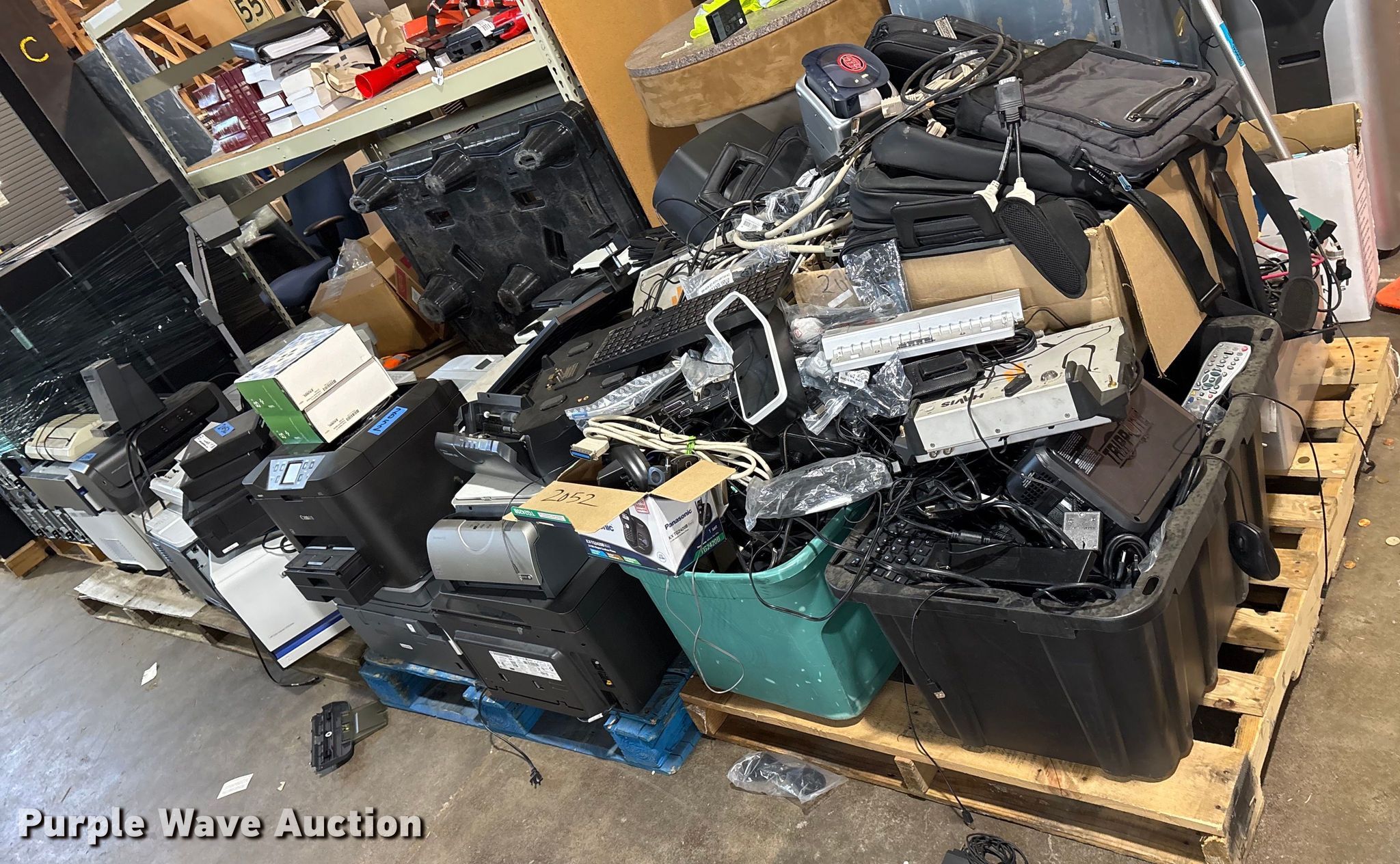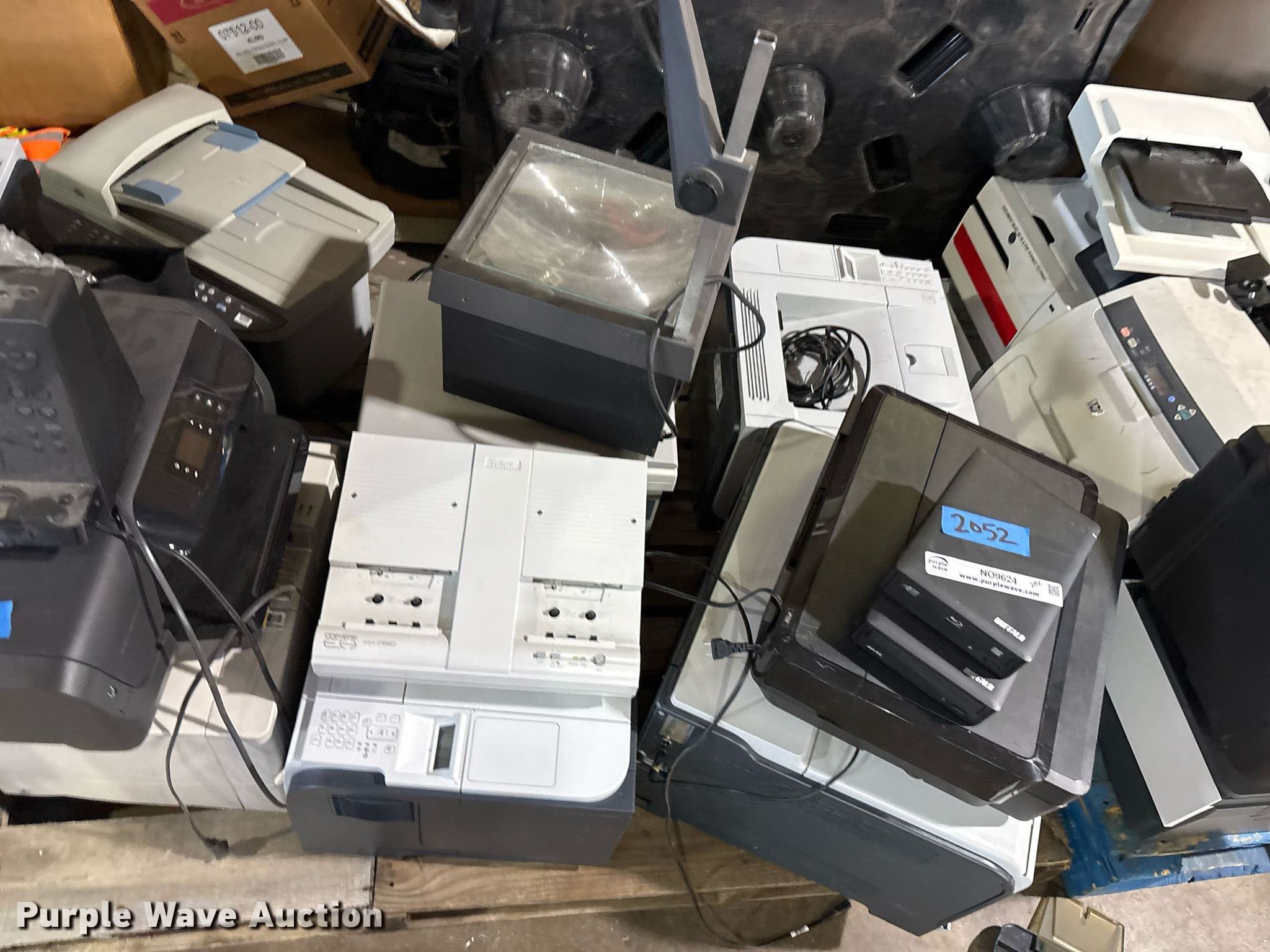 Purple Wave is selling a used Copy or Printing Machine in Oklahoma. This item is a Approximately 16 printers with the following: Unit #: 2052, Jet PTO 8710 printer, Envy 6055E printer, Laser Jet Pro 4000 printer, Office Jet Pro 9015E printer, Laserjet 3800DN printer, Jet Pro 400 printer, HP 4000 printer, HP 3030 printer, HP P3015 printer, HP CP3525DN, Cannon printers, Keyboards, Mice, Cabling, Computer bags