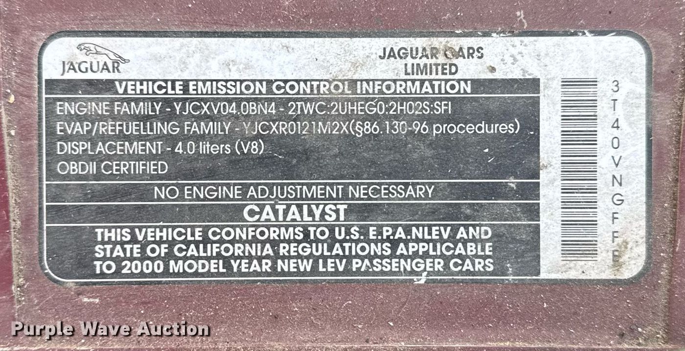 Purple Wave is selling a used Passenger Vehicle in Oklahoma. This item is a 2000 Jaguar XK8 convertible with the following: Miles: 99,065 on odometer, VIN: SAJJA42C5YNA08341, Unit #: 503