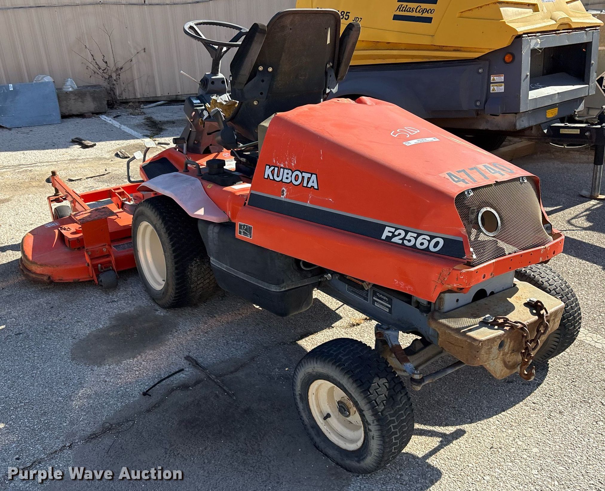 Purple Wave is selling a used Commercial Turf Mower in Oklahoma. This item is a Kubota F2560E lawn mower with the following: Hours: 1,350 on meter, Cutting width: 72", Serial: 81319, Unit #: 520