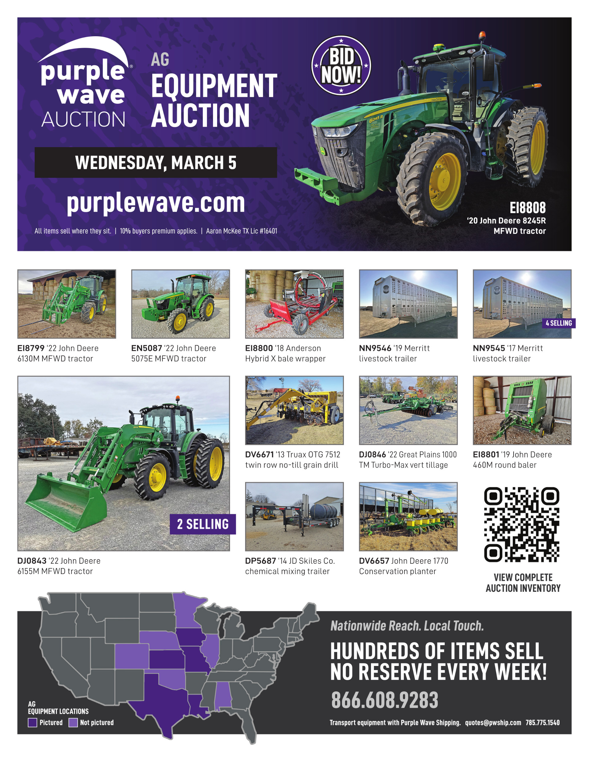 This auction is conducted by Purple Wave, Inc., whose home office is 825 Levee Drive, Manhattan, Kansas. Aaron McKee, Texas auctioneer license # 16401, operates Purple Wave, Inc. Complaints against us may be directed to the Texas Department of Licensing and Regulation, P.O. Box 12157, Austin, Texas 78711, (512) 463-6599. For additional required information, see the attached document.