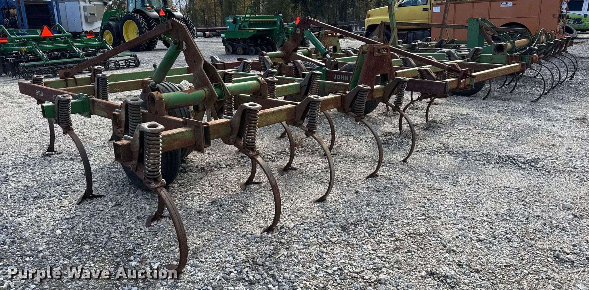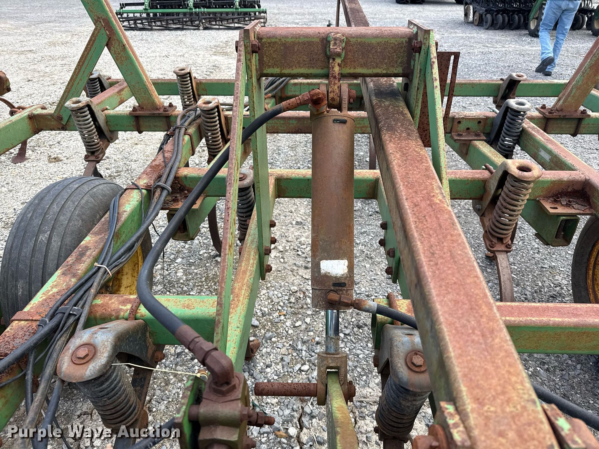 John Deere 980 field cultivator. Overall width: 30', Serial: N00980X011401. Features Shanks: 56, Operation Hydraulic lift, Hydraulic fold, Walking tandem axle, Attachments Transport lights. Tires Tire size: 9.5L-15. Notes Lift cylinders removed but included. Directional Service South, LLC. Sulphur, LA 70663