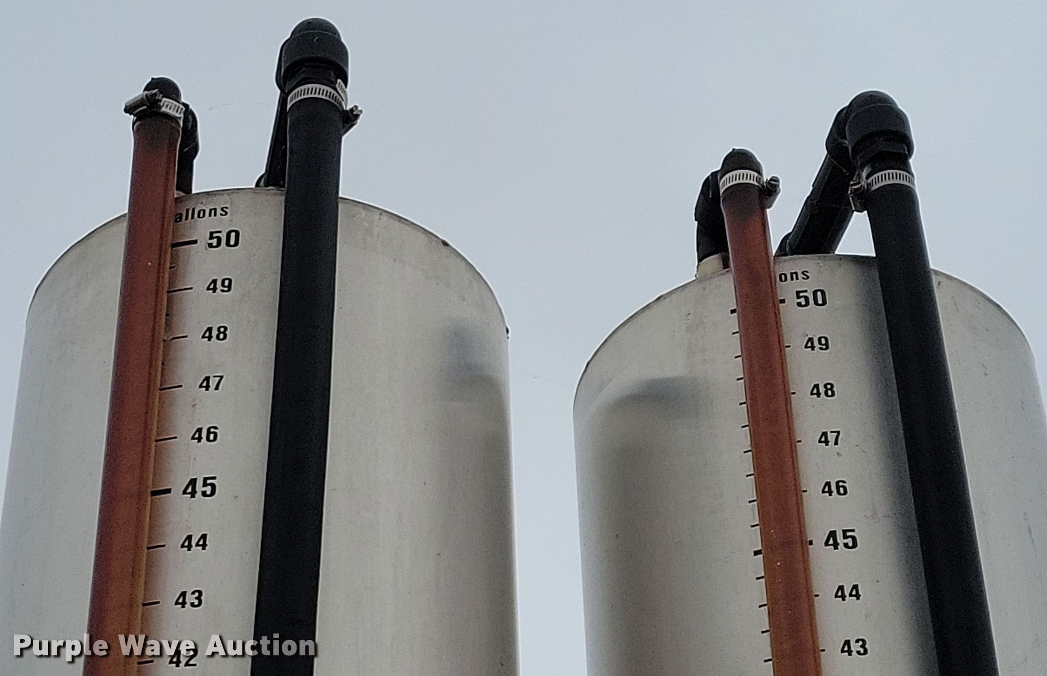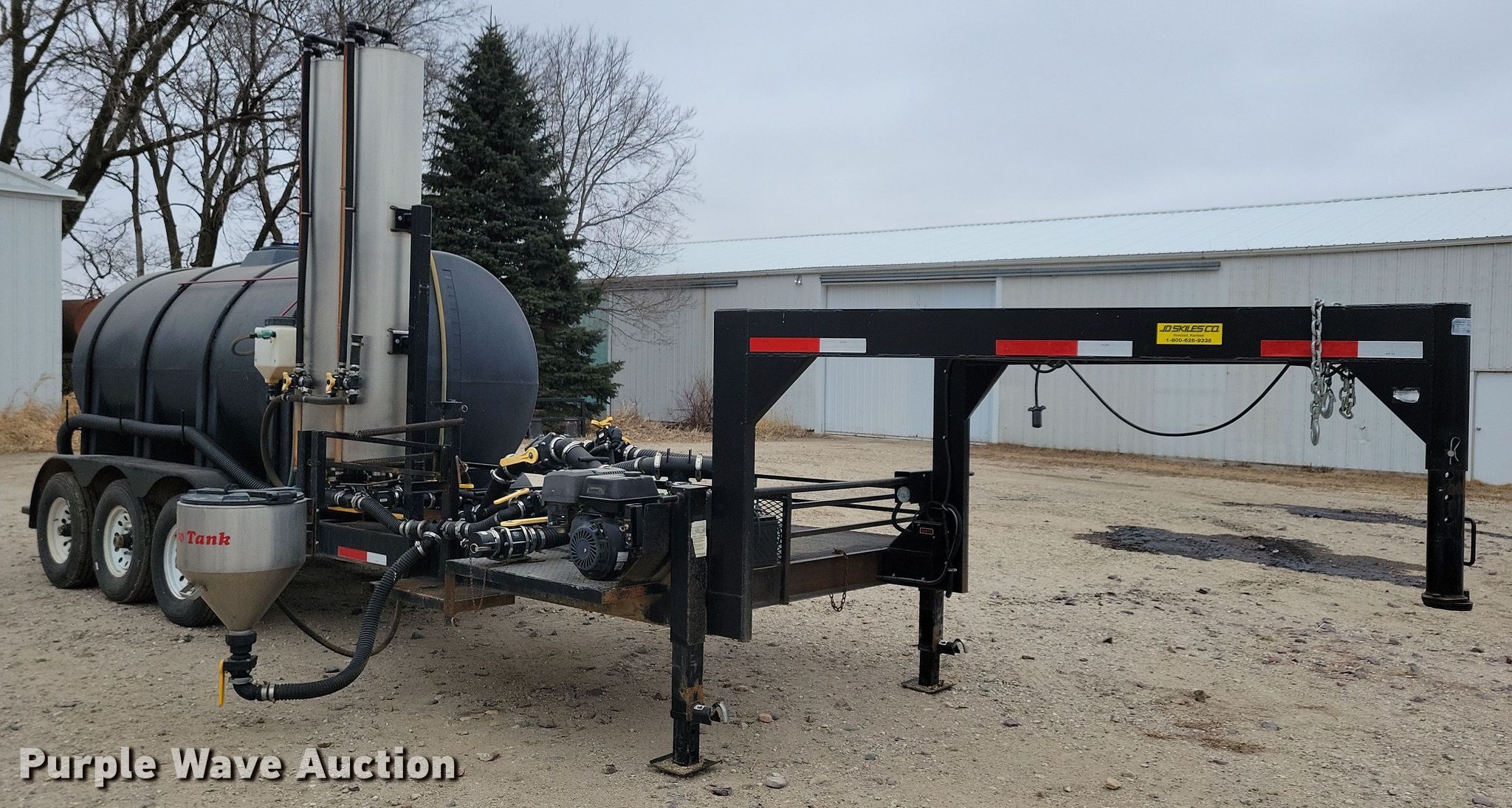 2014 JD Skiles Co. chemical mixing trailer. VIN: NET1193545. Engine Cylinders: 1, Fuel type: Gas. Features Hitch: Gooseneck, Water tank Capacity: 1,300 gallons, Inductor tank Capacity: 15 gallons, (2) chemical suction tanks Capacity: 50 gallons. Chassis Landing gear: Dual, Suspension: Spring, Axles: Triple. Tires Size: ST235/80R16. Iowa title. Title distribution may be delayed up to 14 days from verification of funds. George, IA 51237