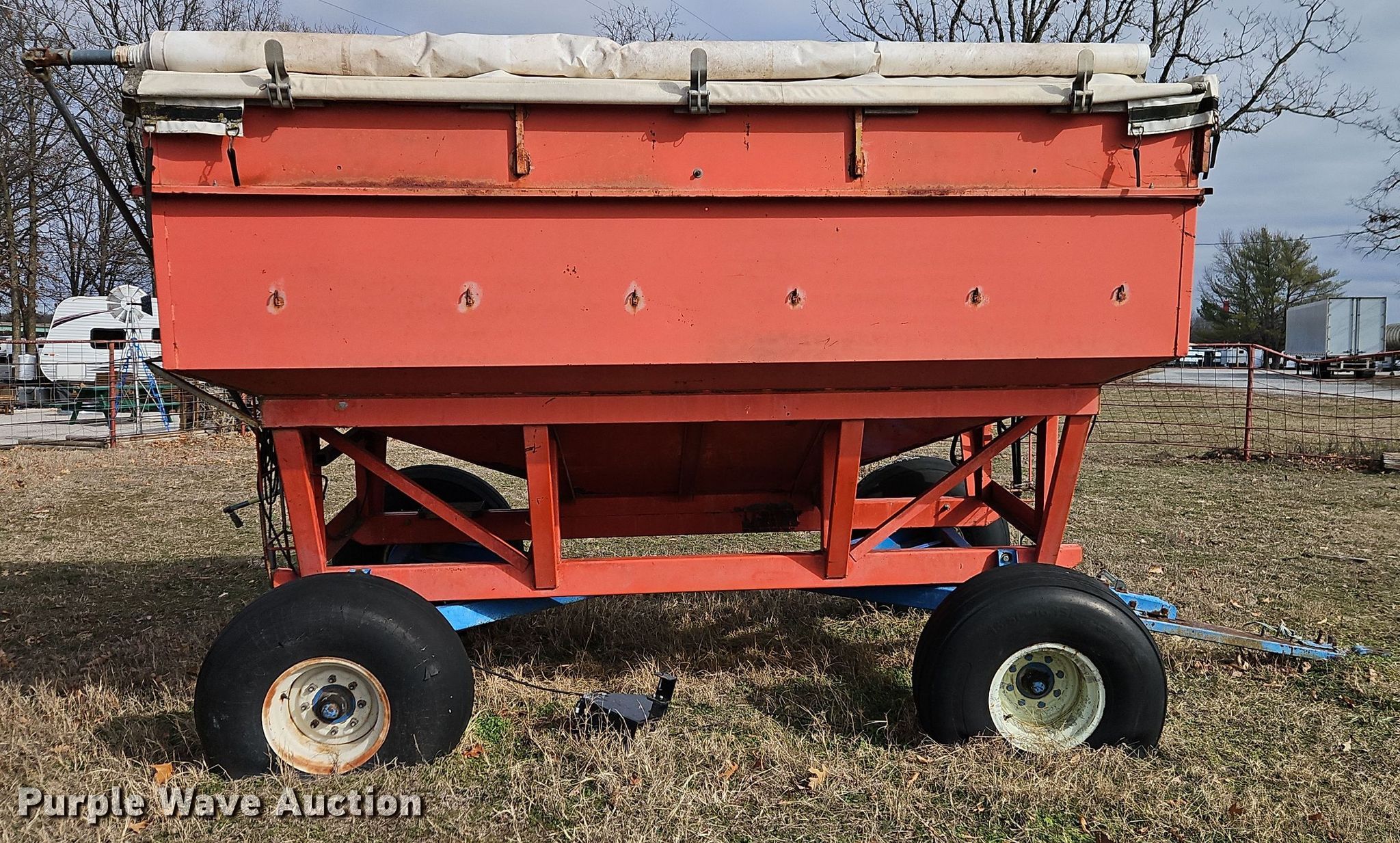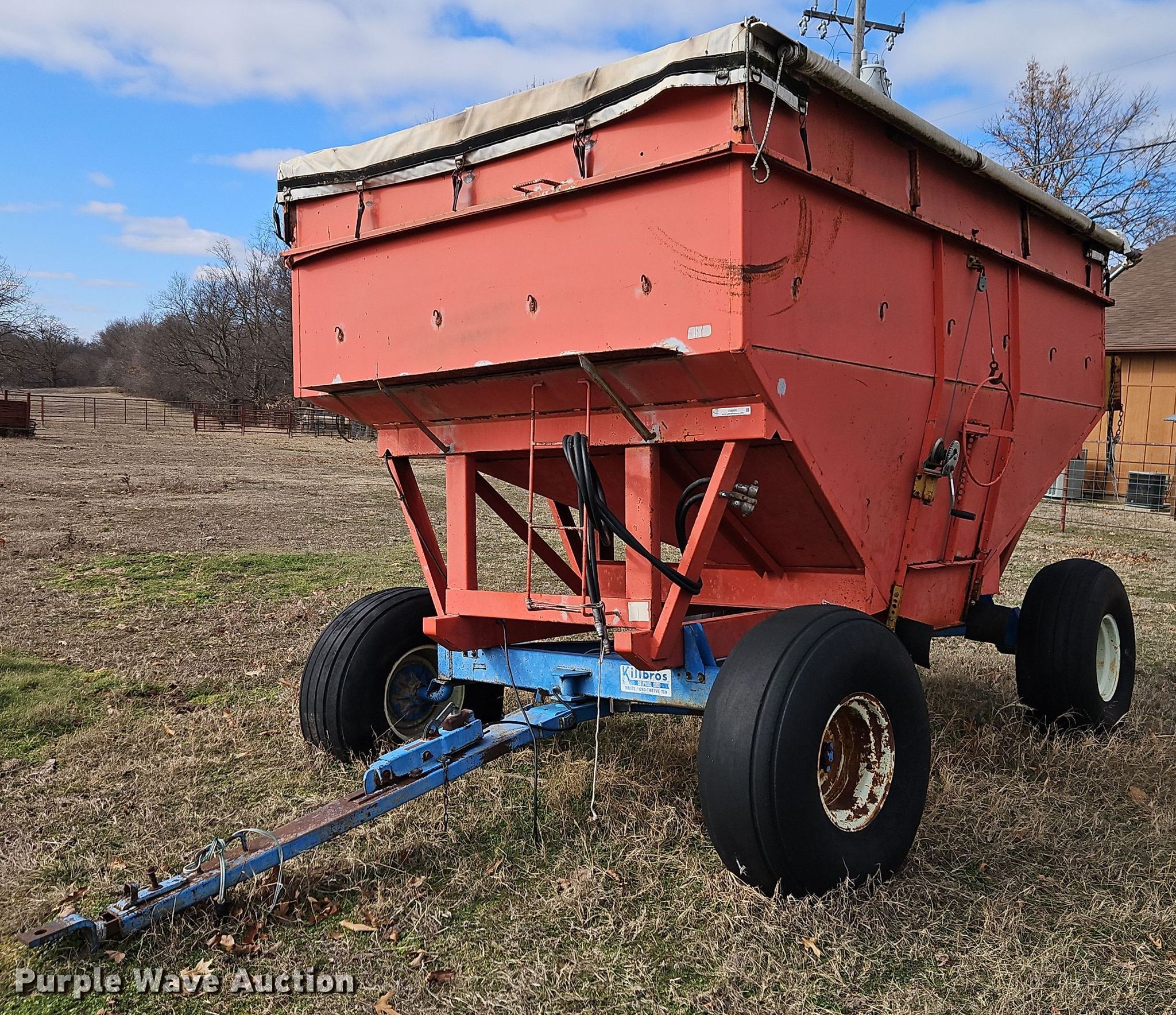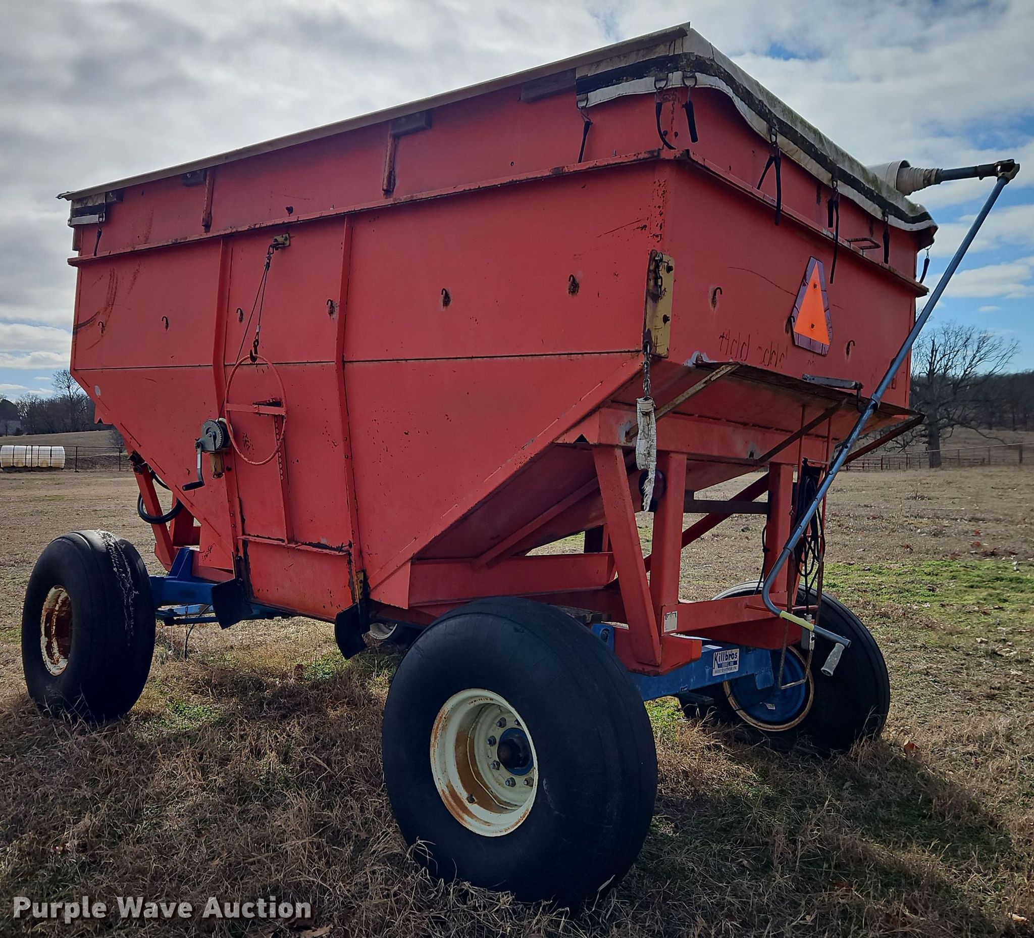 Purple Wave is selling a used Grain Cart or Gravity Wagon in Missouri. This item is a Killbros 1280 gravity wagon with the following: Capacity: 12 tons, Shut-off gate: Manual, Roll tarp