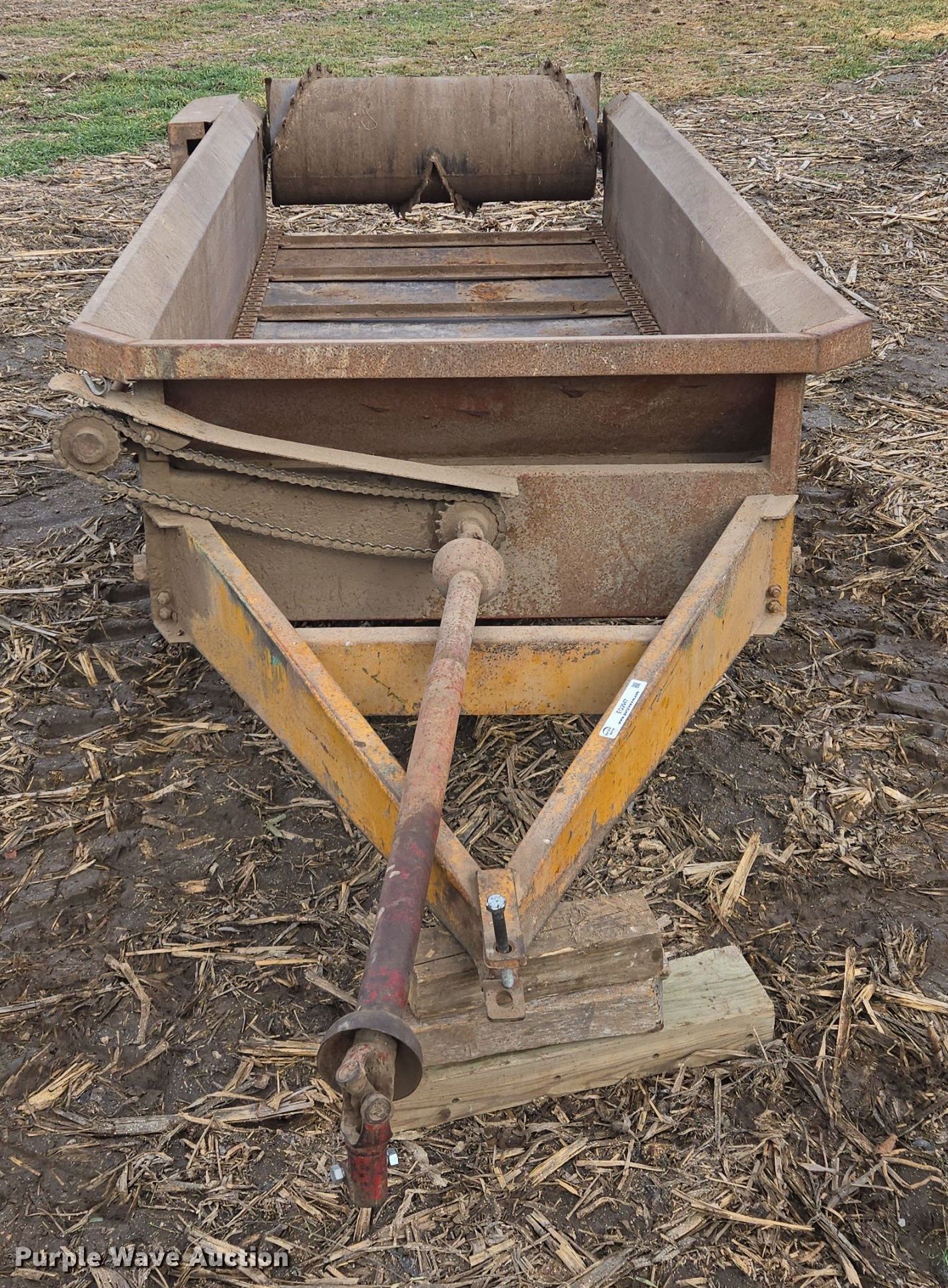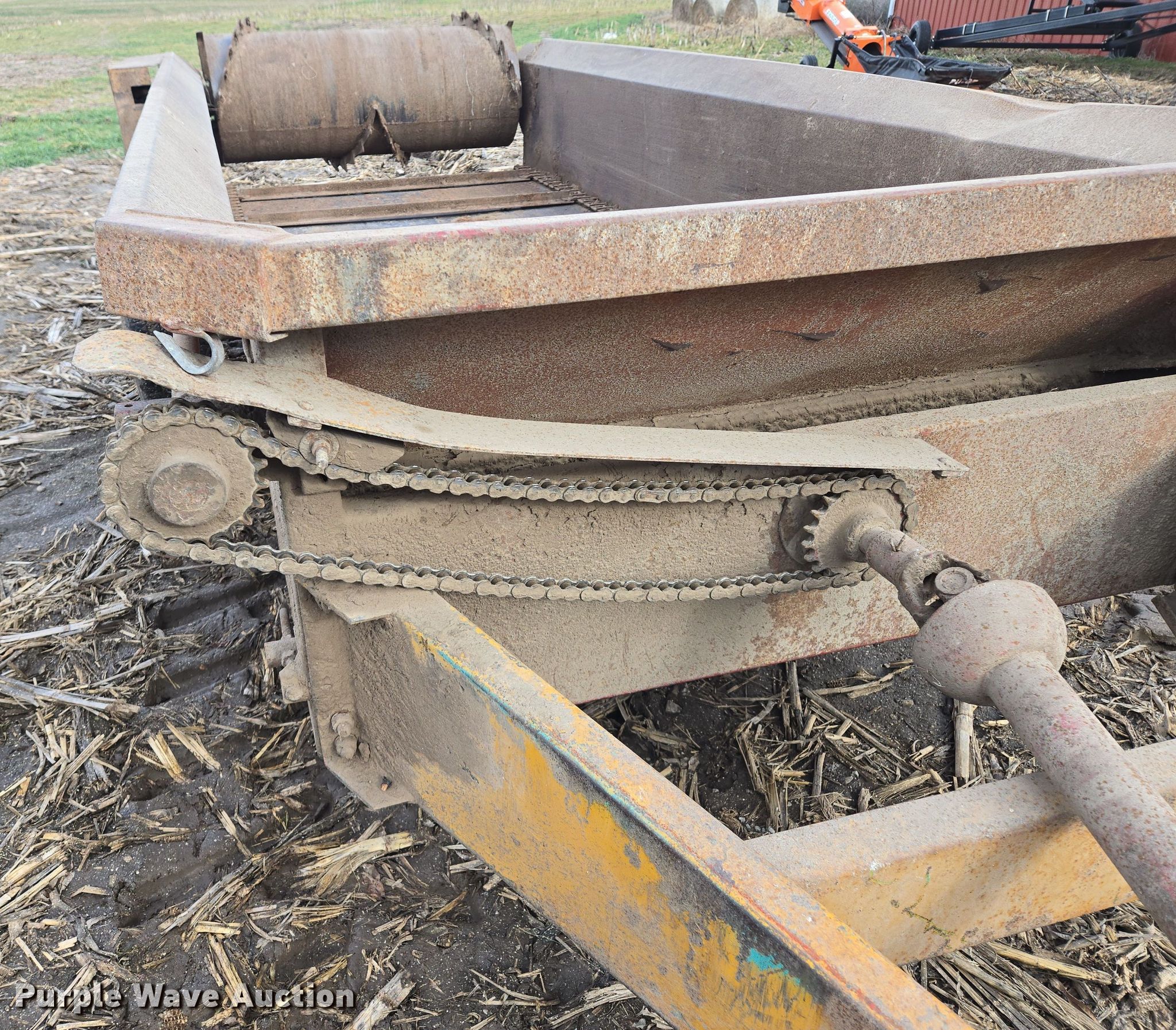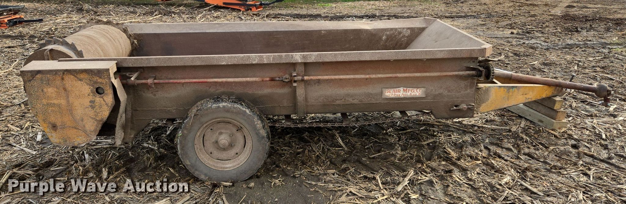 Purple Wave is selling a used Manure Spreader in Missouri. This item is a Blair manure spreader with the following: 15' L x 72" W, Side height: 18", Chain driven floor, PTO: 540, Box: 9' L x 4' W, Spreader width: 45"