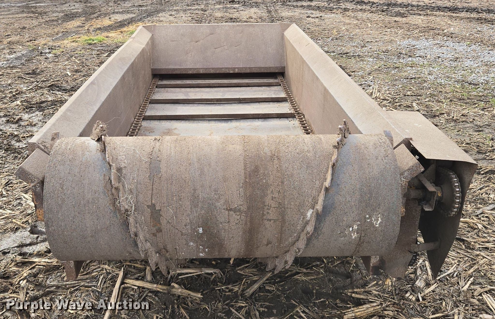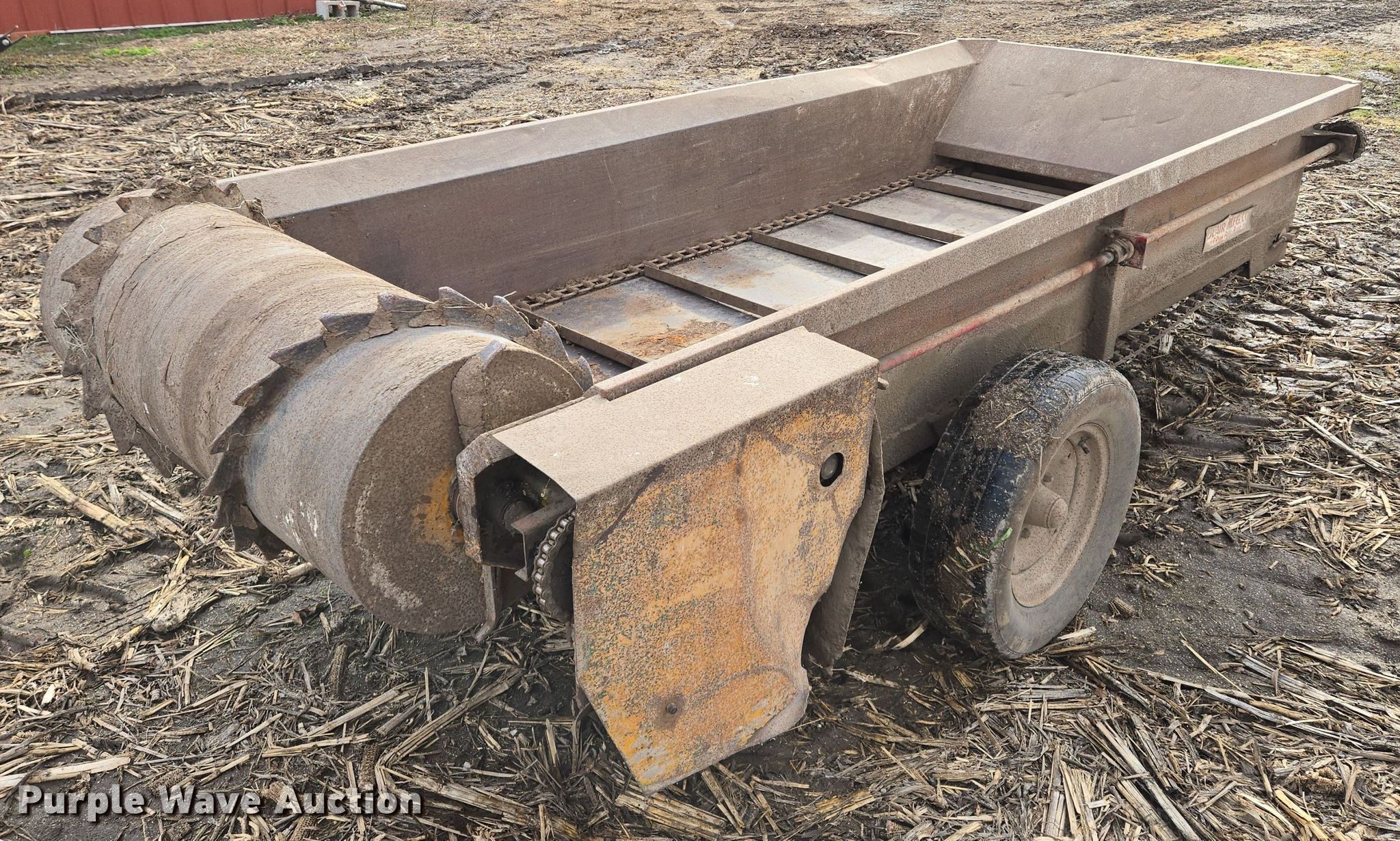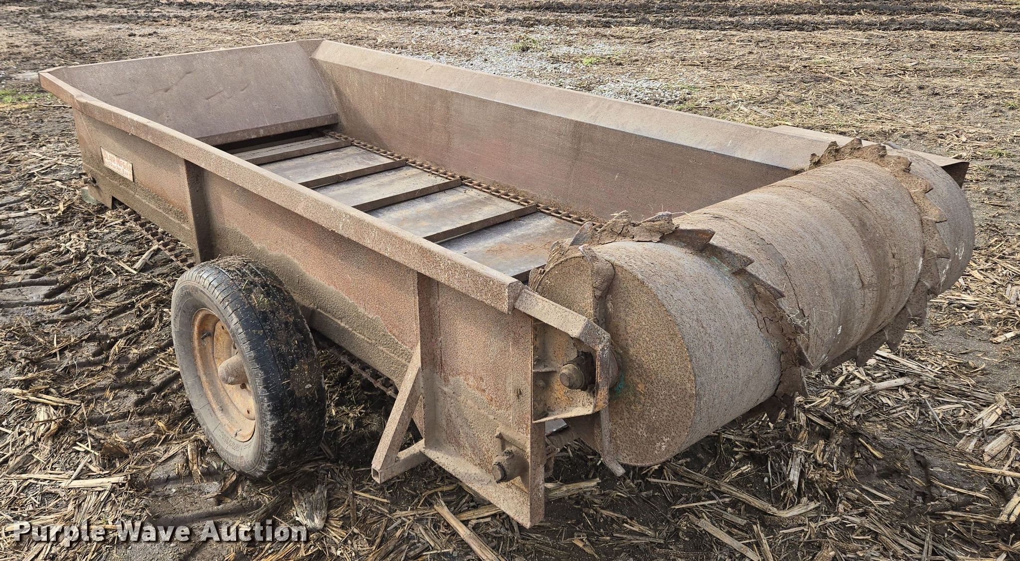 Purple Wave is selling a used Manure Spreader in Missouri. This item is a Blair manure spreader with the following: 15' L x 72" W, Side height: 18", Chain driven floor, PTO: 540, Box: 9' L x 4' W, Spreader width: 45"
