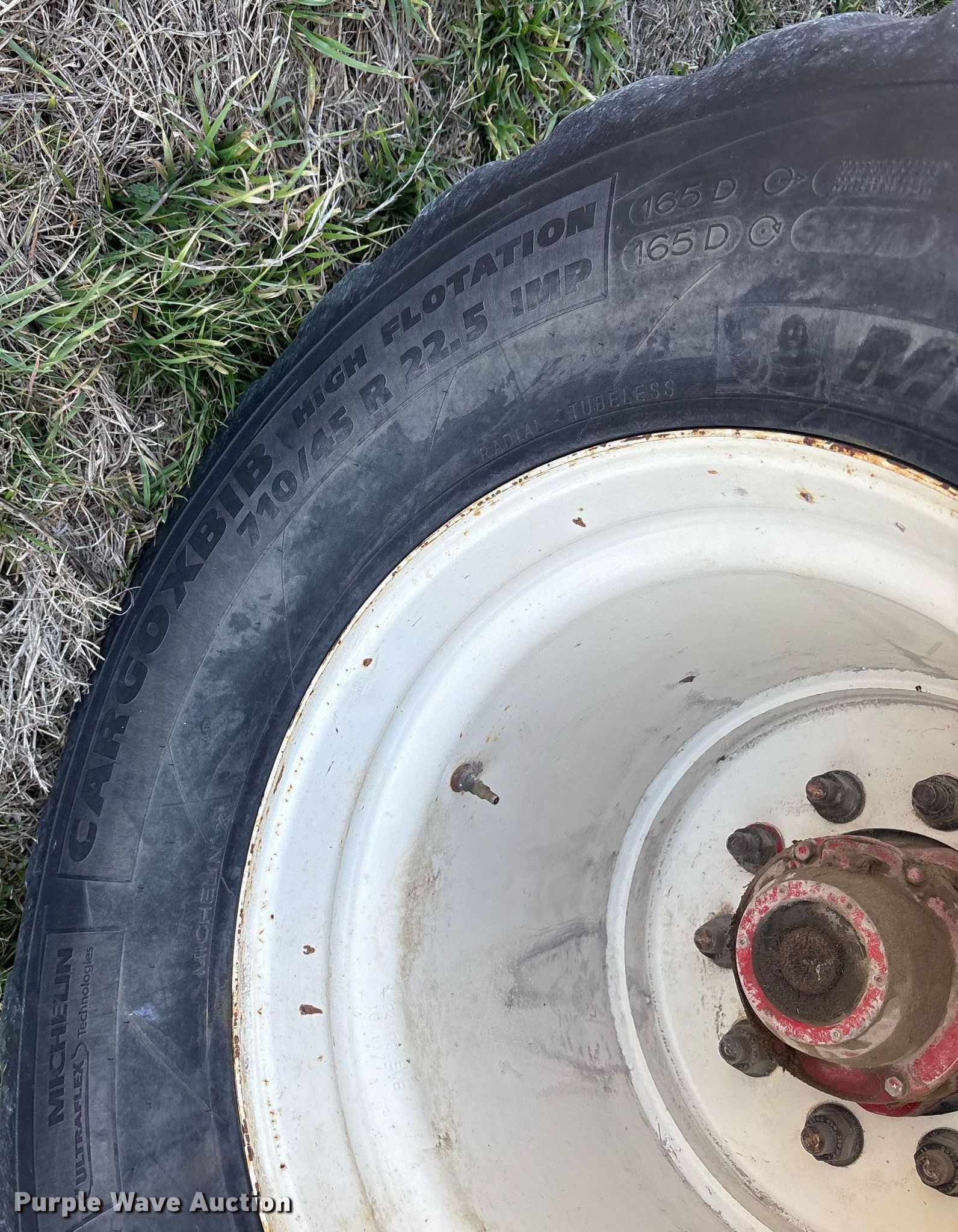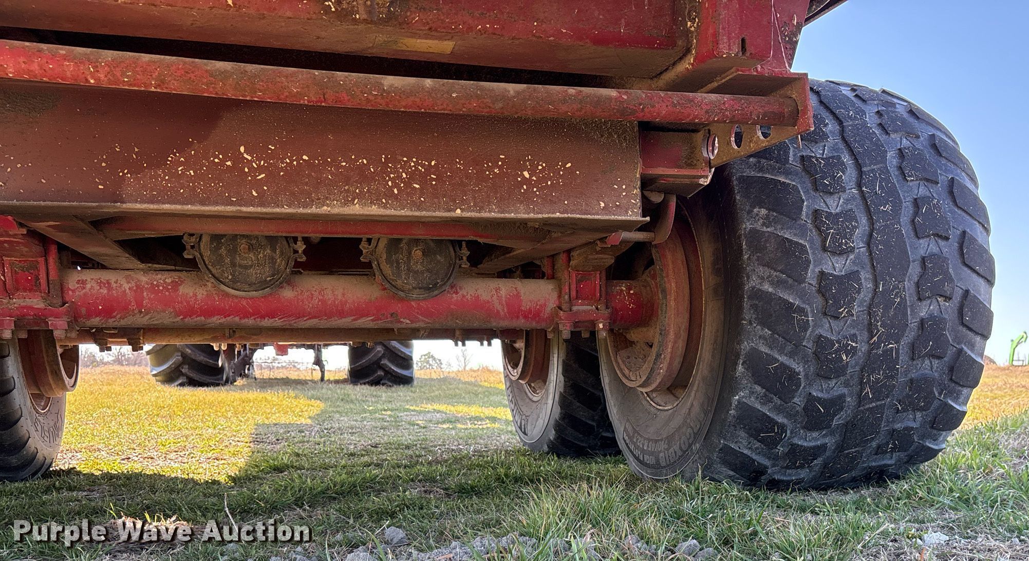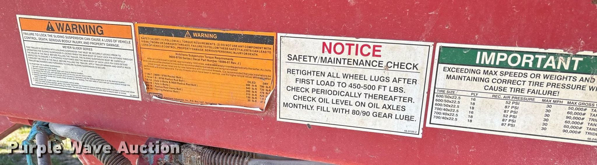 Meyer 9524 manure spreader. Hours: Unknown, Serial: 1495204. Features 36' 6" L x 8' W, Side height: 7' 3", Chain driven floor, Rear beaters: Horizontal Quantity: 2, Rear applicator: Disc, PTO: 1000, Scale Digi Star NT 460. Chassis Suspension: Spring, Axles: Tandem. Tires Size: 710/45R22.5. Notes Parts removed but included, Trailer not included. Brashear, TX 75420
