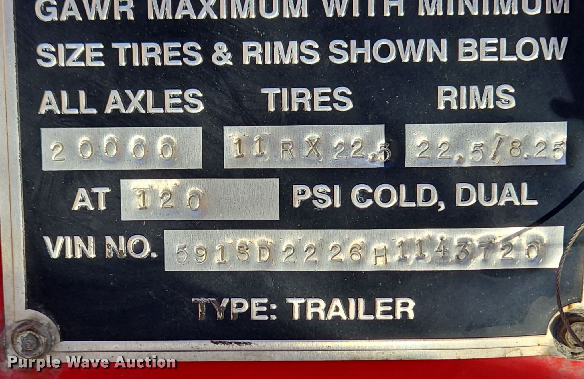 Purple Wave is selling a used End Dump Rock Trailer in Illinois. This item is a 2017 Ranco end dump trailer with the following: VIN: 591SD2226H1143720