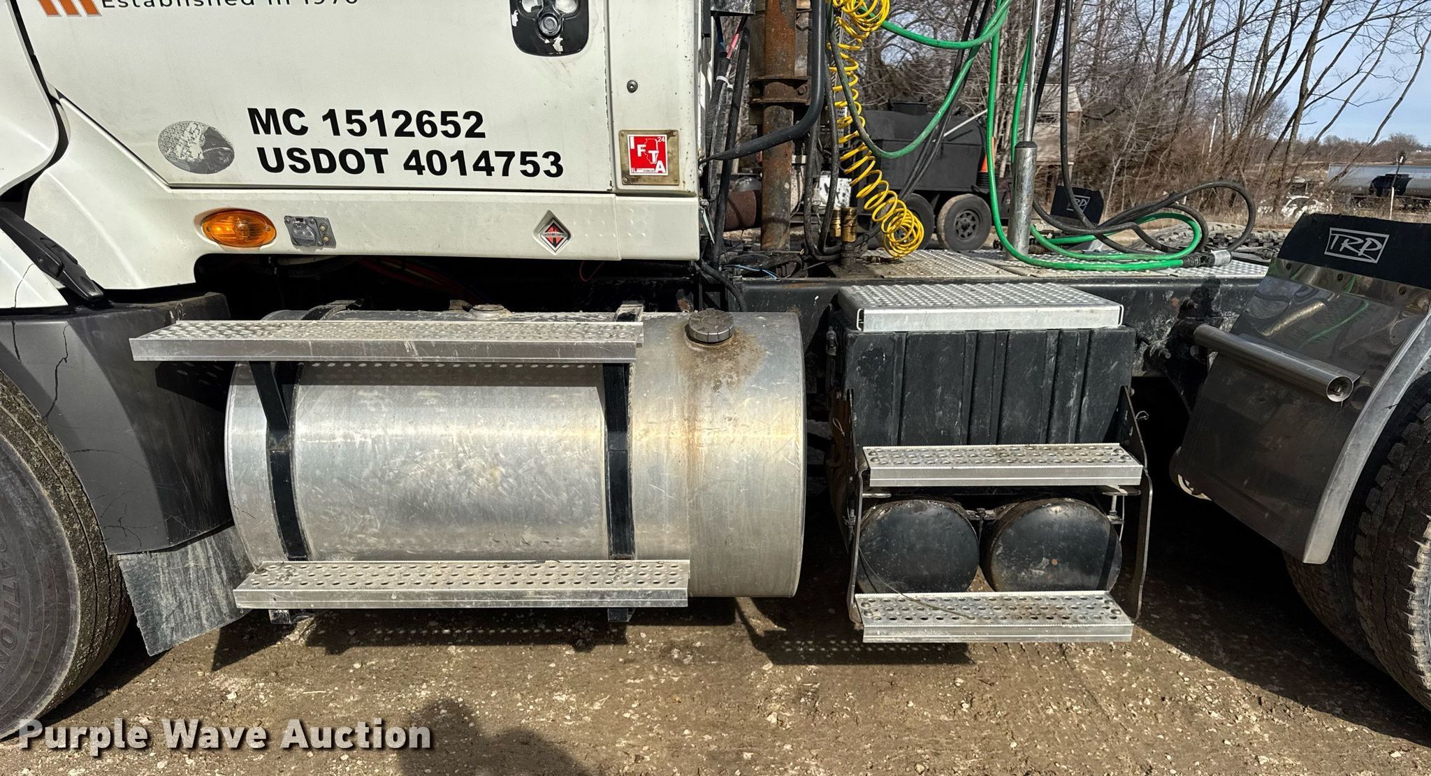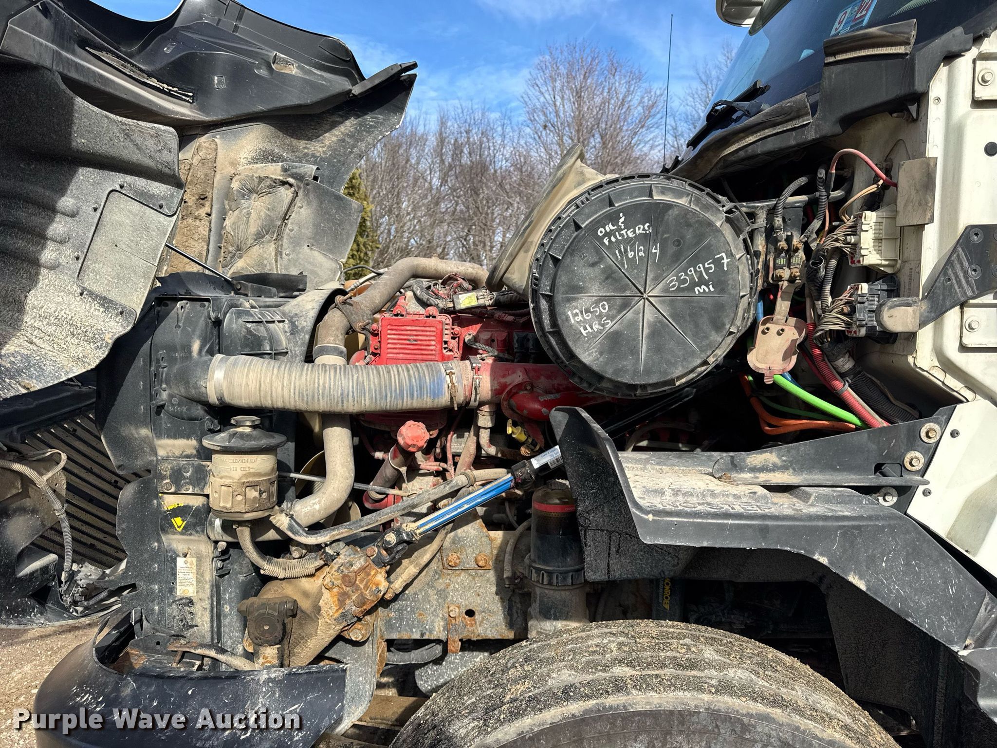 2010 International LF627 semi truck. Miles: 352,373 on odometer, Hours: 13,200 on meter, VIN: 2HSCUAPR8AC169955. Engine Cummins ISX450ST, Displacement: 14.9L, Cylinders: 6, Fuel type: Diesel, Engine brake. Transmission Eaton Fuller, Manual, Speed: 10. Chassis Axles: Tandem, Differential lock: Inter-axle, Suspension: Air Dump valves, Brakes: Air, PTO, Wet kit, GVWR: 52,350 lbs FAWR: 12,350 lbs, IAWR: 20,000 lbs, RAWR: 20,000 lbs. Interior AC, Heat, Heated mirrors, Power windows, Power locks, Cruise control, Air ride cab. Features Deck plate: Aluminum, Fifth wheel type: Air operated, Sliding, Fuel tank: Dual. Tires Size: 11R22.5. Notes Decals will be removed prior to auction, Dead battery. Illinois title. Title distribution may be delayed up to 14 days from verification of funds. Porter Brothers Asphalt. Rock Falls, IL 61081