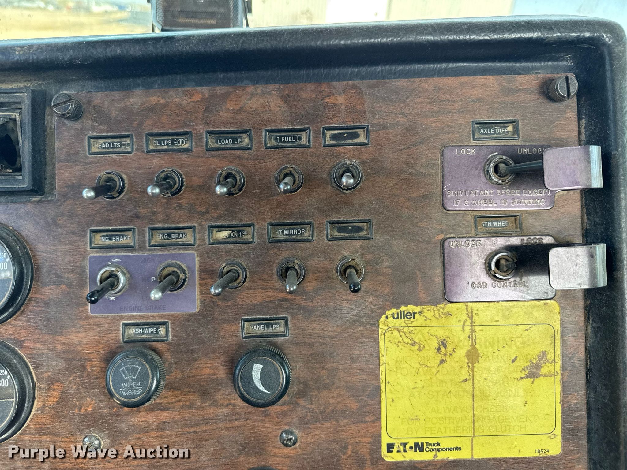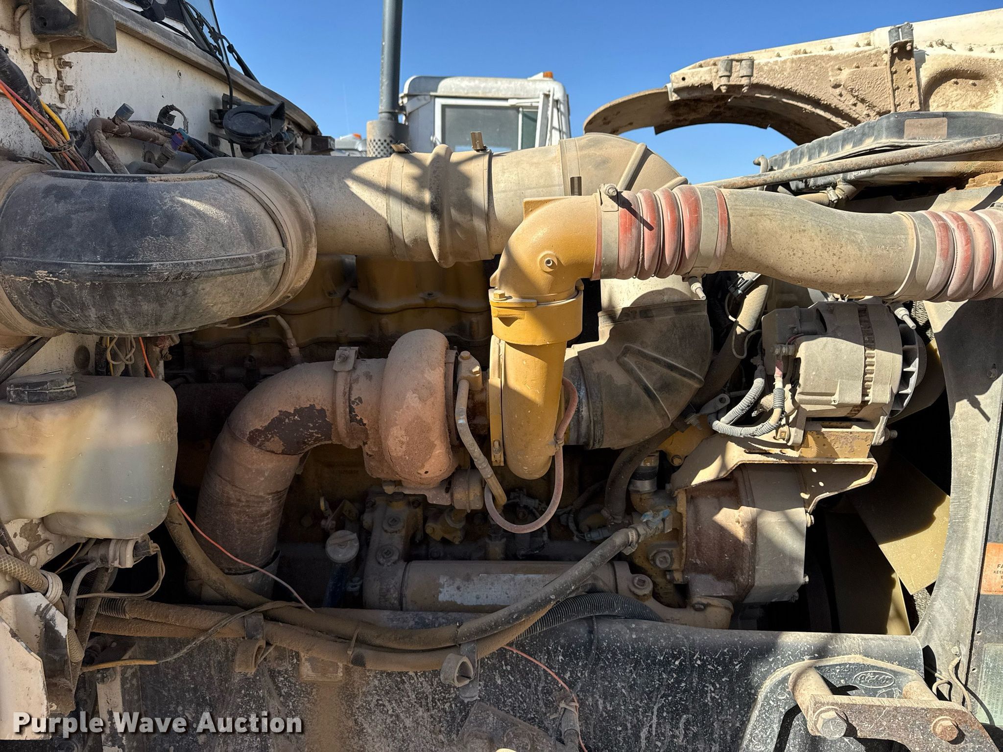 1998 Peterbilt 379 semi truck. Miles: 634,829 on odometer, VIN: 1XP5DB0X1WD453871, Unit #: 68. Engine Caterpillar 3406, Serial: 6TS25683, Displacement: 14.6L, Cylinders: 6, Fuel type: Diesel, Engine brake. Transmission Eaton Fuller, Manual, Speed: 8, plus 2. Chassis Axles: Tandem, Pusher axle, Differential lock: Inter-axle, Suspension: Spring over walking beam, Brakes: Air, GVWR: 58,860 lbs FAWR: 12,860 lbs, IAWR: 23,000 lbs, RAWR: 23,000 lbs. Interior AC, Heat, Heated mirrors, Cruise control. Features Deck plate: Steel, Fifth wheel type: Air operated, Sliding, Rolling tailboard, Fuel tank: Dual. Tires Size: 11R24.5, Lift axle: 295/75R22.5. Notes Windshield chipped or cracked, Non-operational unit Unit must be towed or hauled. Texas title. Title distribution may be delayed up to 14 days from verification of funds. Reinert Hay Company. Hereford, TX 79045