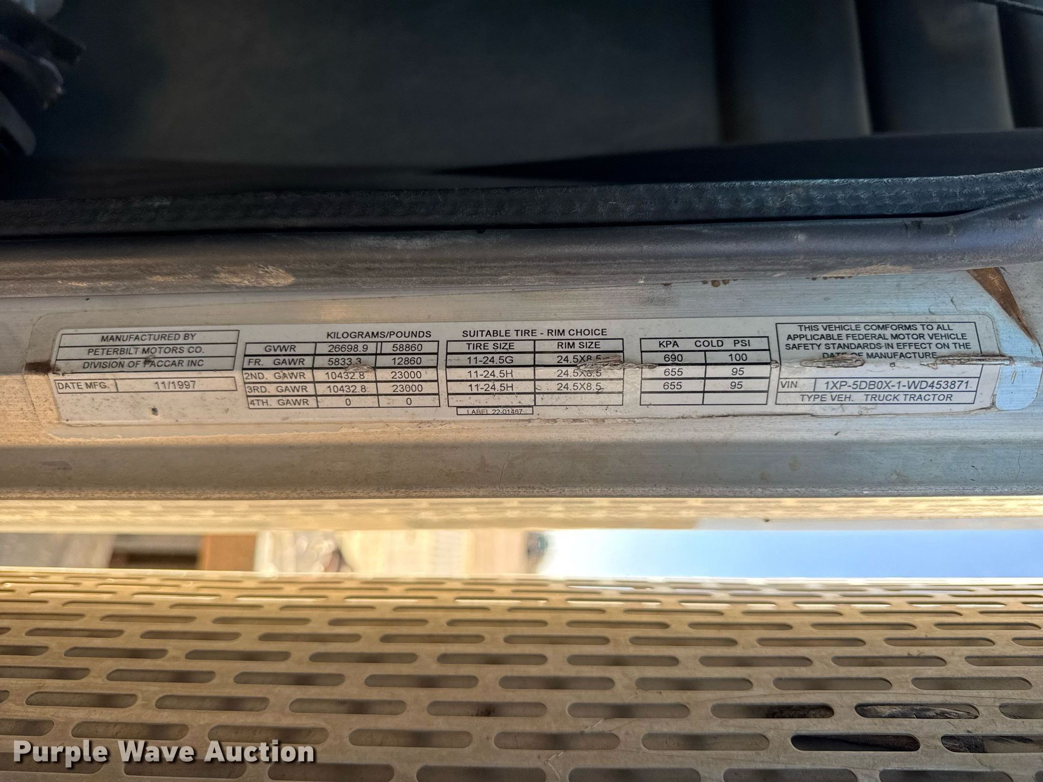 Purple Wave is selling a used Truck Tractor in Texas. This item is a 1998 Peterbilt 379 semi truck with the following: Miles: 634,829 on odometer, VIN: 1XP5DB0X1WD453871, Unit #: 68