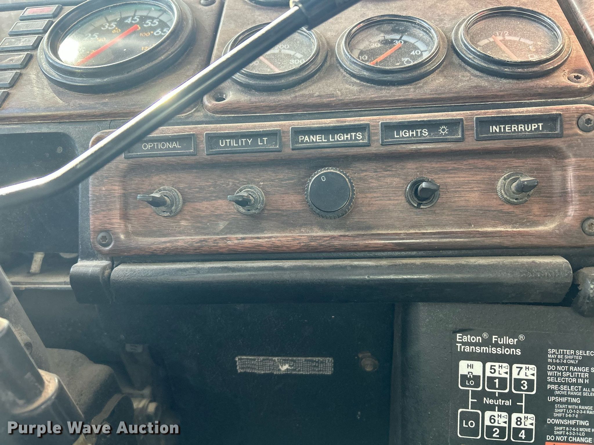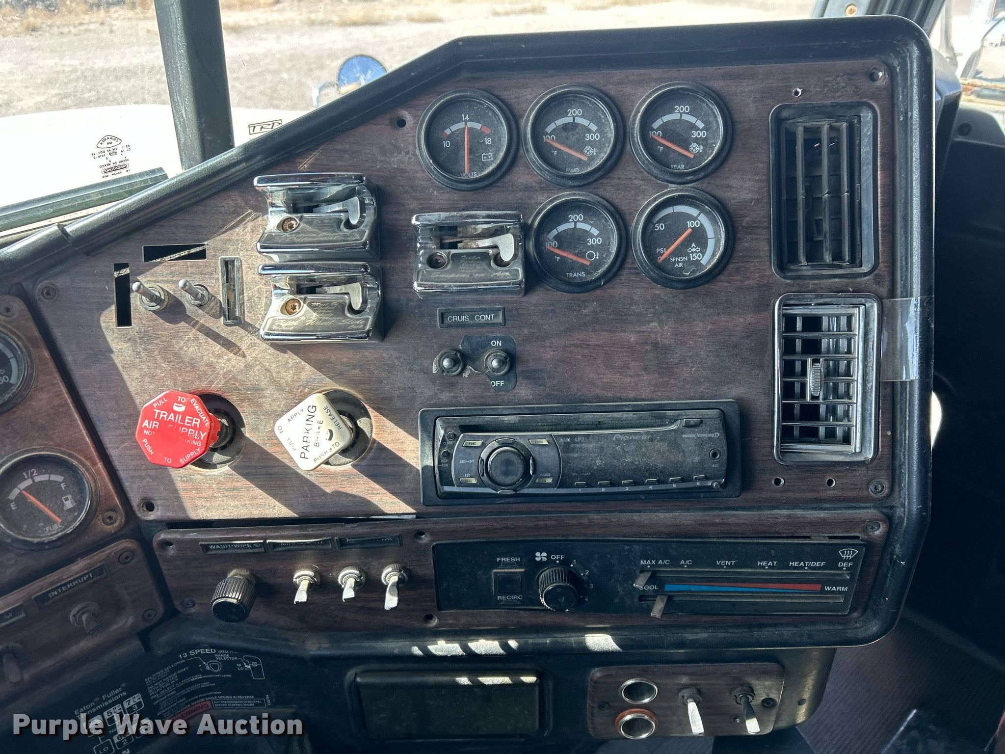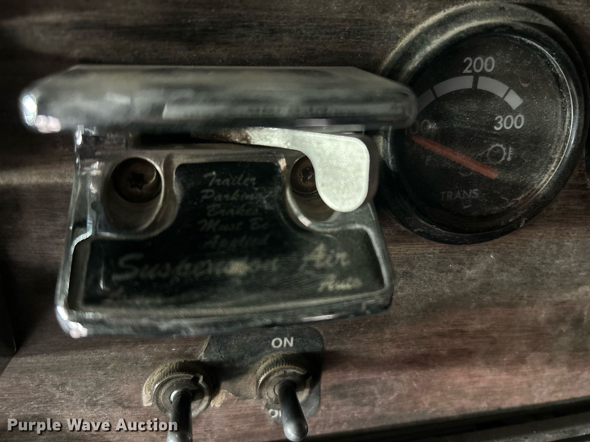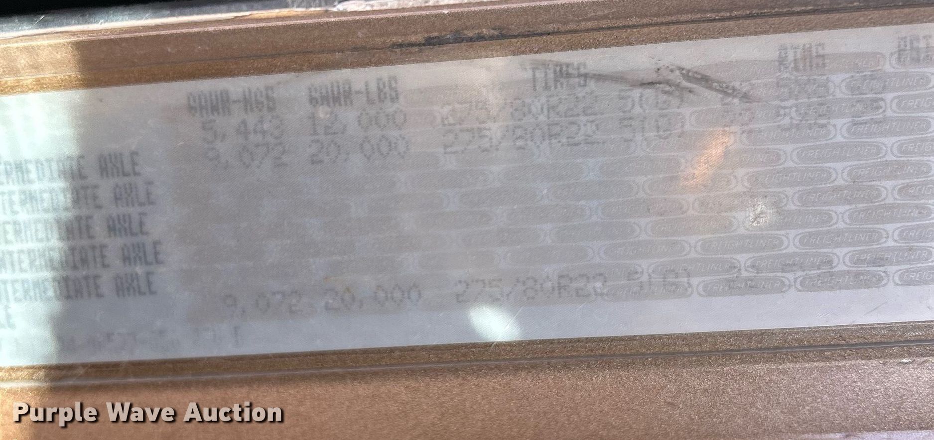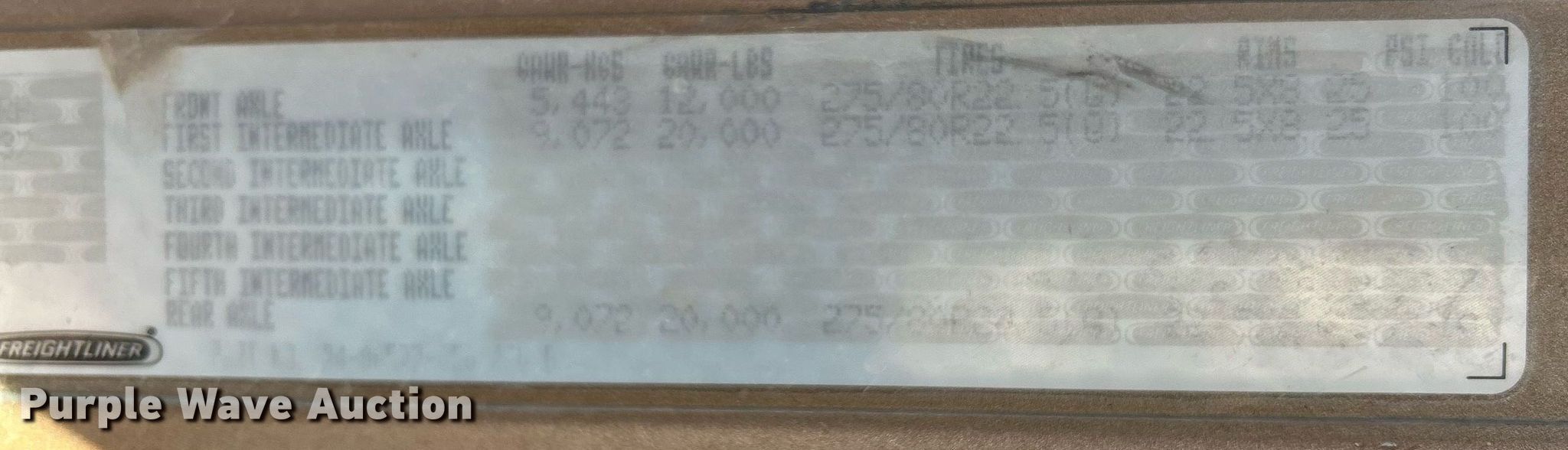 2000 Freightliner FLD120 semi truck. Miles: 158,415 on odometer, VIN: 1FUPCDZB6YLA78337. Engine Cummins N14, Cylinders: 6, Fuel type: Diesel, Engine brake. Transmission Eaton Fuller, Manual, Speed: 13. Chassis Axles: Tandem, Differential lock: Inter-axle, Suspension: Air Dump valves, Brakes: Air, GVWR: 52,000 lbs FAWR: 12,000 lbs, IAWR: 20,000 lbs, RAWR: 20,000 lbs, Wheelbase: 265". Interior AC, Heat, Heated mirrors, Power windows, Power locks, Cruise control, Air ride cab, Sleeper Sleeper length: 60", Beds: Double bunk, Rear climate control. Features Deck plate: Aluminum, Fifth wheel type: Air operated, Sliding, Fuel tank: Dual. Tires Size: 11R24.5. Lender owned. Item condition and history unknown. Texas title. Title distribution may be delayed up to 30 days from verification of funds. Maverick Bank. Alpine, TX 79830