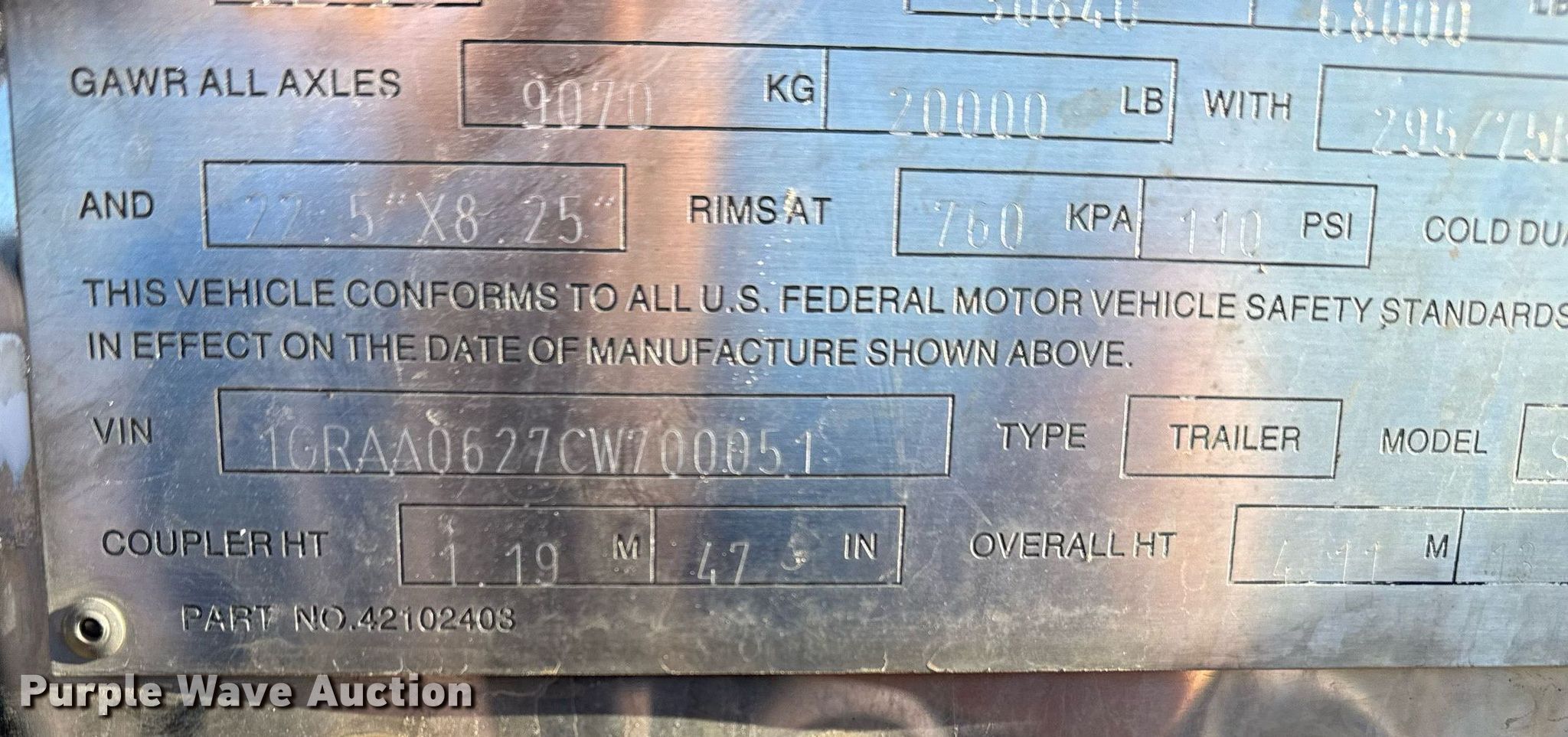 Purple Wave is selling a used Refrigerated Van Trailer in Oklahoma. This item is a 2012 Great Dane SUP-1114-31053 refrigerated van trailer with the following: VIN: 1GRAA0627CW700051