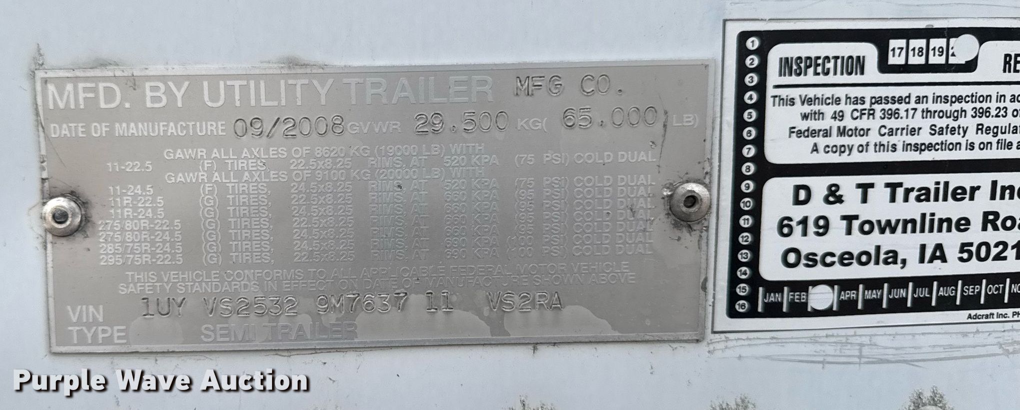 Purple Wave is selling a used Refrigerated Van Trailer in Iowa. This item is a 2009 Utility trailer 3000R refrigerated van trailer with the following: VIN: 1UYVS25329M763711