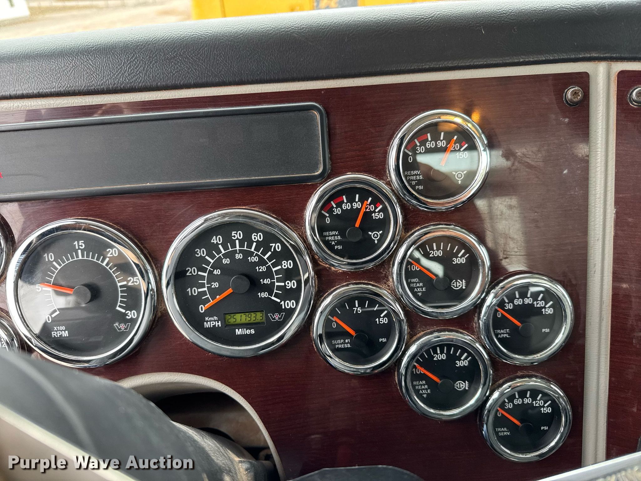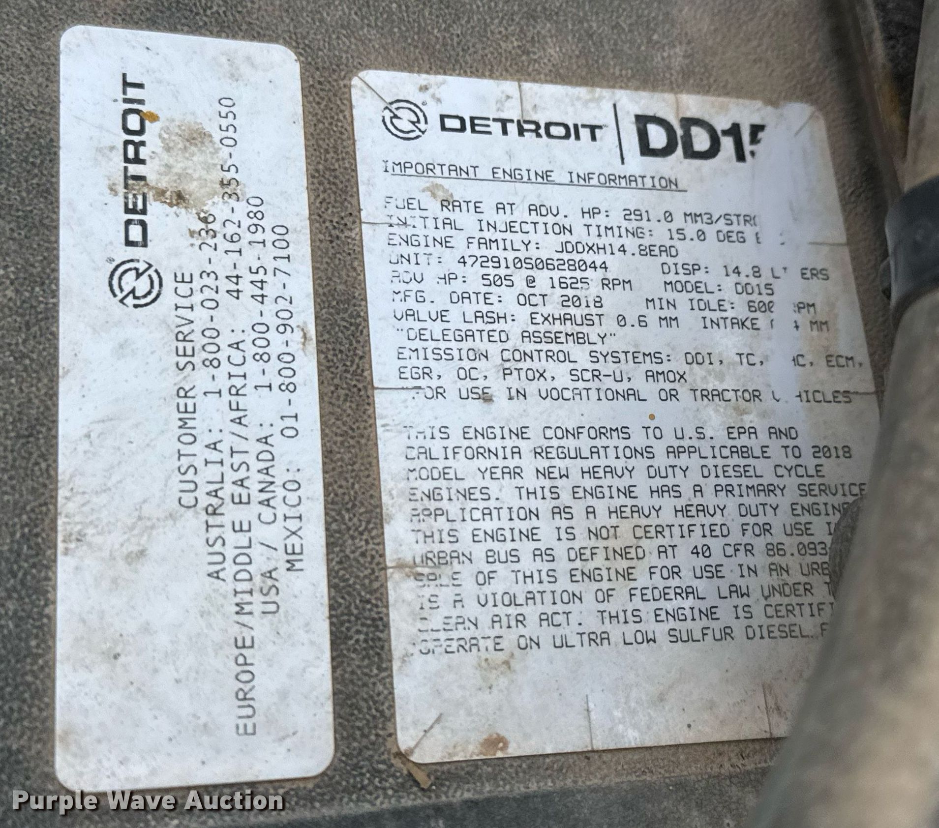 2019 Western Star 4900SF semi truck. Miles: 251,793 on odometer, VIN: 5KJJAEDR4KPKV3133. Engine Detroit Diesel DD15, Displacement: 14.8L, Cylinders: 6, Fuel type: Diesel, Engine brake. Transmission Eaton Fuller, Manual, Speed: 10. Chassis Axles: Tandem, Differential lock: Full, Suspension: Air Dump valves, Brakes: Air, GVWR: 53,300 lbs FAWR: 13,300 lbs, IAWR: 20,000 lbs, RAWR: 20,000 lbs. Interior AC, Heat, Heated mirrors, Power windows, Power locks, Cruise control, Air ride cab. Features Deck plate: Aluminum, Fifth wheel type: Fixed, Fuel tank: Dual. Tires Size: 11R24.5. Notes Windshield chipped or cracked. Oklahoma title. Title distribution may be delayed up to 30 days from verification of funds. Vickers Sand and Gravel. 1102 West Cherokee Street. Lindsay, OK 73052