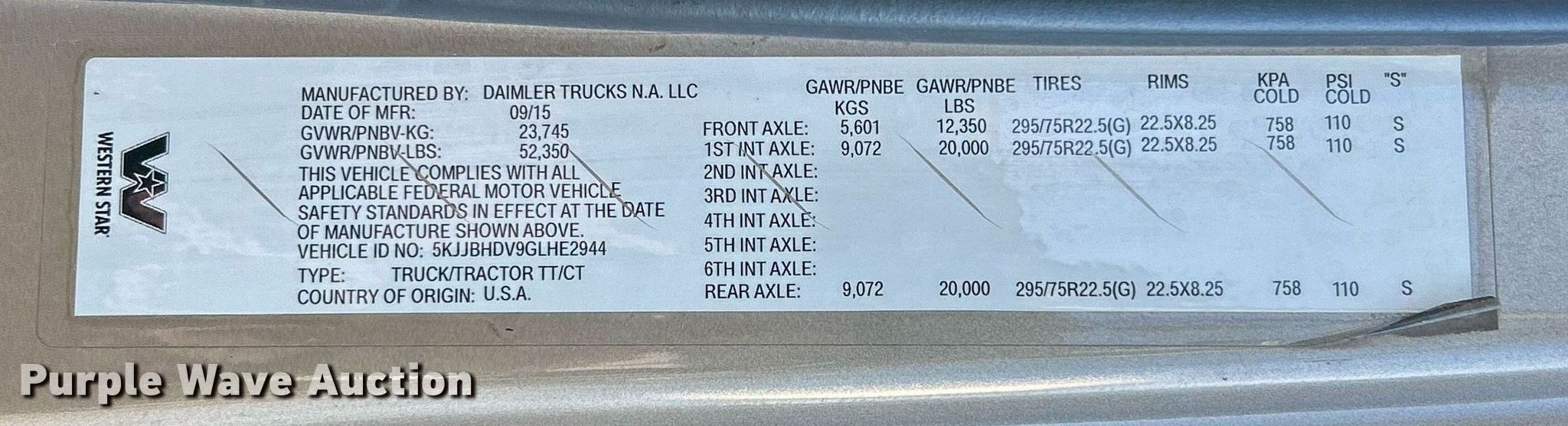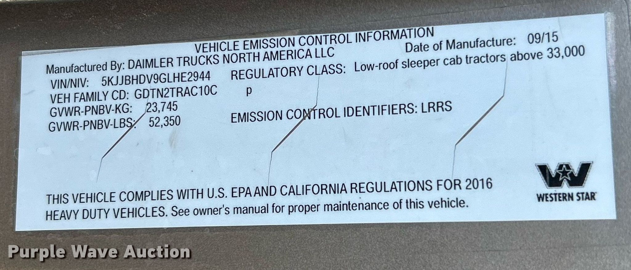 Purple Wave is selling a used Truck Tractor in Missouri. This item is a 2016 Western Star 5700XE semi truck with the following: Miles: 788,313 on odometer, Hours: 22,055 on meter, VIN: 5KJJBHDV9GLHE2944